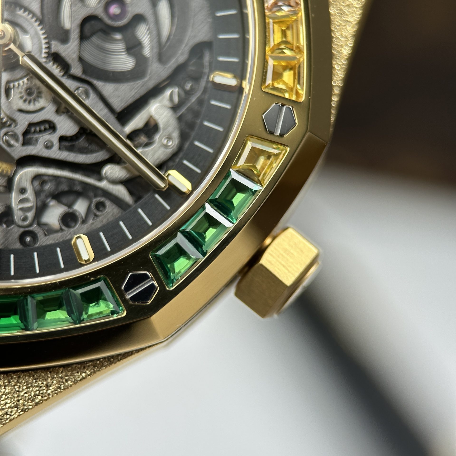 Đồng Hồ Audemars Piguet Replica 11 Royal Oak Openworked Frosted 15412 Mạ Vàng Viền Đính Đá Baguette 41mm