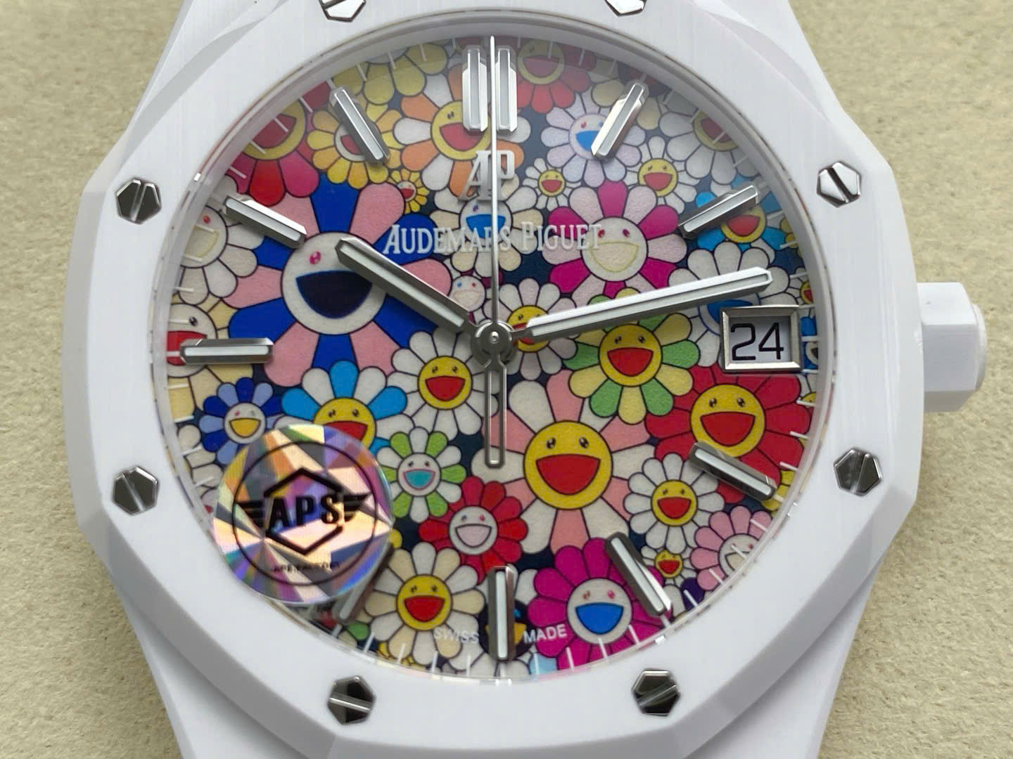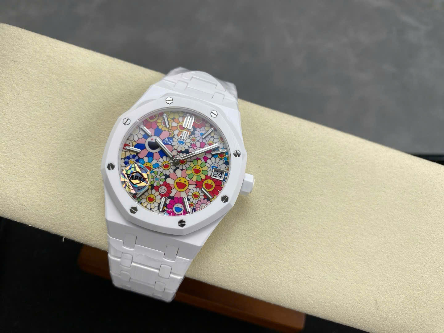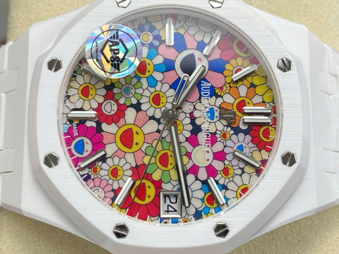 Audemars Piguet 15500 Sunflower Imitation Watches White Ceramic Automatic Movement APS Factory 41mm