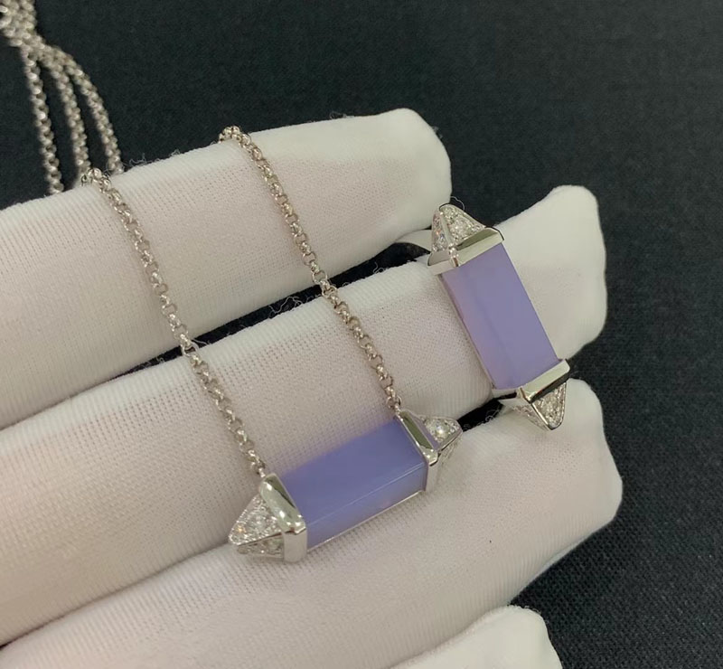 Bộ Vòng Cổ Và Nhẫn Les Berlingots De Cartier Chế Tác Vàng Trắng 18K Đính Kim Cương Tự Nhiên