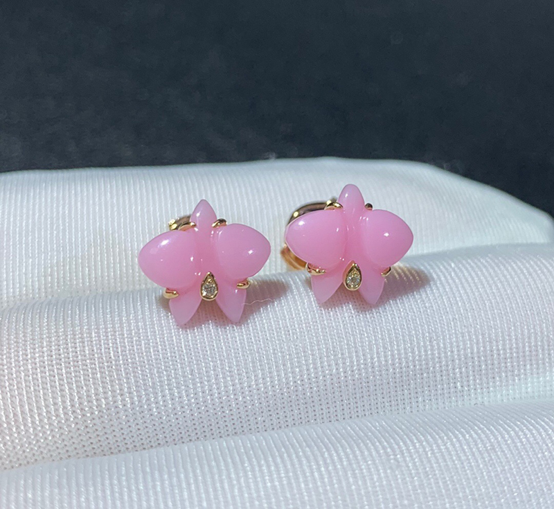 Bông Tai Caresse D’Orchidees Par Cartier Chế Tác Đá Quý Tự Nhiên Vàng Hồng 18K