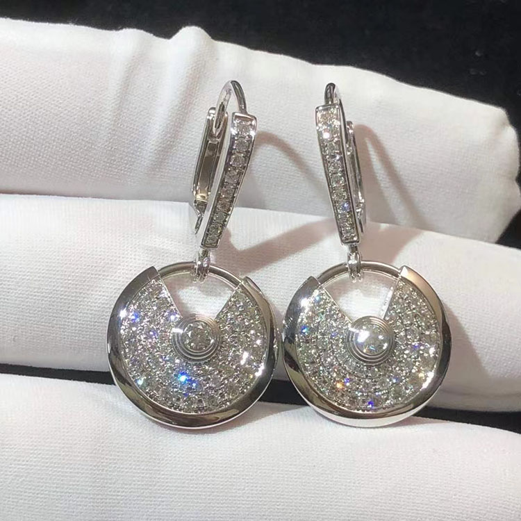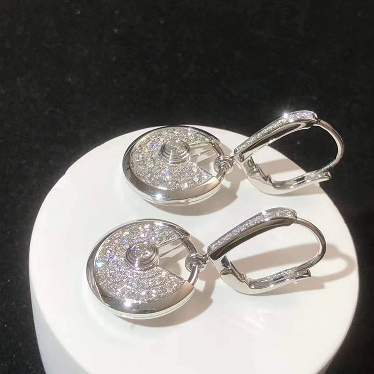 Bông Tai Cartier Amulette Chế Tác Kim Cương Tự Nhiên Vàng Trắng 18K
