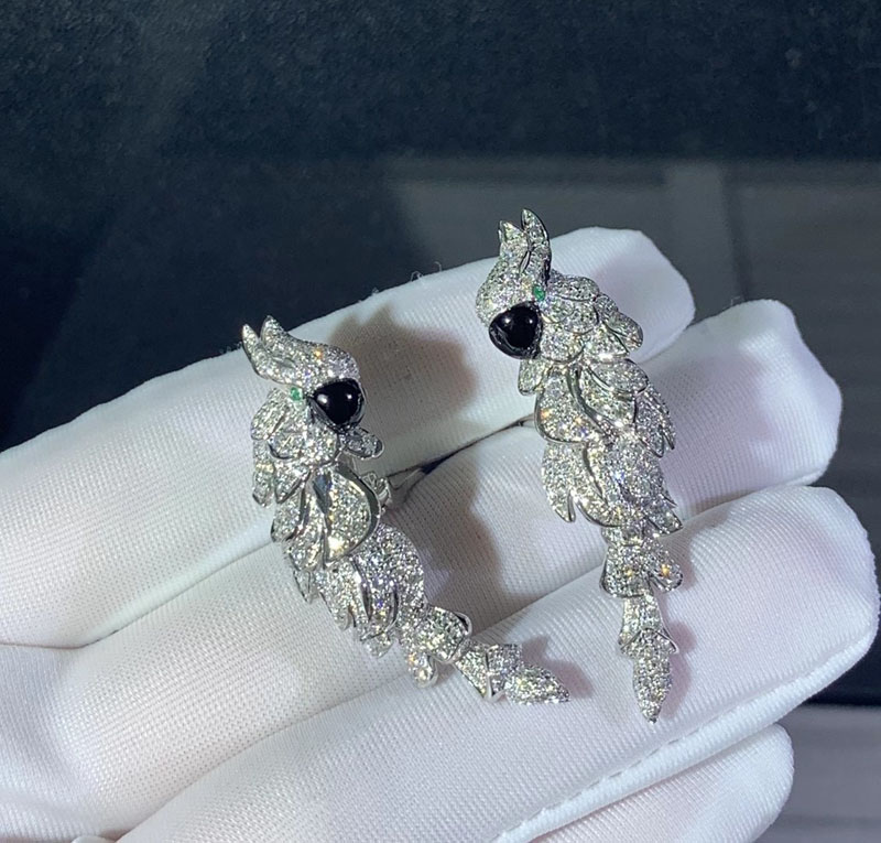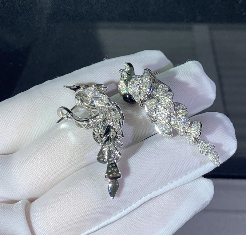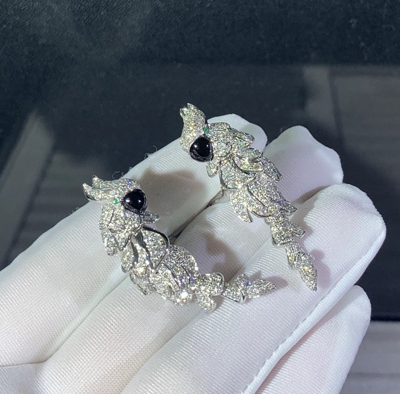 Bông Tai Cartier Les Oiseaux Libérés Chế Tác Vàng Trắng 18K Đính Kim Cương Tự Nhiên