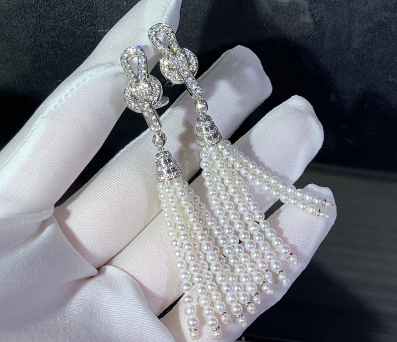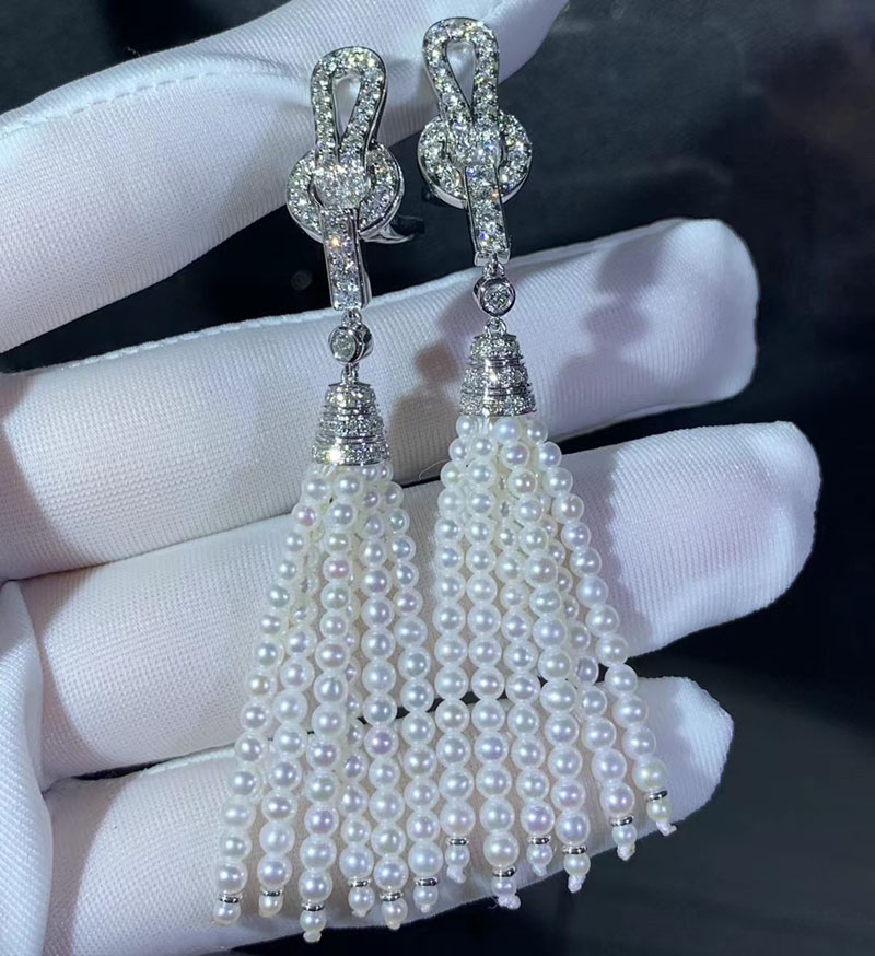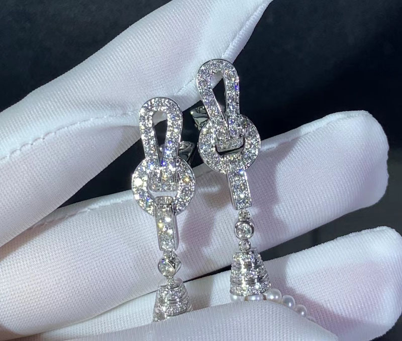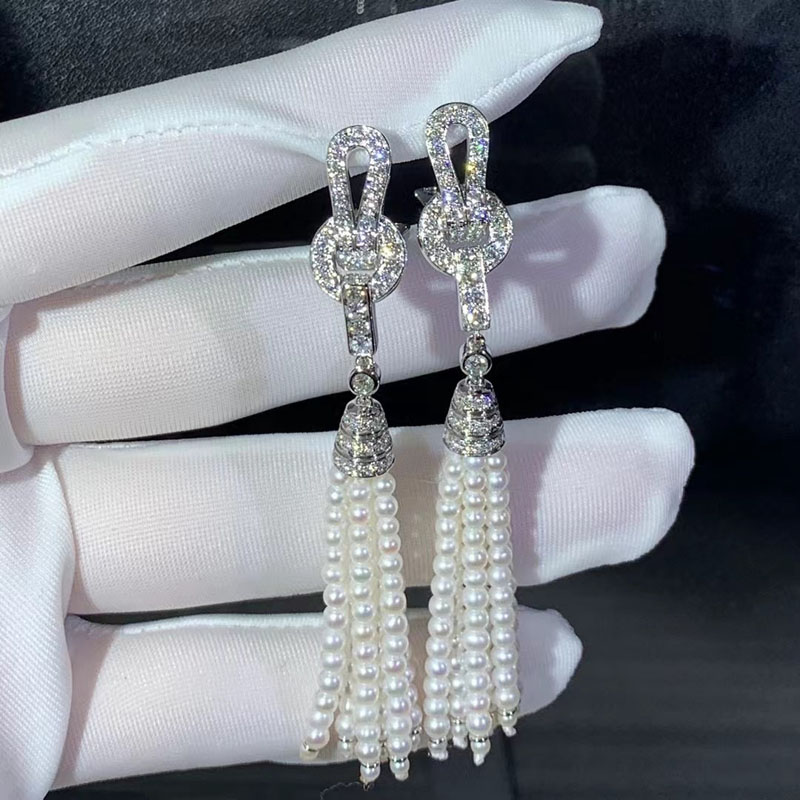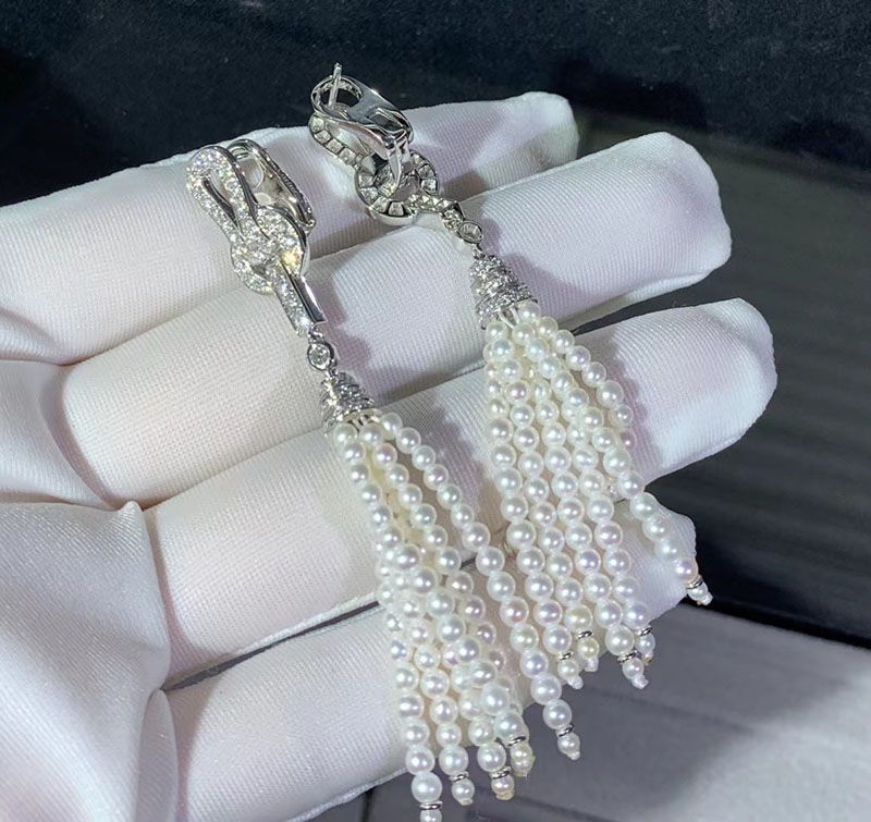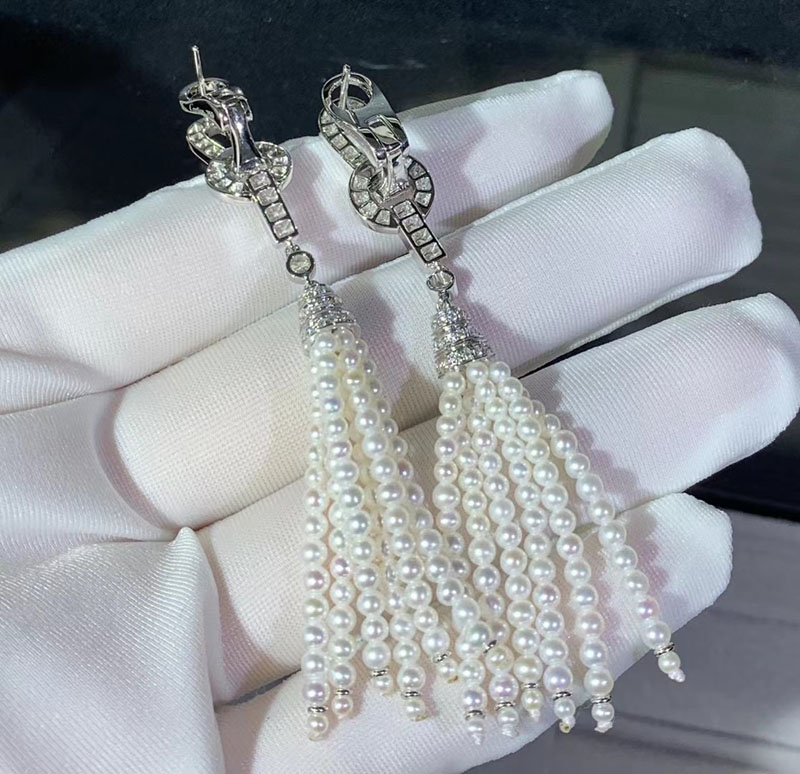 Bông Tai Cartier Nữ Chế Tác Ngọc Trai Kim Cương Tự Nhiên Vàng Trắng 18K