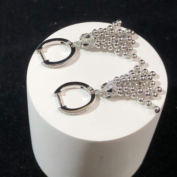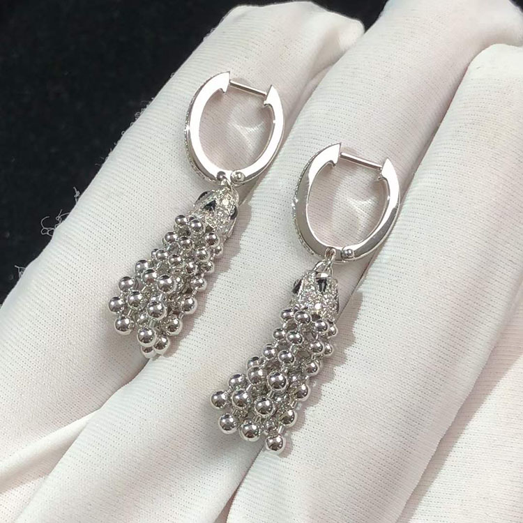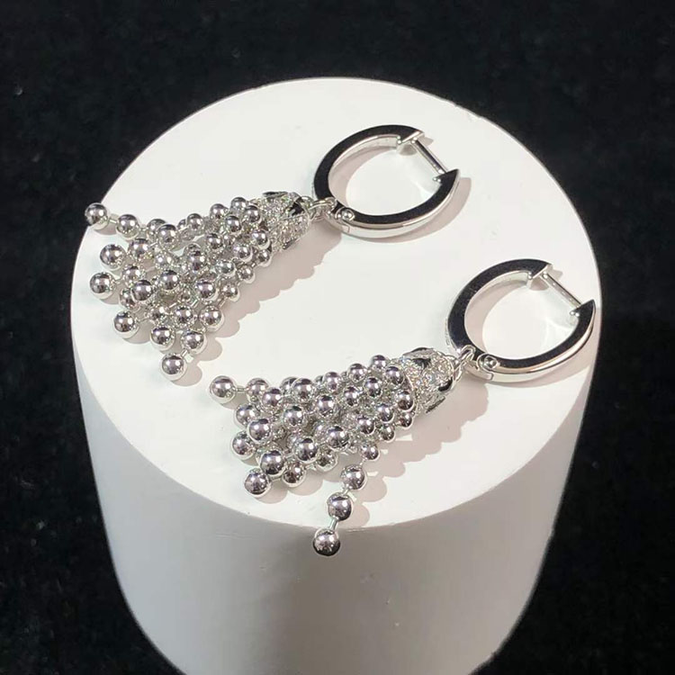 Bông Tai Cartier Nữ Chế Tác Vàng Trắng 18K Đính Kim Cương Tự Nhiên