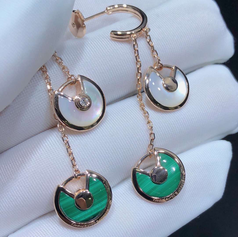 Bông Tai Nữ Cartier Amulette Chế Tác Đá Quý Kim Cương Tự Nhiên Vàng Hồng 18K