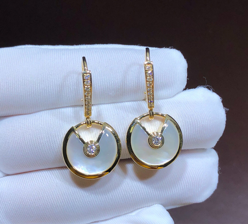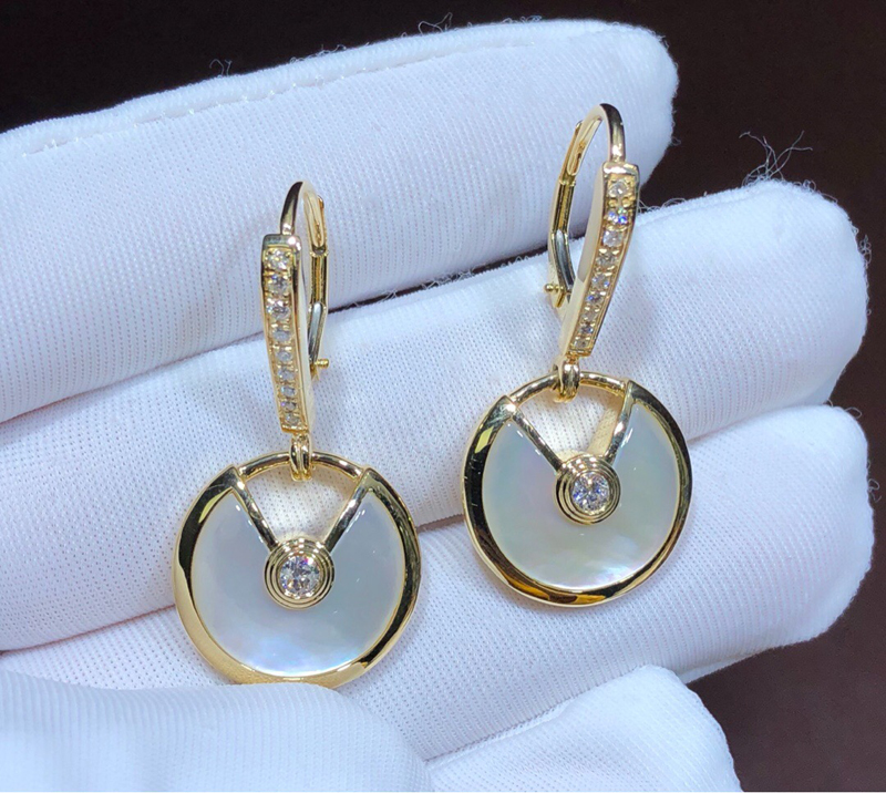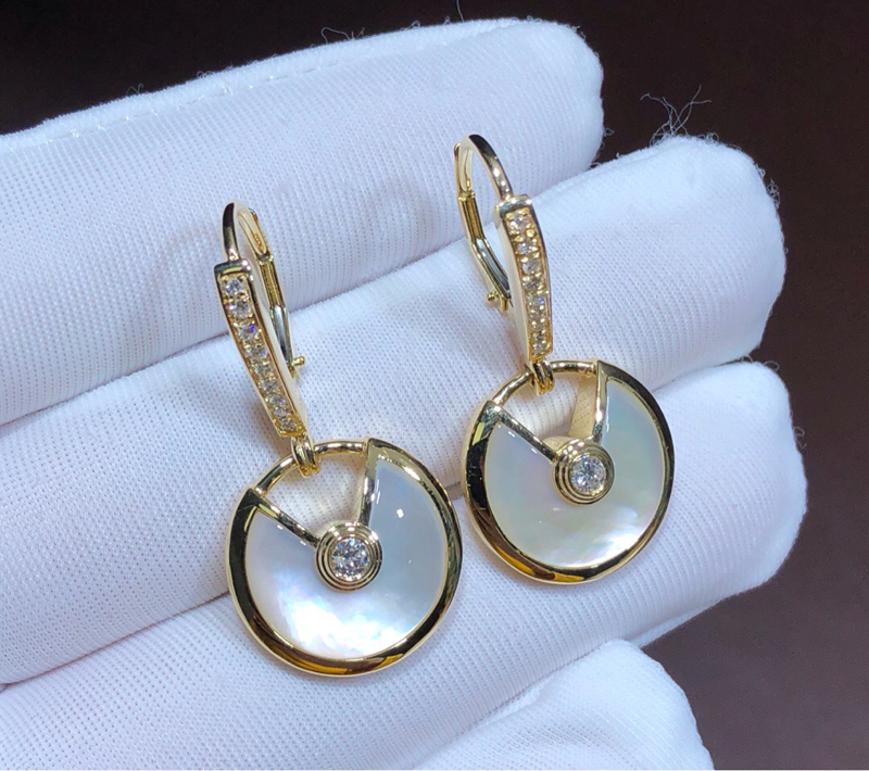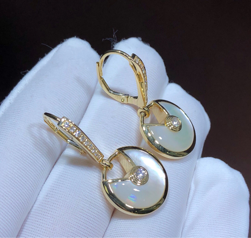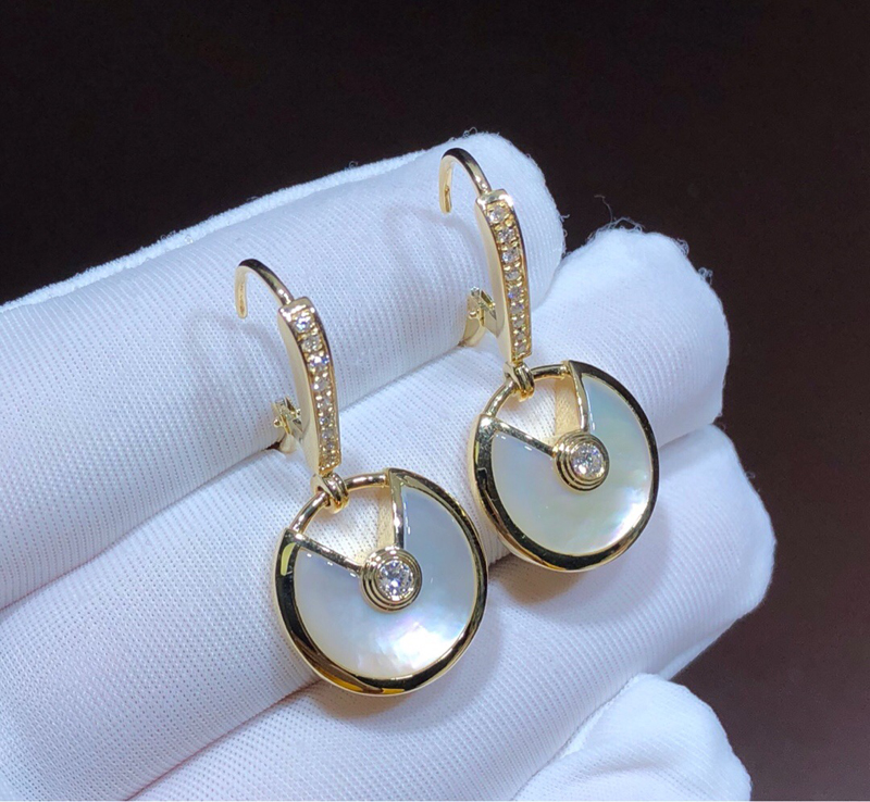 Bông Tai Nữ Cartier Amulette Kim Cương Tự Nhiên Vàng Hồng 18K Chế Tác
