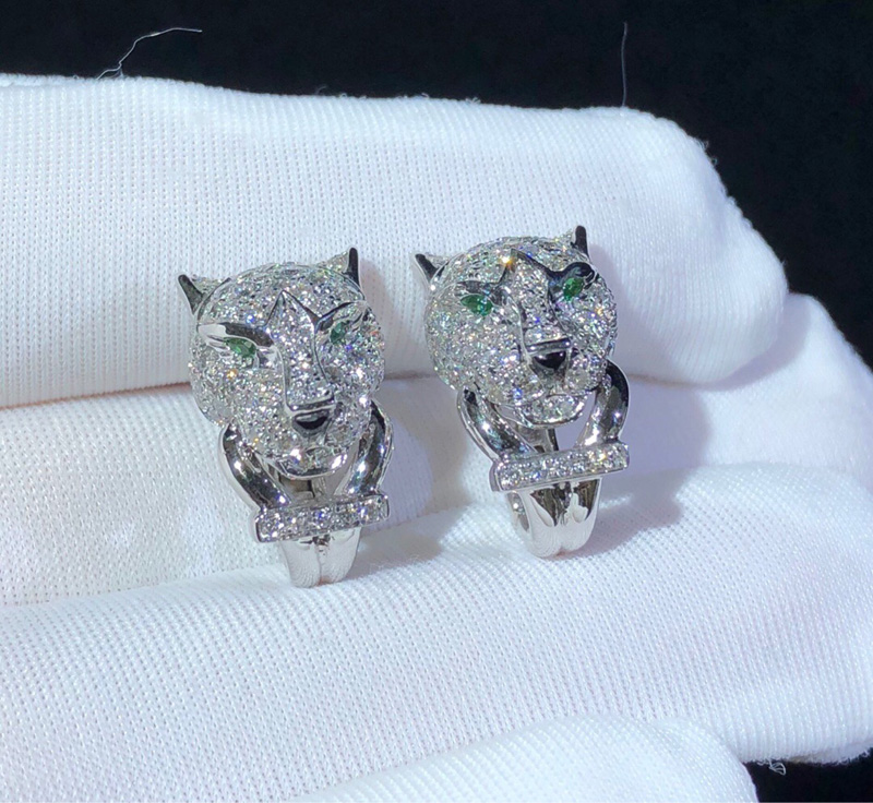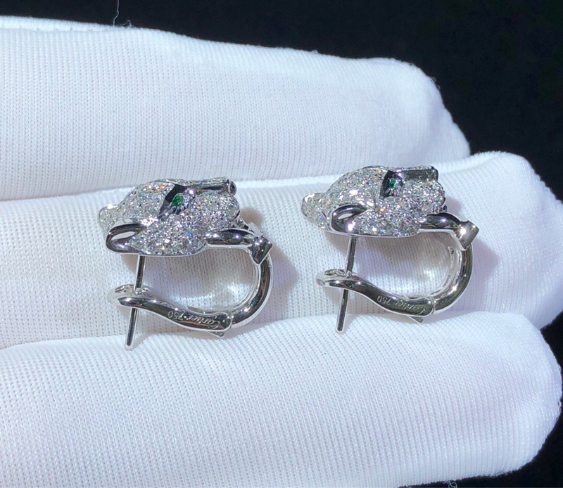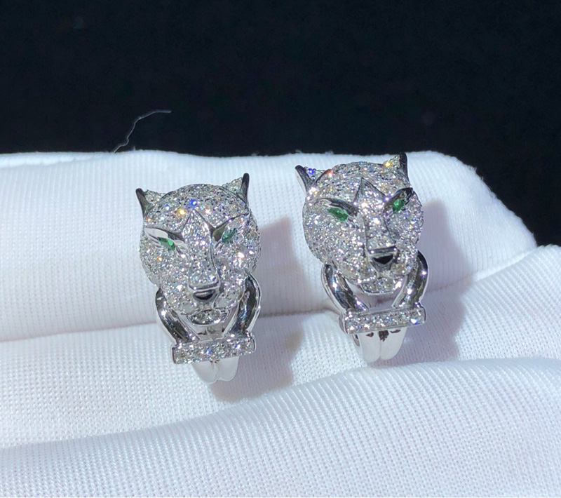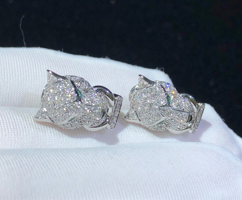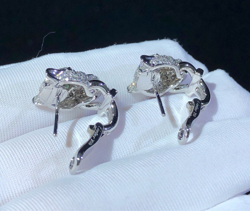 Bông Tai Nữ Panthère De Cartier Kim Cương Tự Nhiên Vàng Trắng 18K Chế Tác
