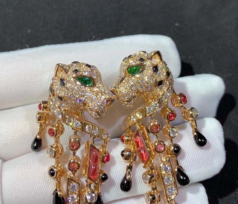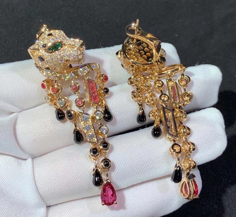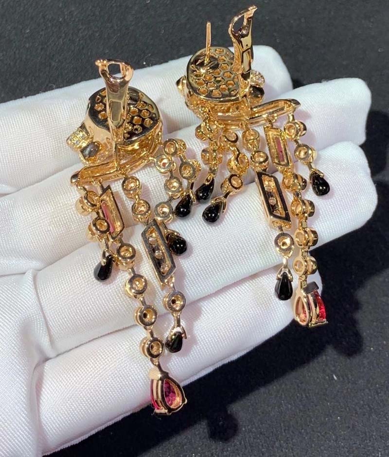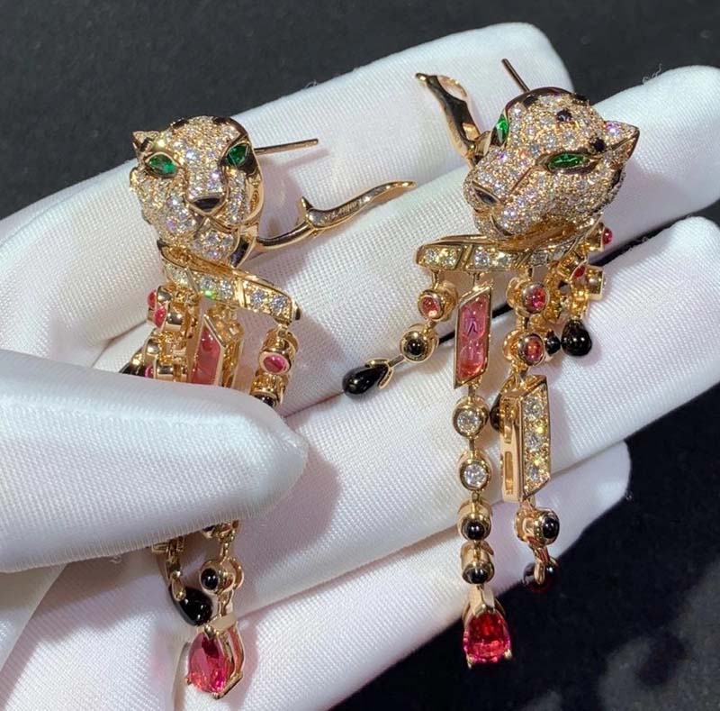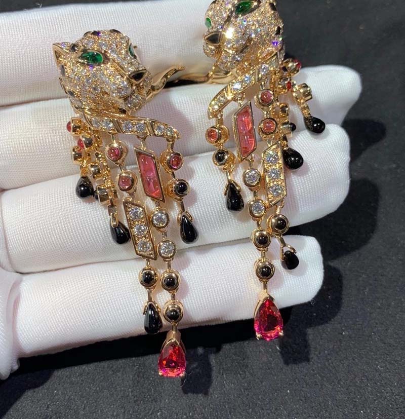 Bông Tai Panthère De Cartier Chế Tác Ruby Đỏ Mã Não Kim Cương Tự Nhiên Vàng Hồng 18K