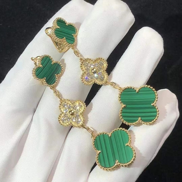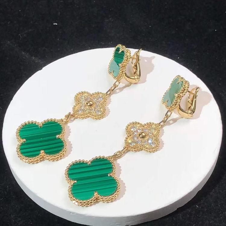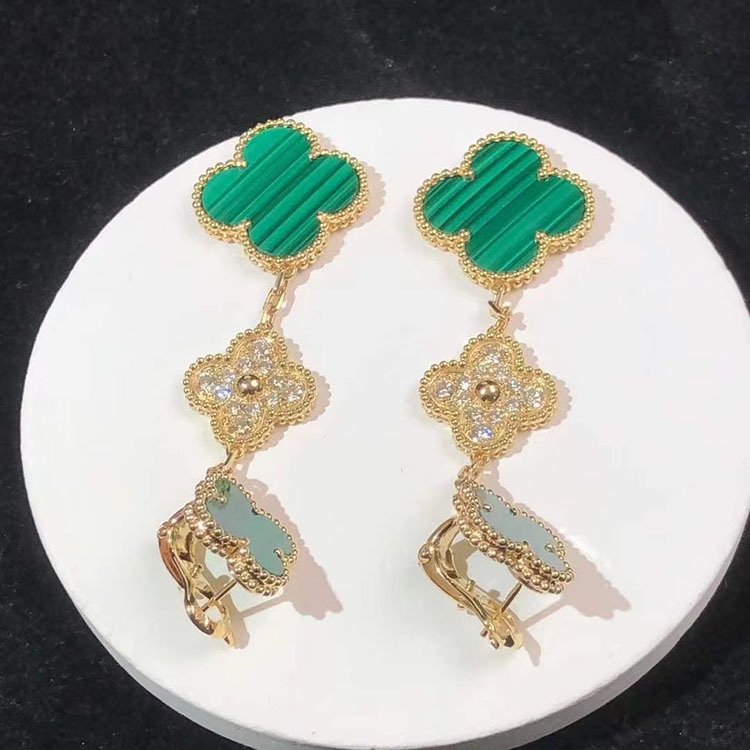 Bông Tai Van Cleef & Arpels Vintage Alhambra Nữ Chế Tác Đá Quý Vàng 18K