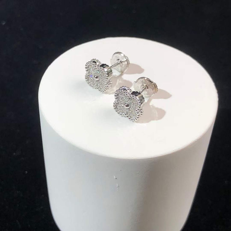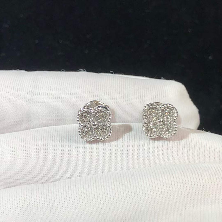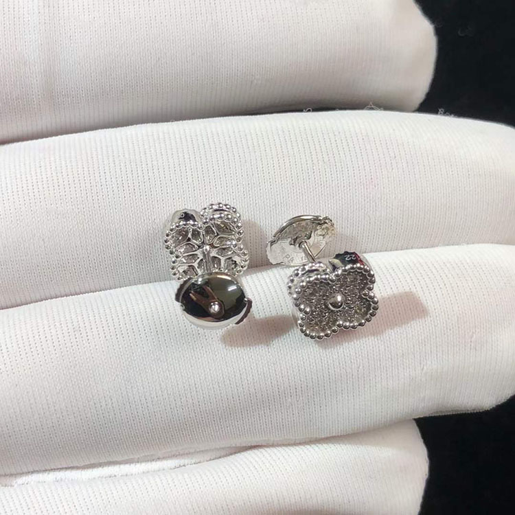 Bông Tai Van Cleef & Arpels Vintage Alhambra Nữ Chế Tác Kim Cương Vàng Trắng 18K