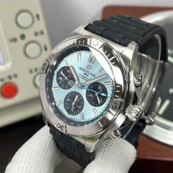 Breitling Luxury Replica Watches Super Chronomat B01 Ice Blue Dial Rubber Strap 44mm