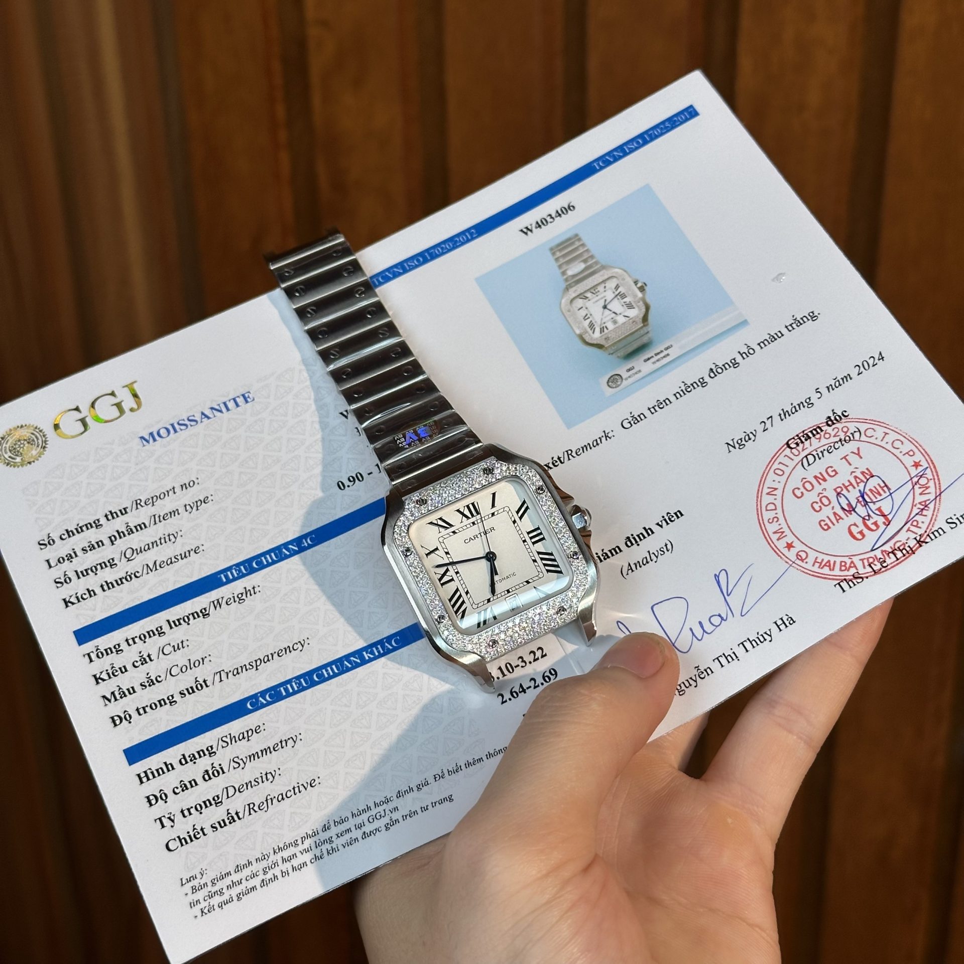 Cartier Replica Watch Santos Custom Moissanite Diamonds Hong Kong 39.8mm