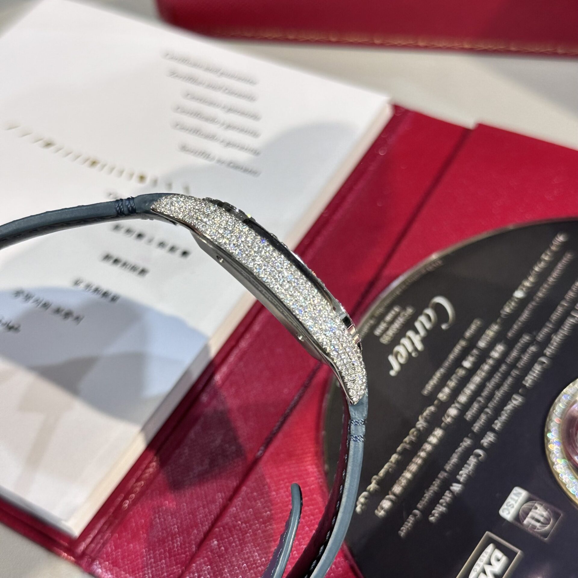 Cartier Santos Replica Watch Blue Dial Custom Moissanite Diamonds 39.8mm