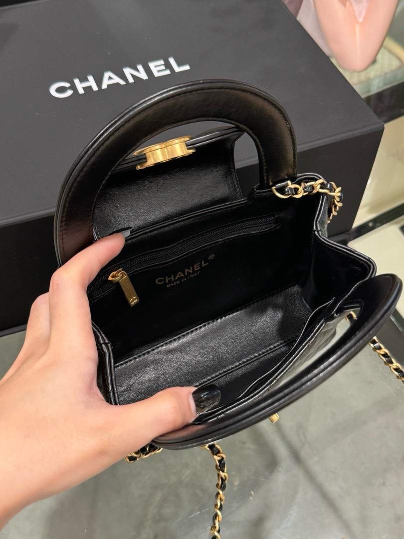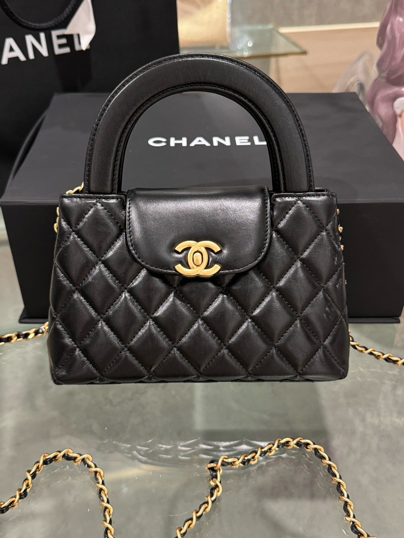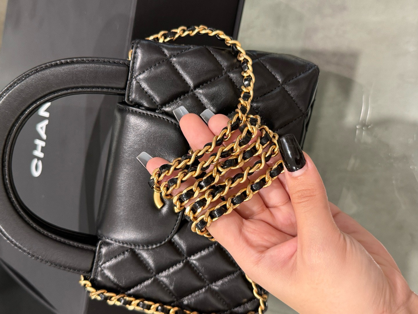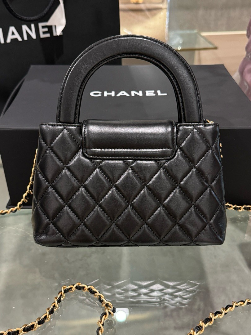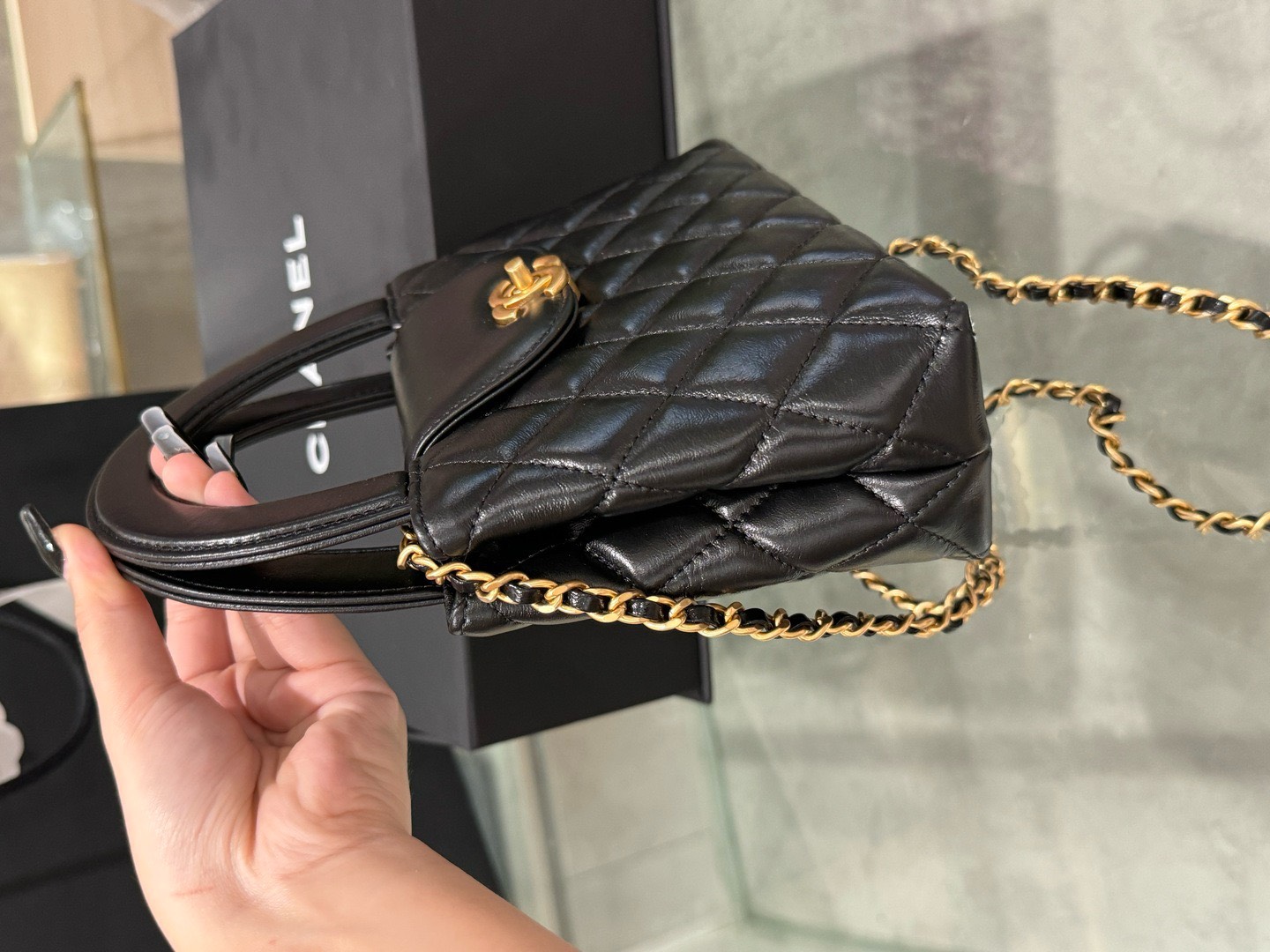 Chanel 23K Kelly Women’s Handbag, Black Glossy Leather, Super Quality 19x13x7cm