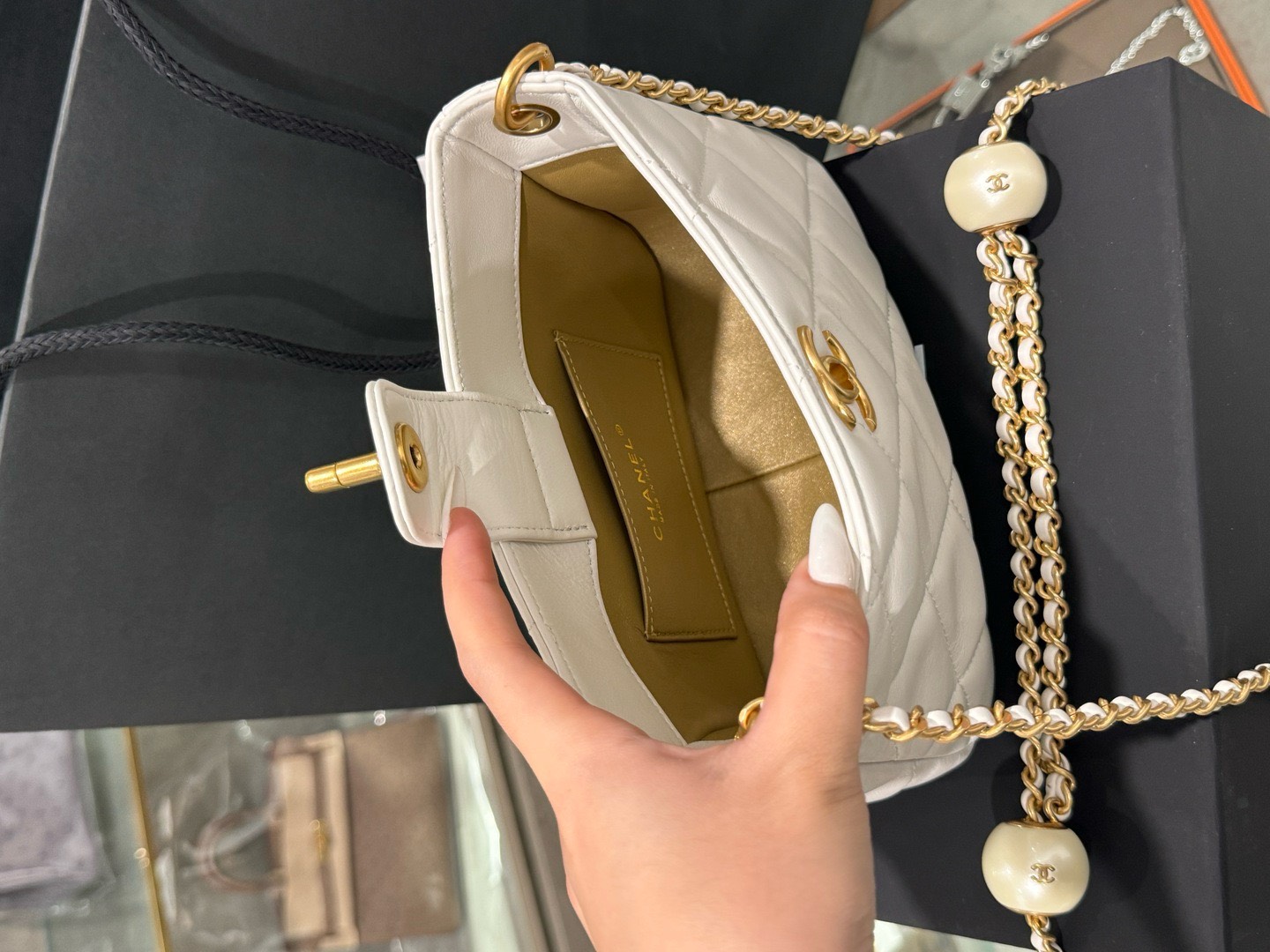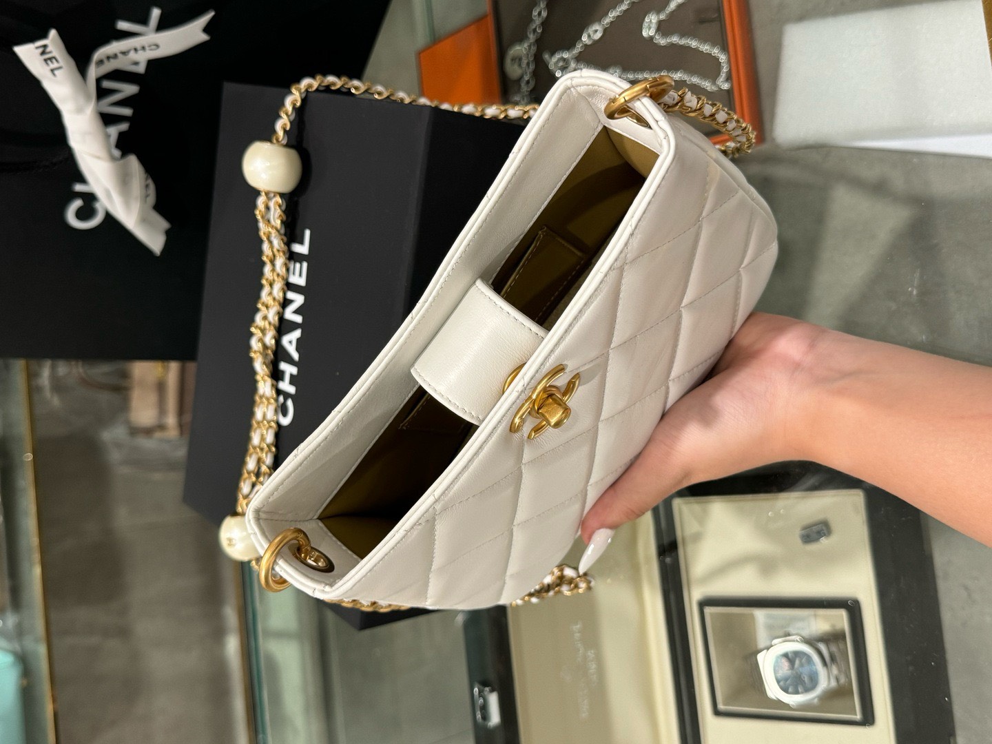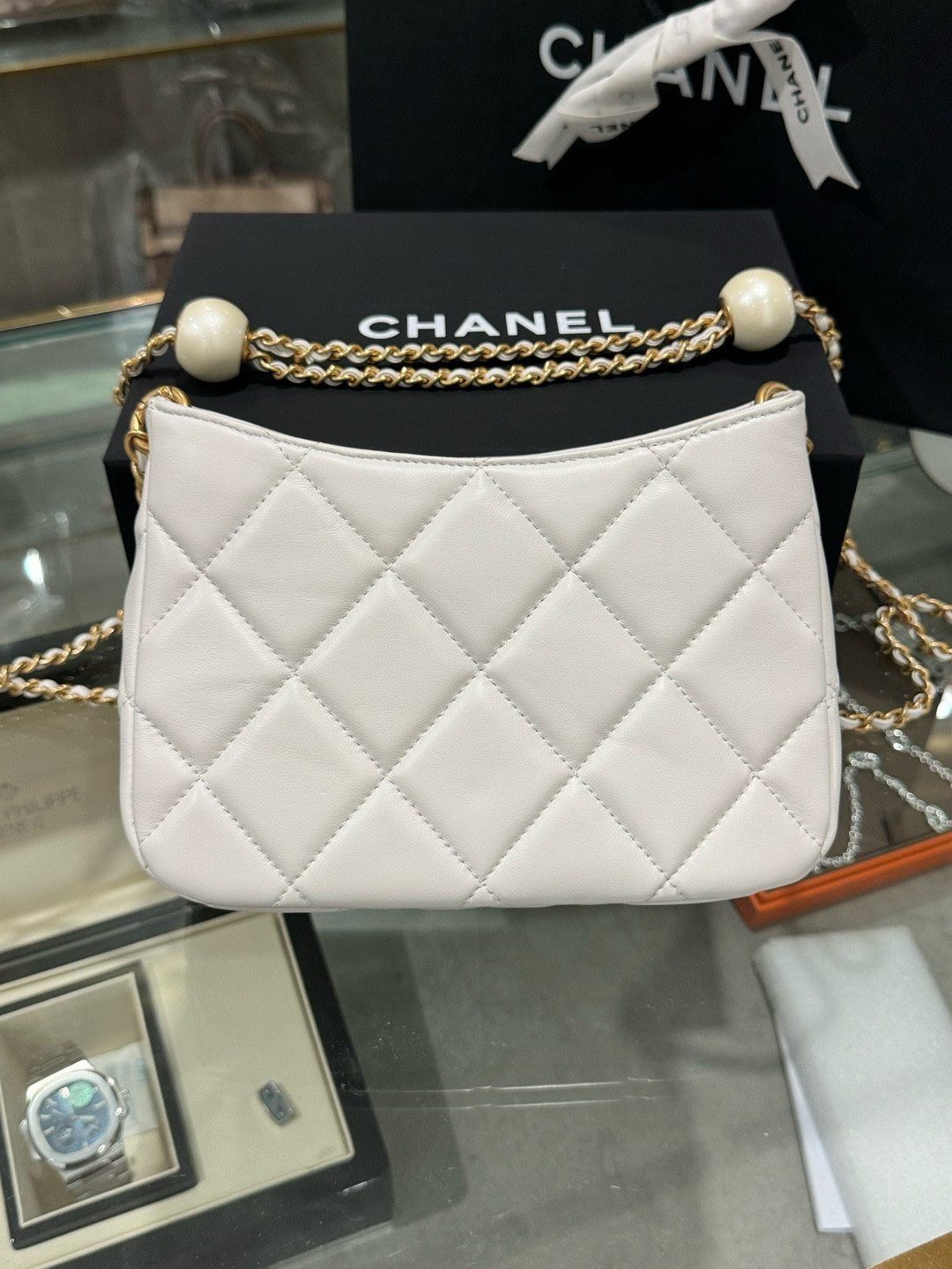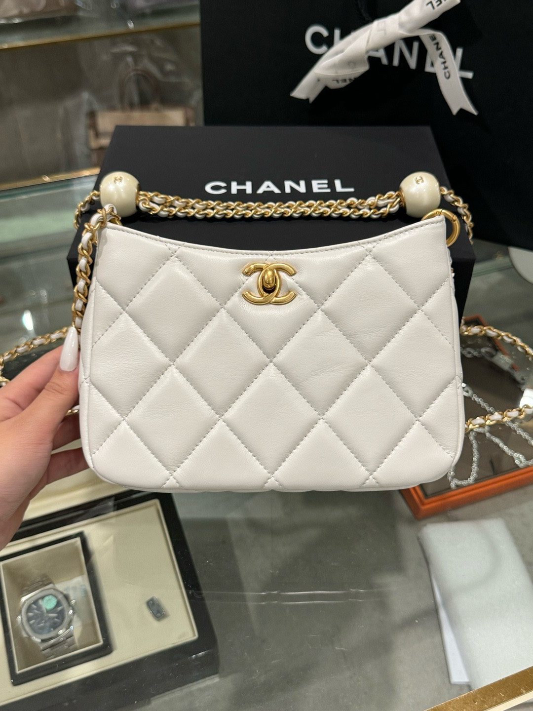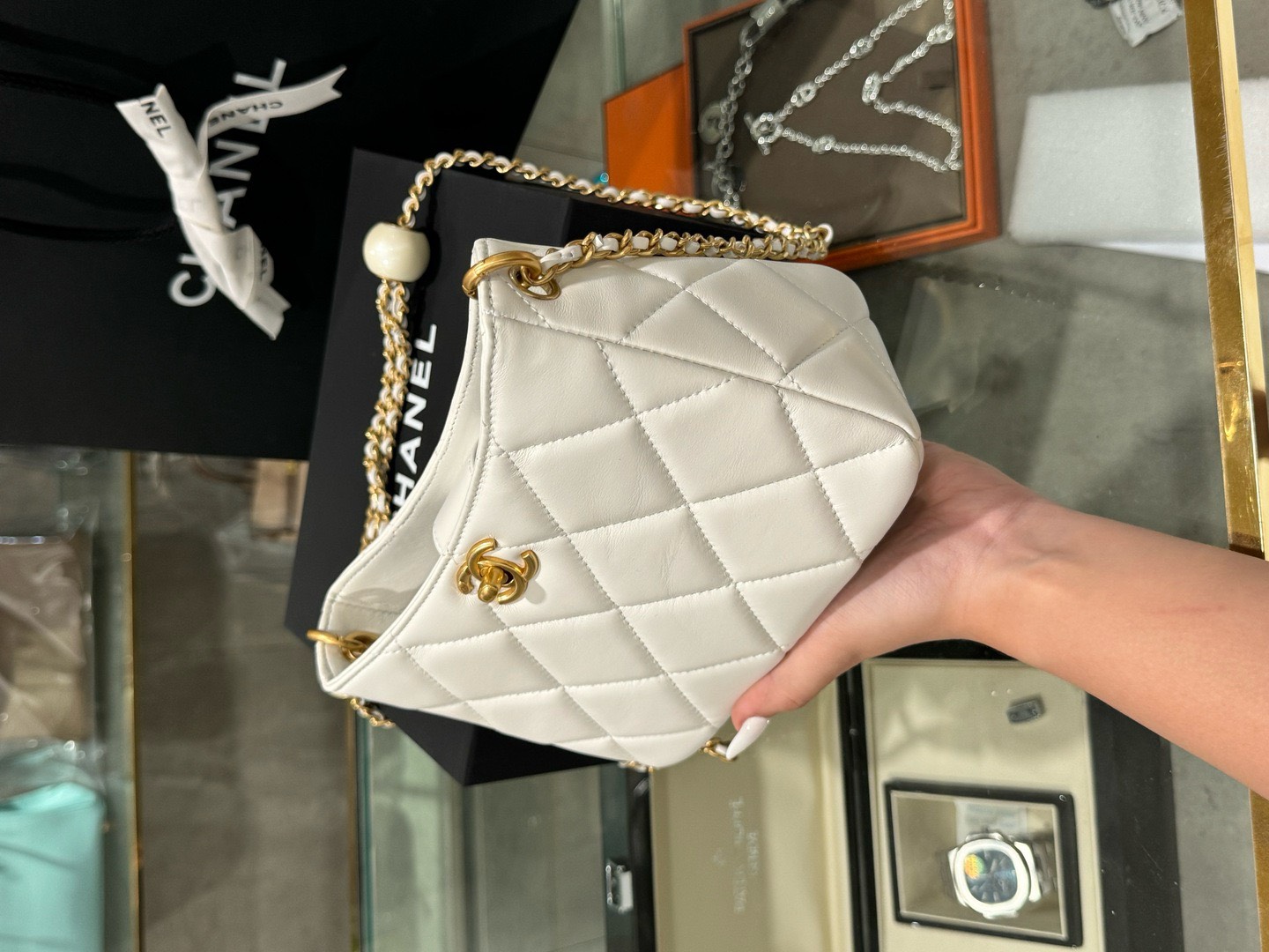 Chanel 24S Hobo Handbag for Women White Chain Strap Like Auth