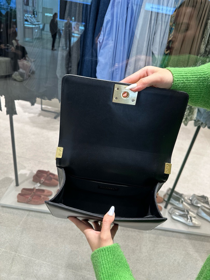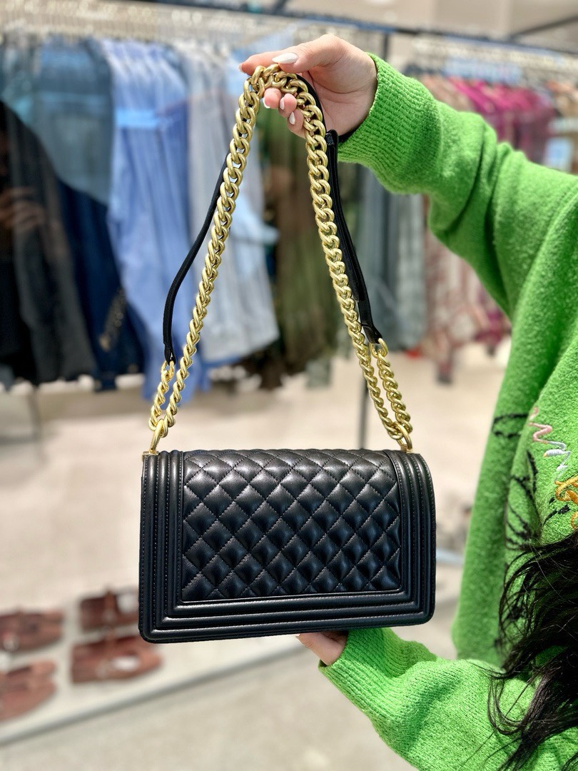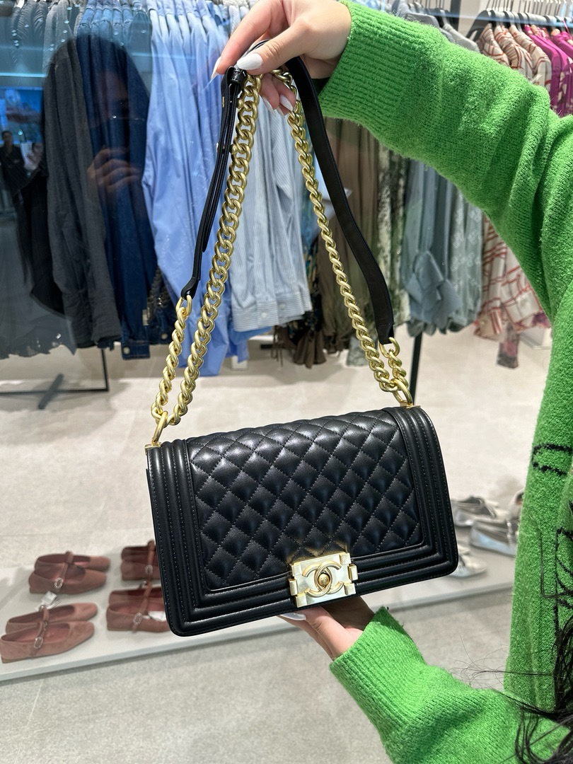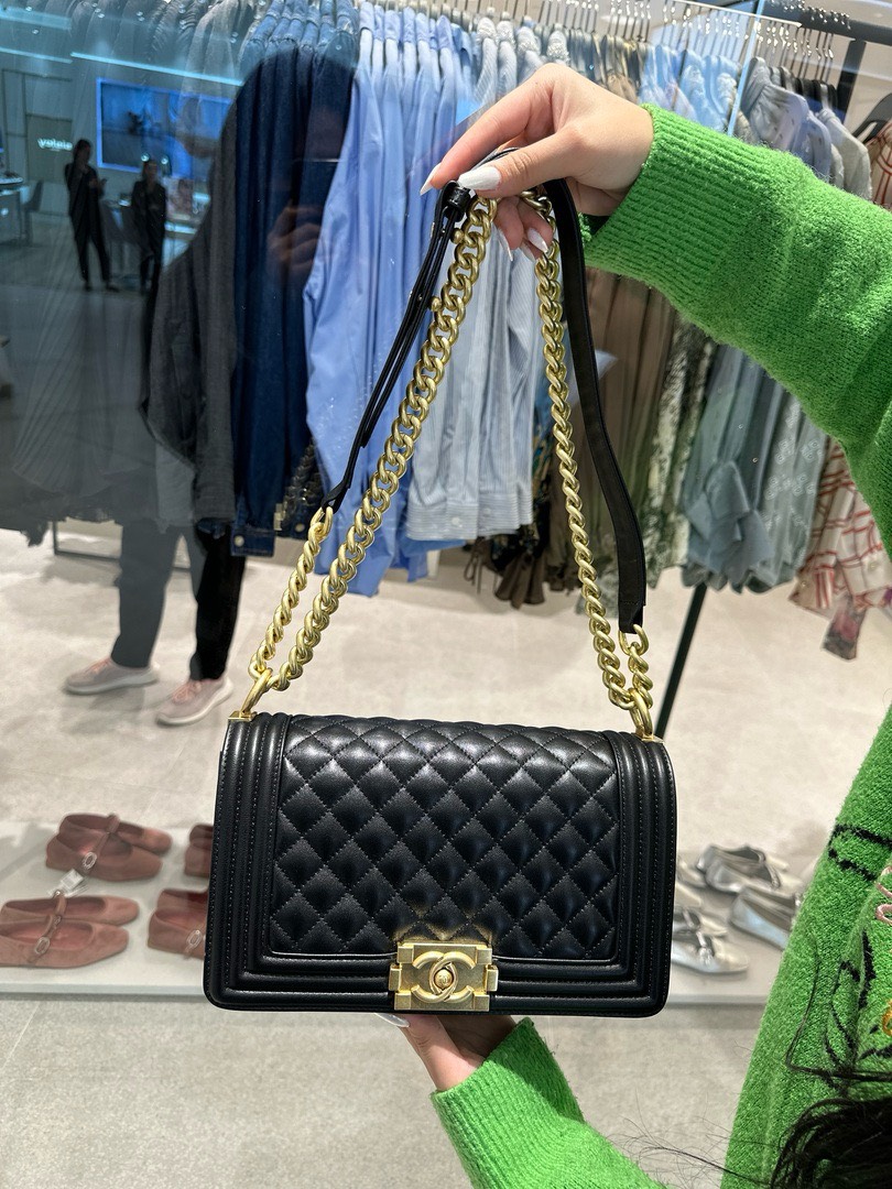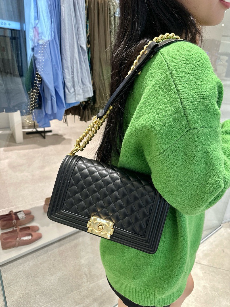 Chanel Boy Medium Super Quality Black Handbag with Gold Lock