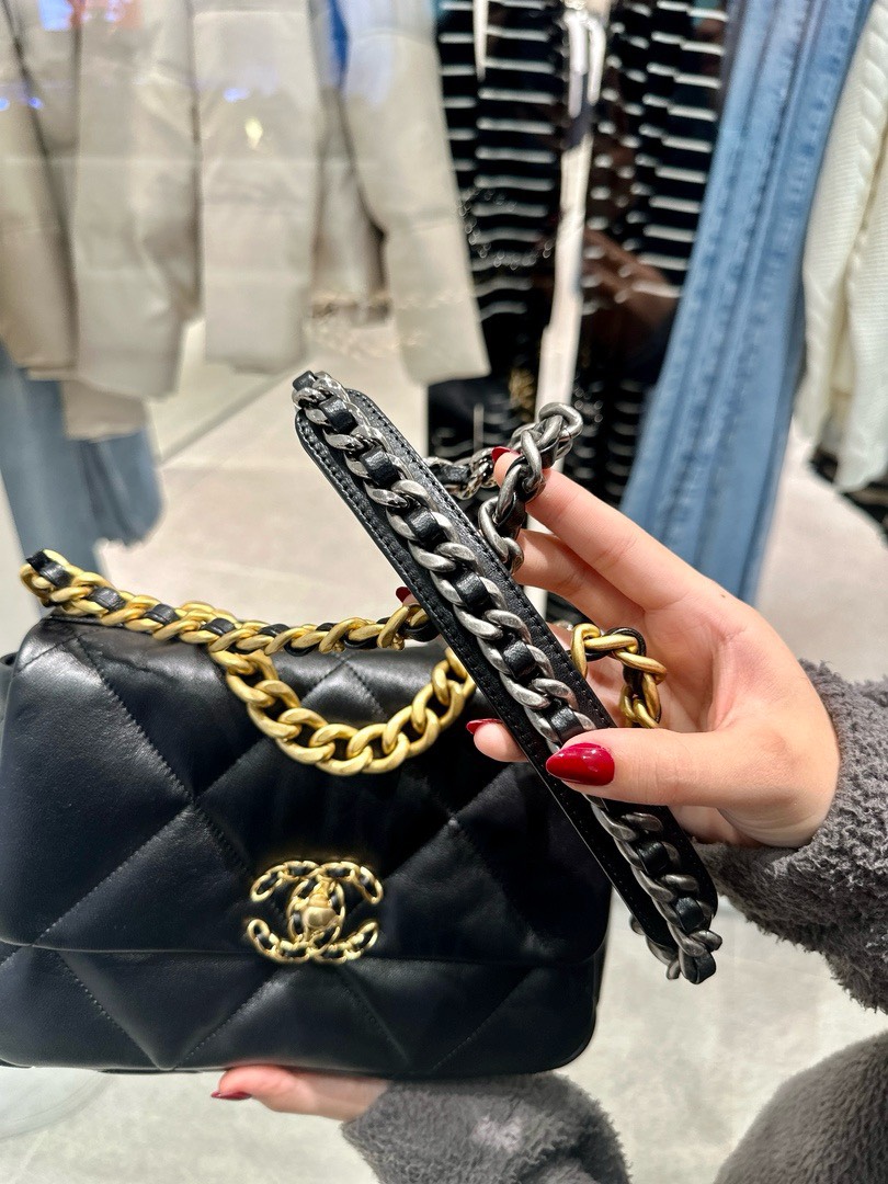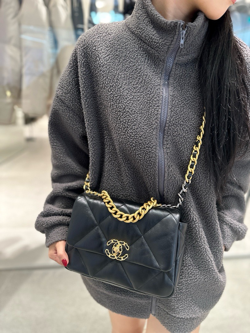 Chanel C19 Like Auth Women’s Bag Black Gold Lock