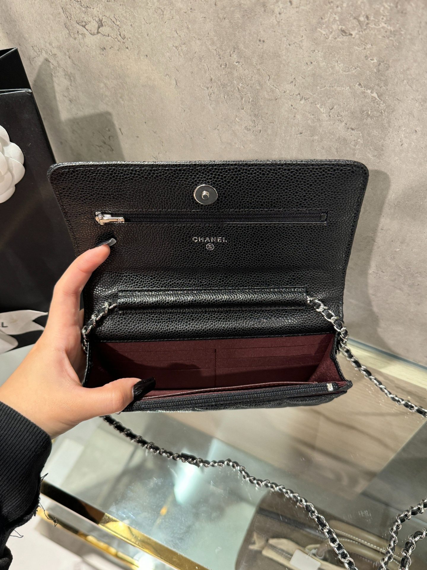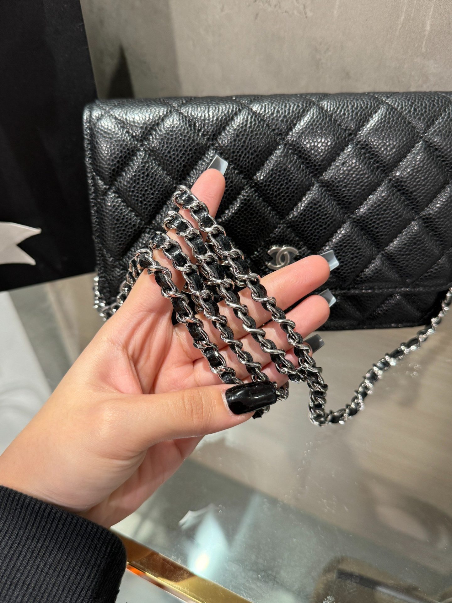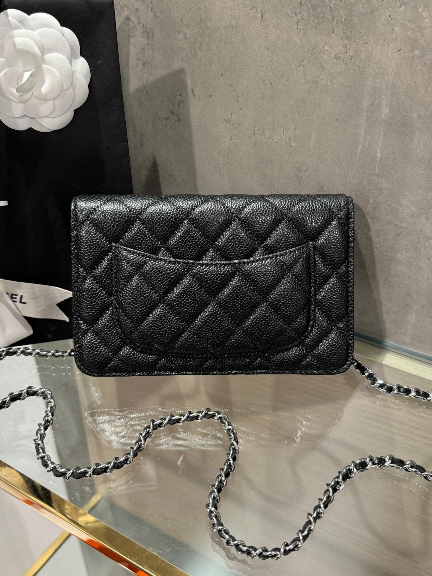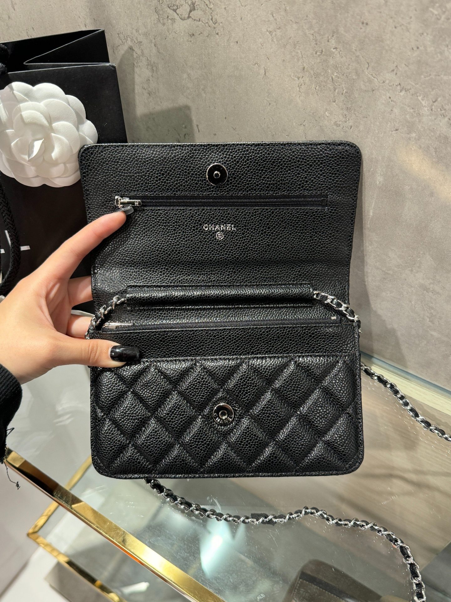 Chanel Caviar Tiny CC Wallet on Chain WOC Silver Lock Crossbody Bag