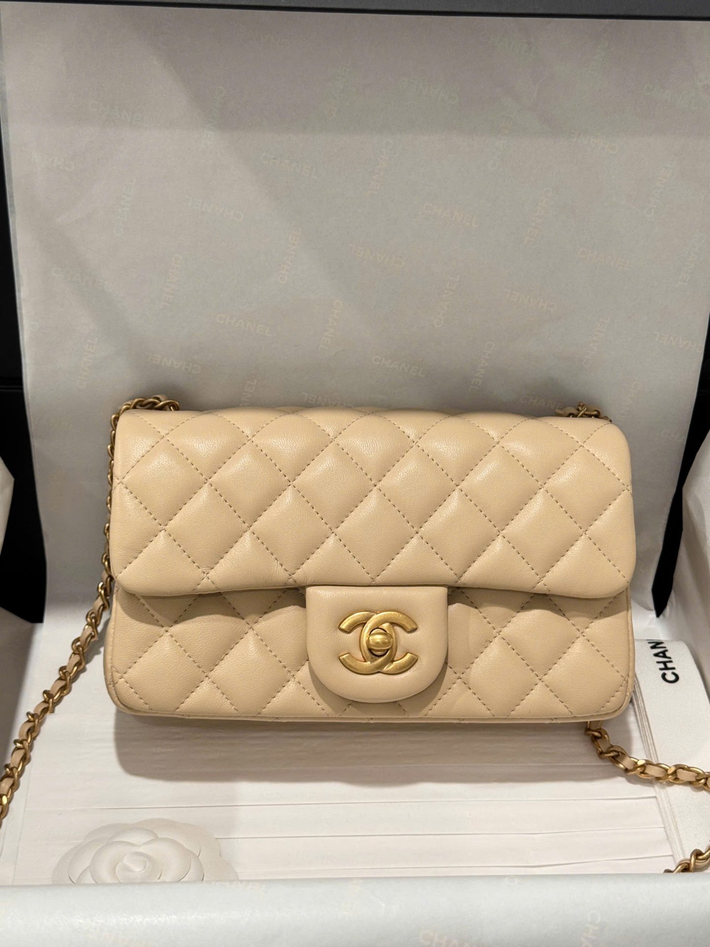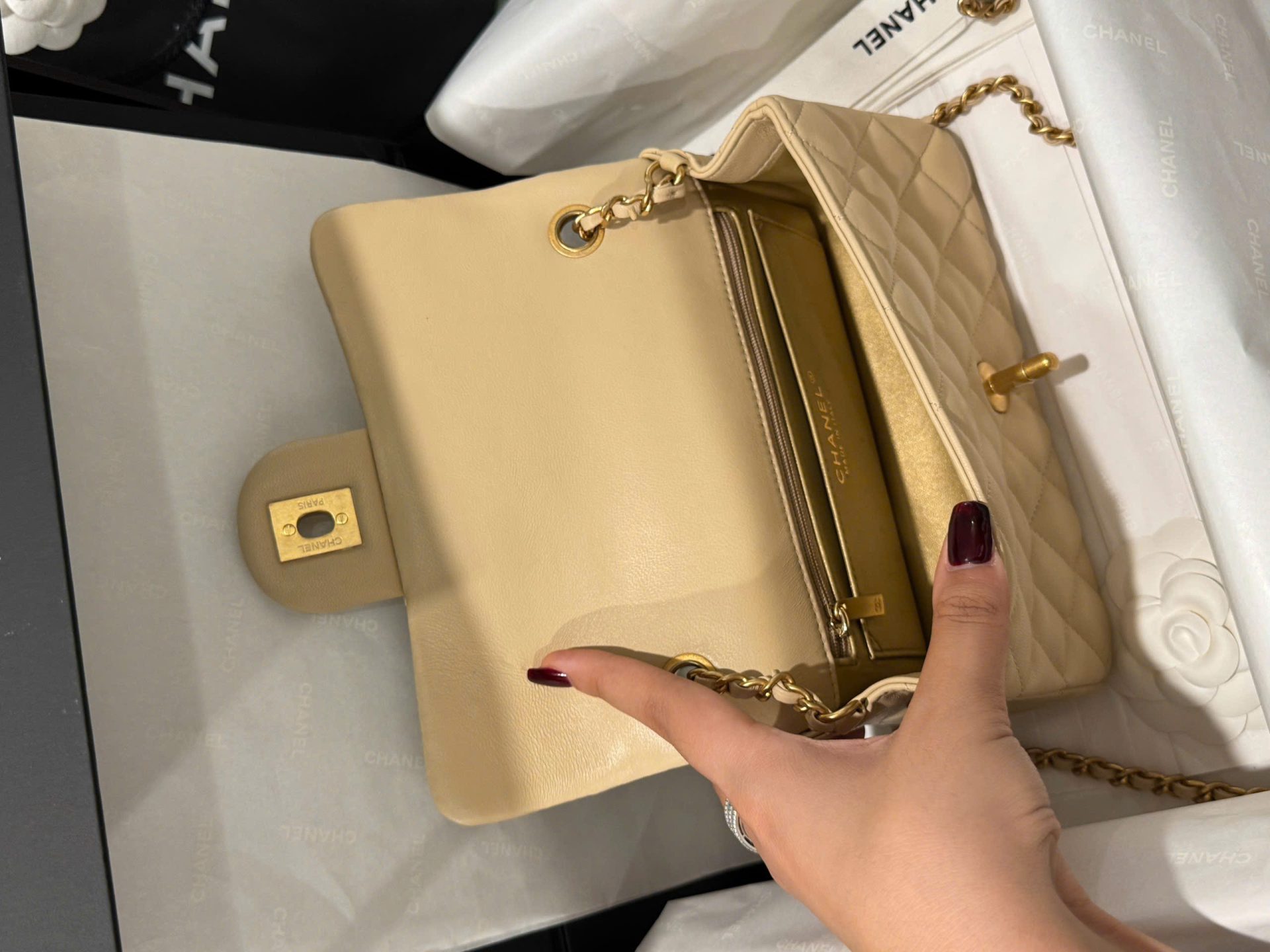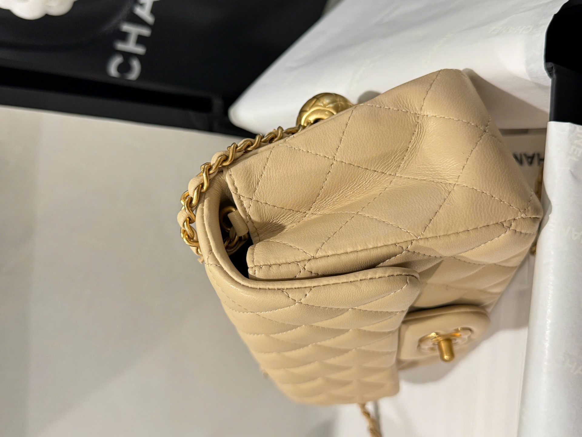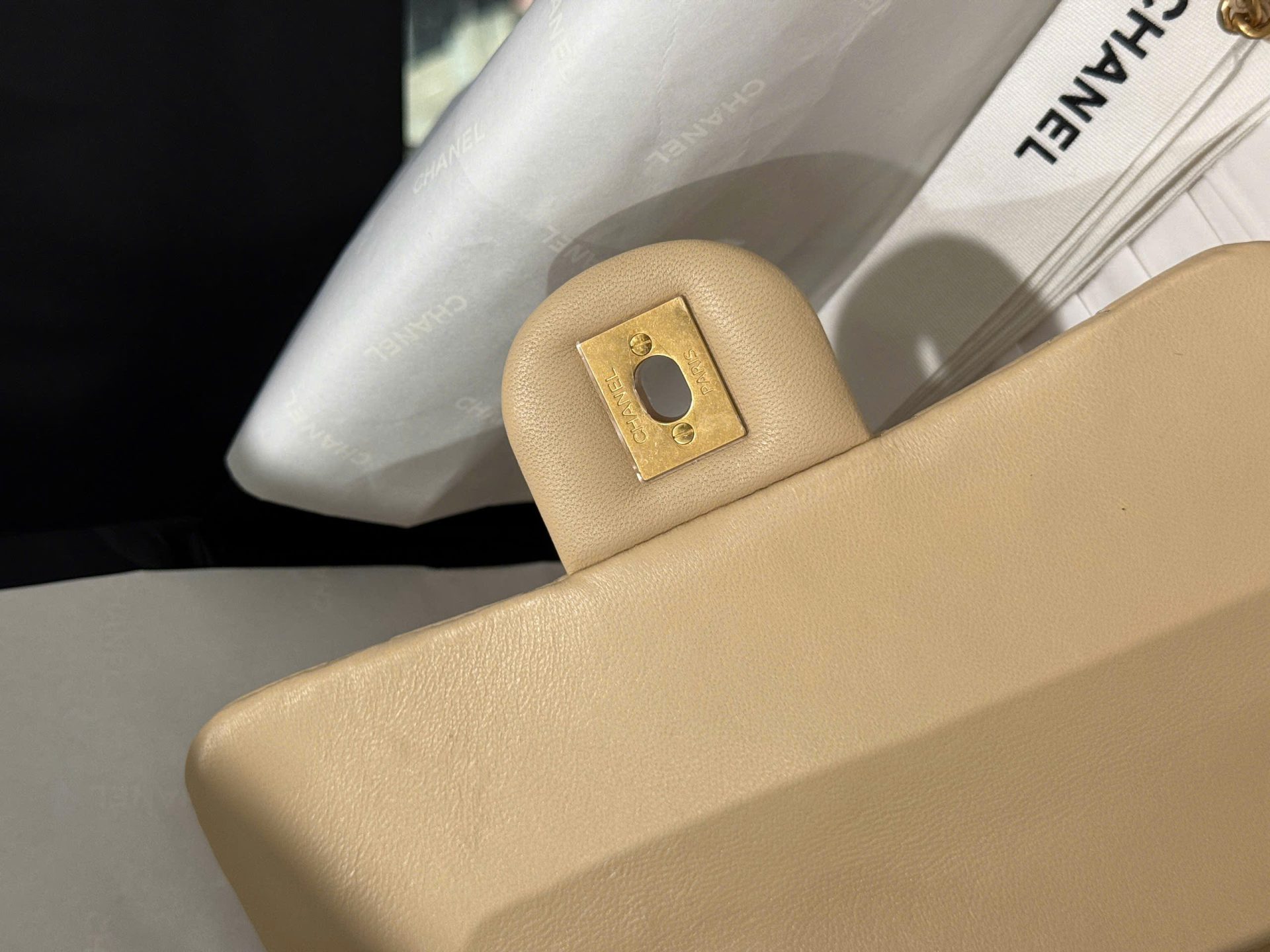 Chanel Classic Bell Handbag Like Auth Beige Gold Lock