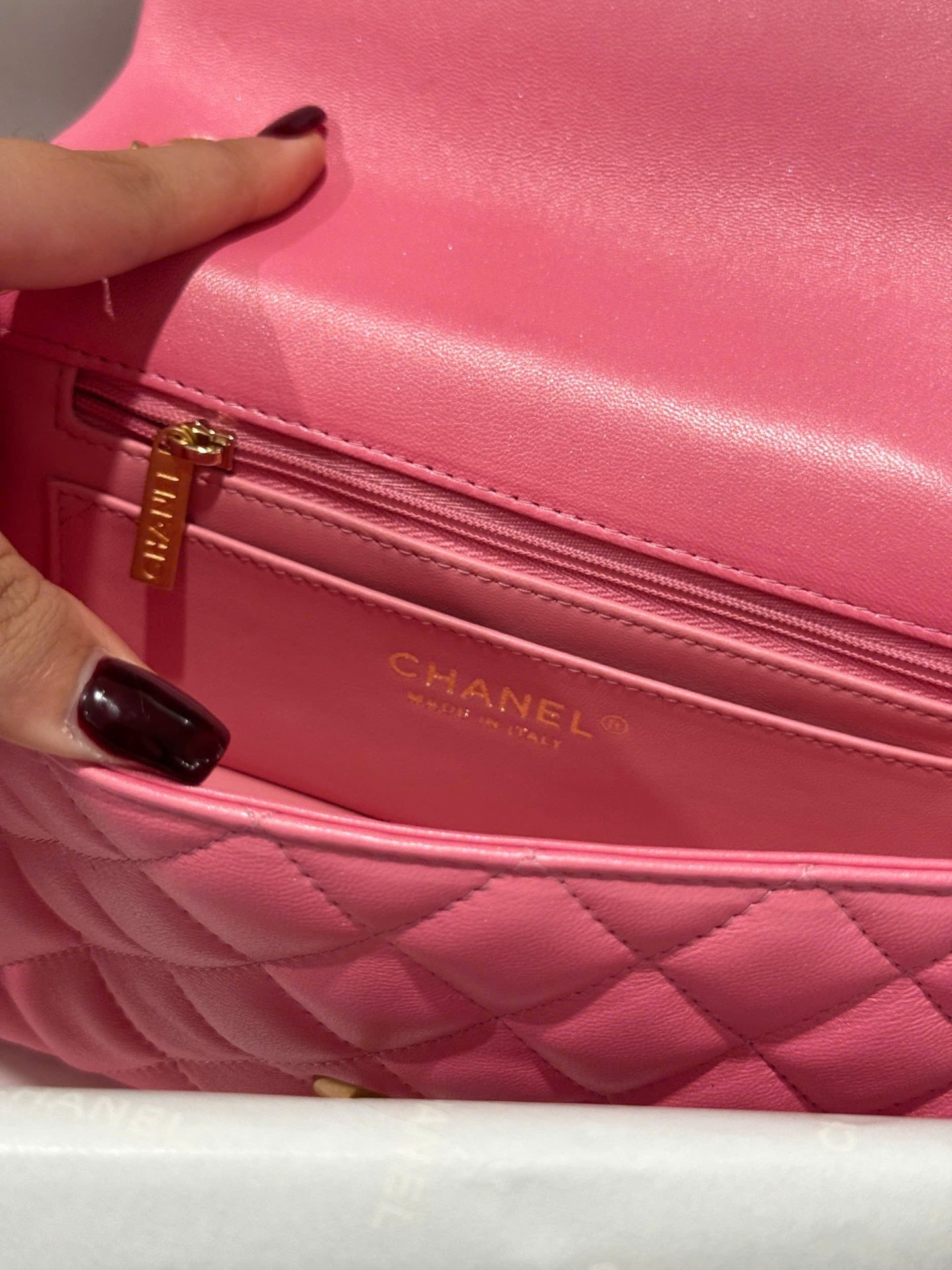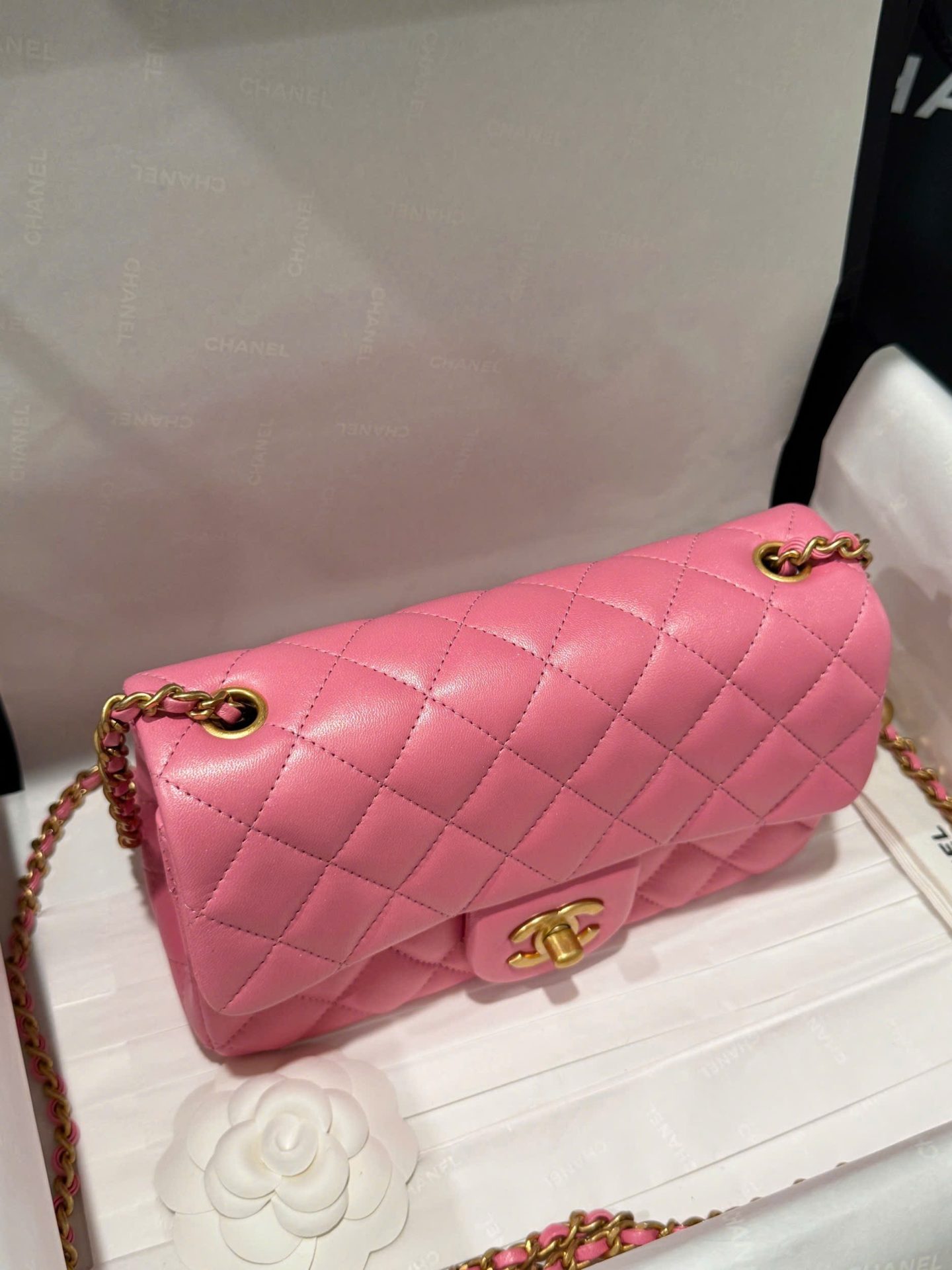 Chanel Classic Bell Like Auth Women’s Handbag Genuine Leather Dark Pink 20cm