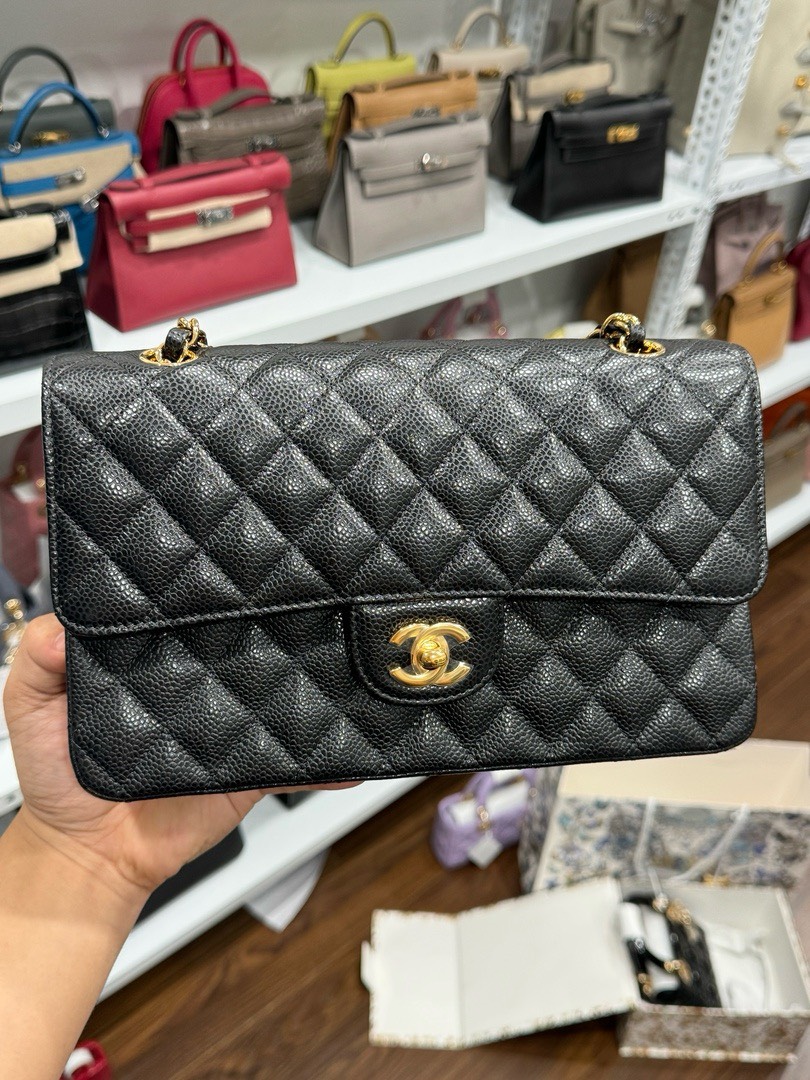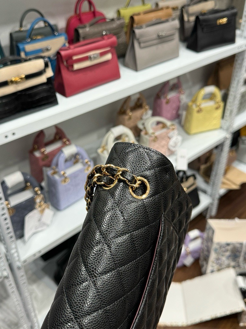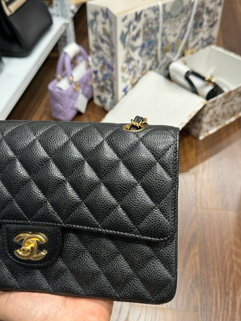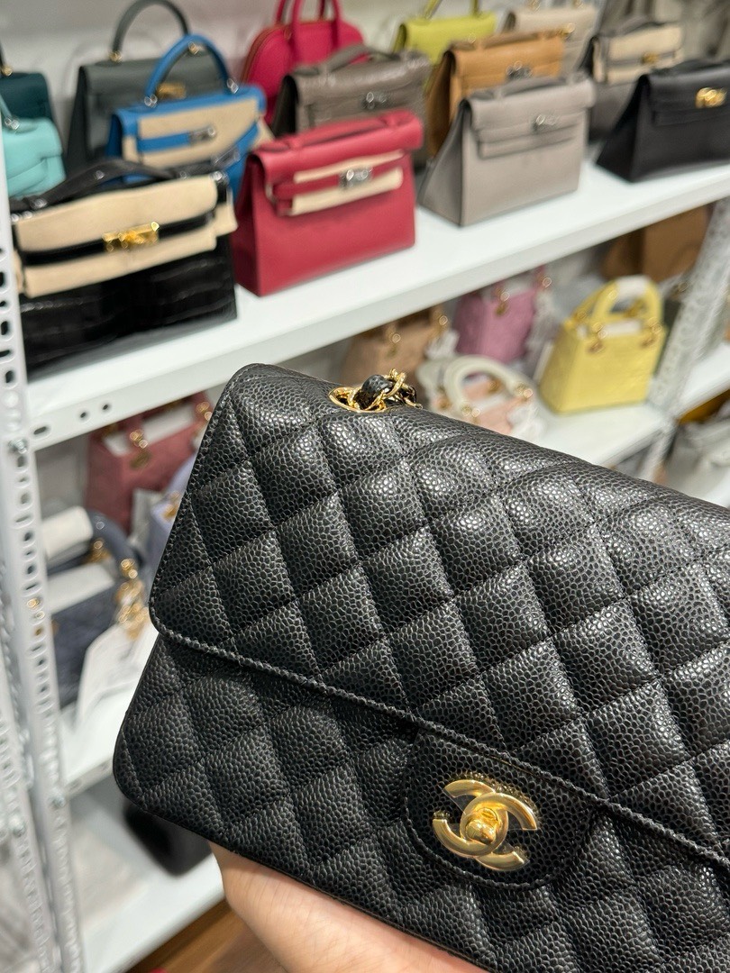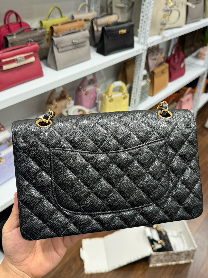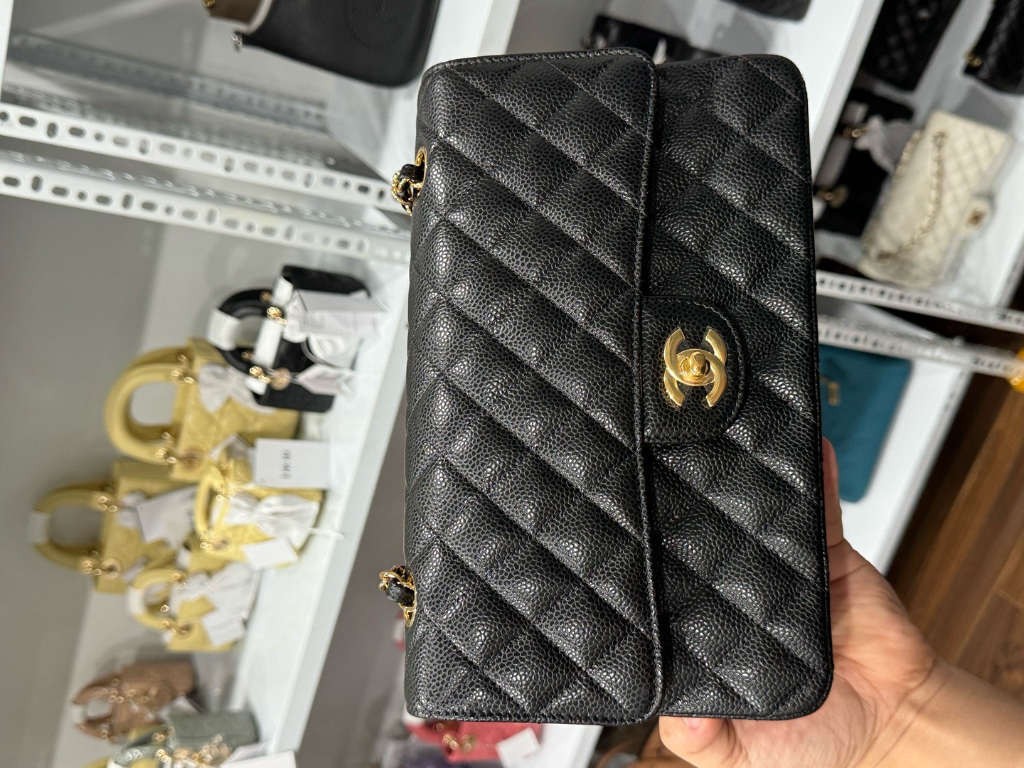 Chanel Classic Black Grained Leather Handbag with Gold Lock 25cm