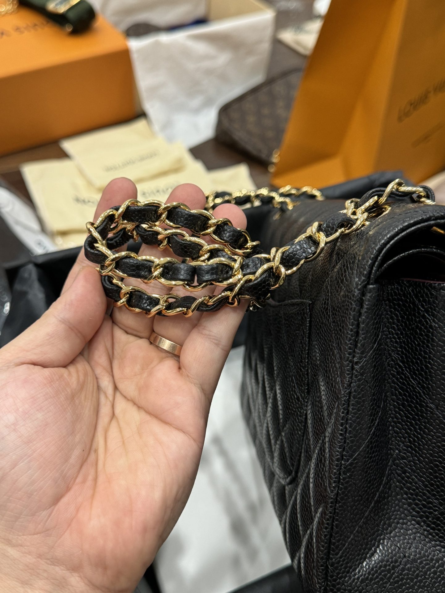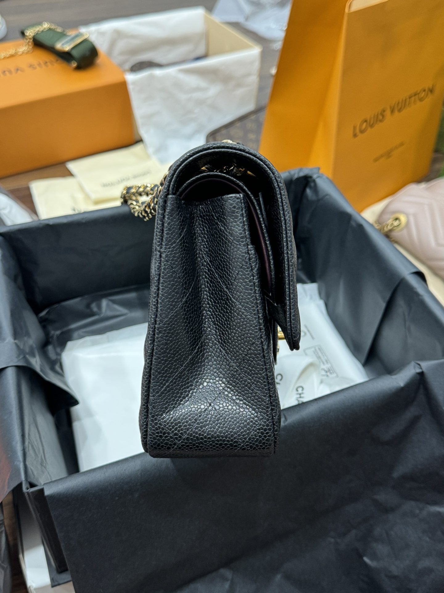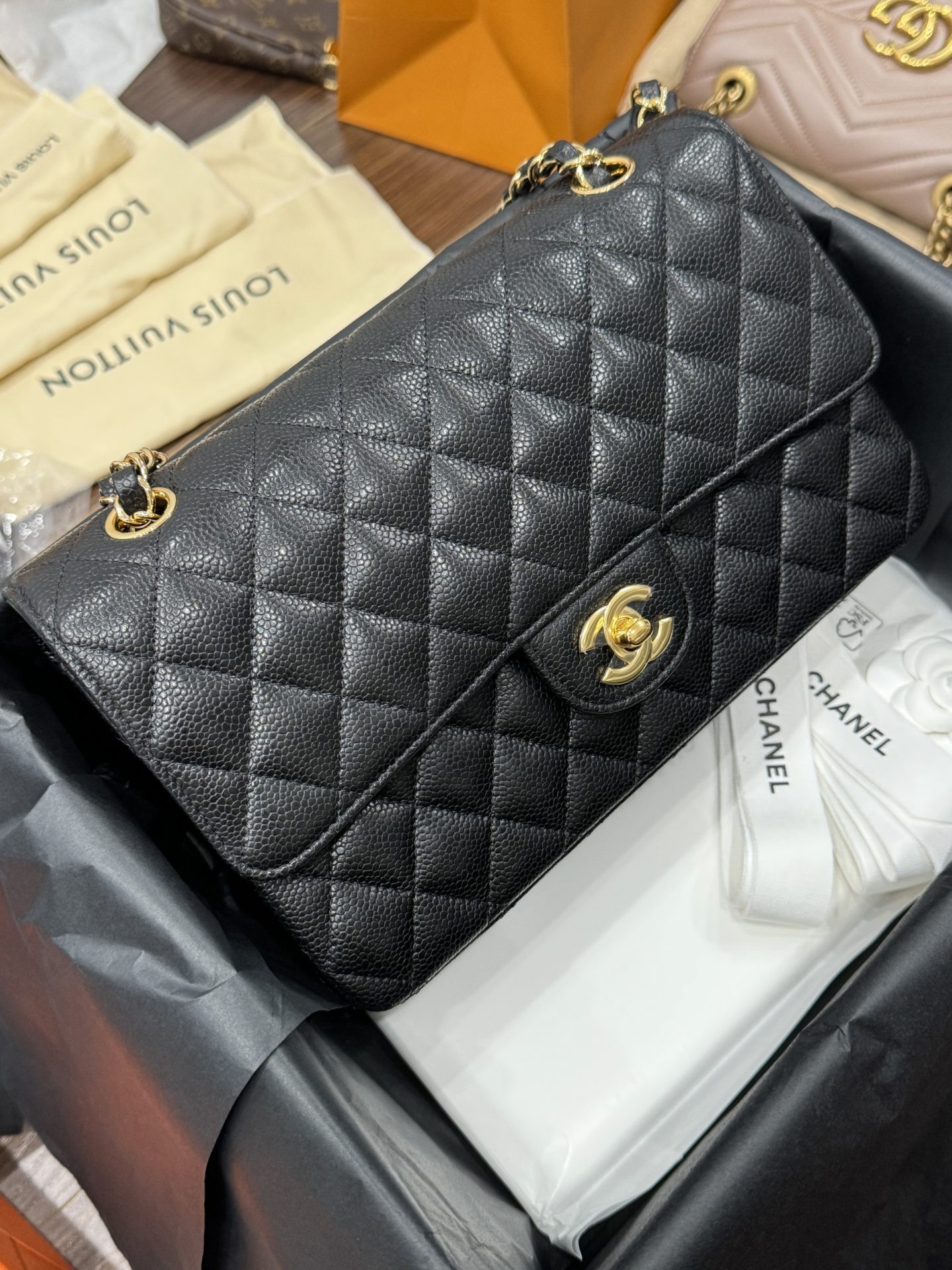 Chanel Classic Like Auth Women’s Handbag Black Grained Leather 25cm