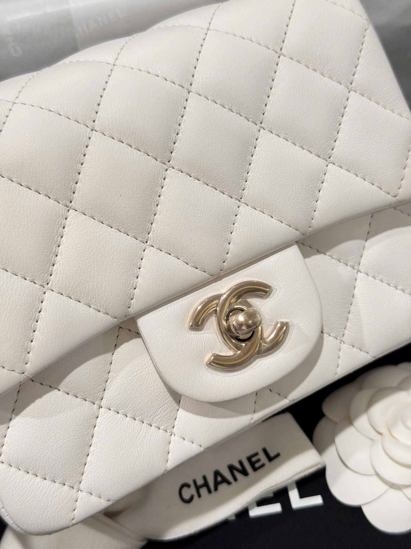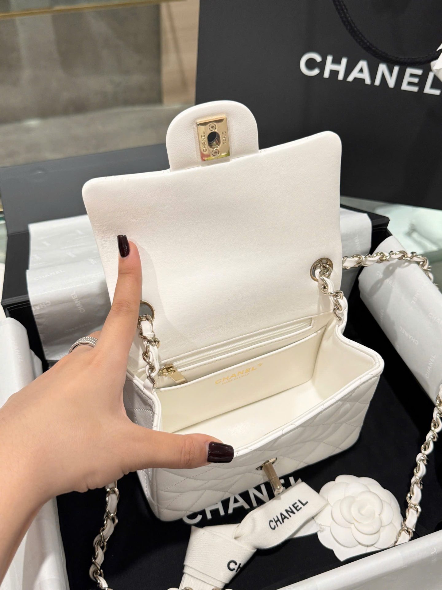 Chanel Classic Mini Super Quality Women’s Handbag White Gold Lock
