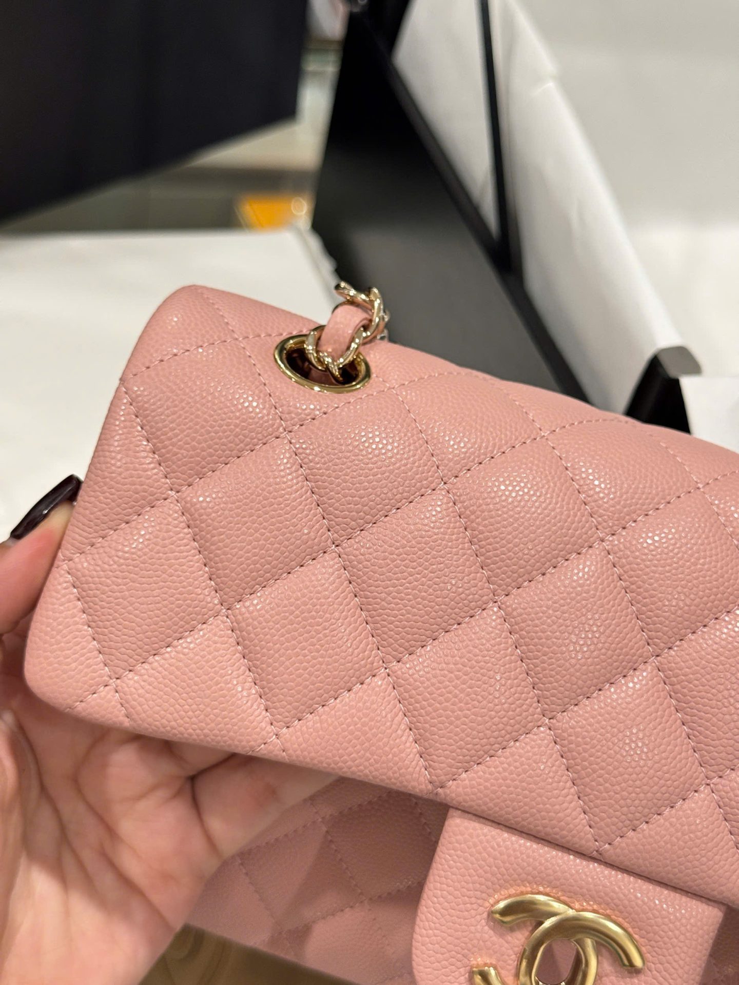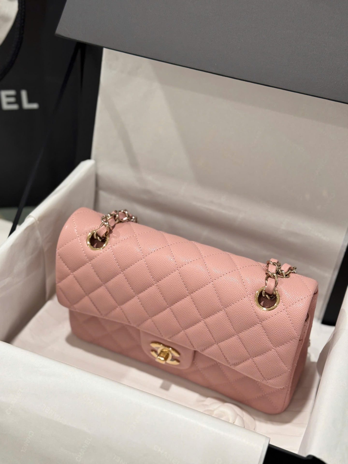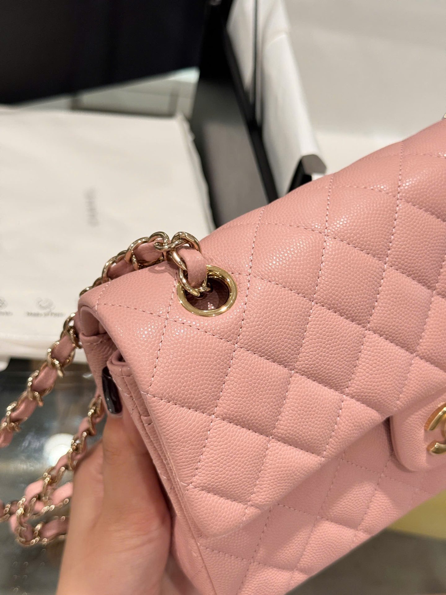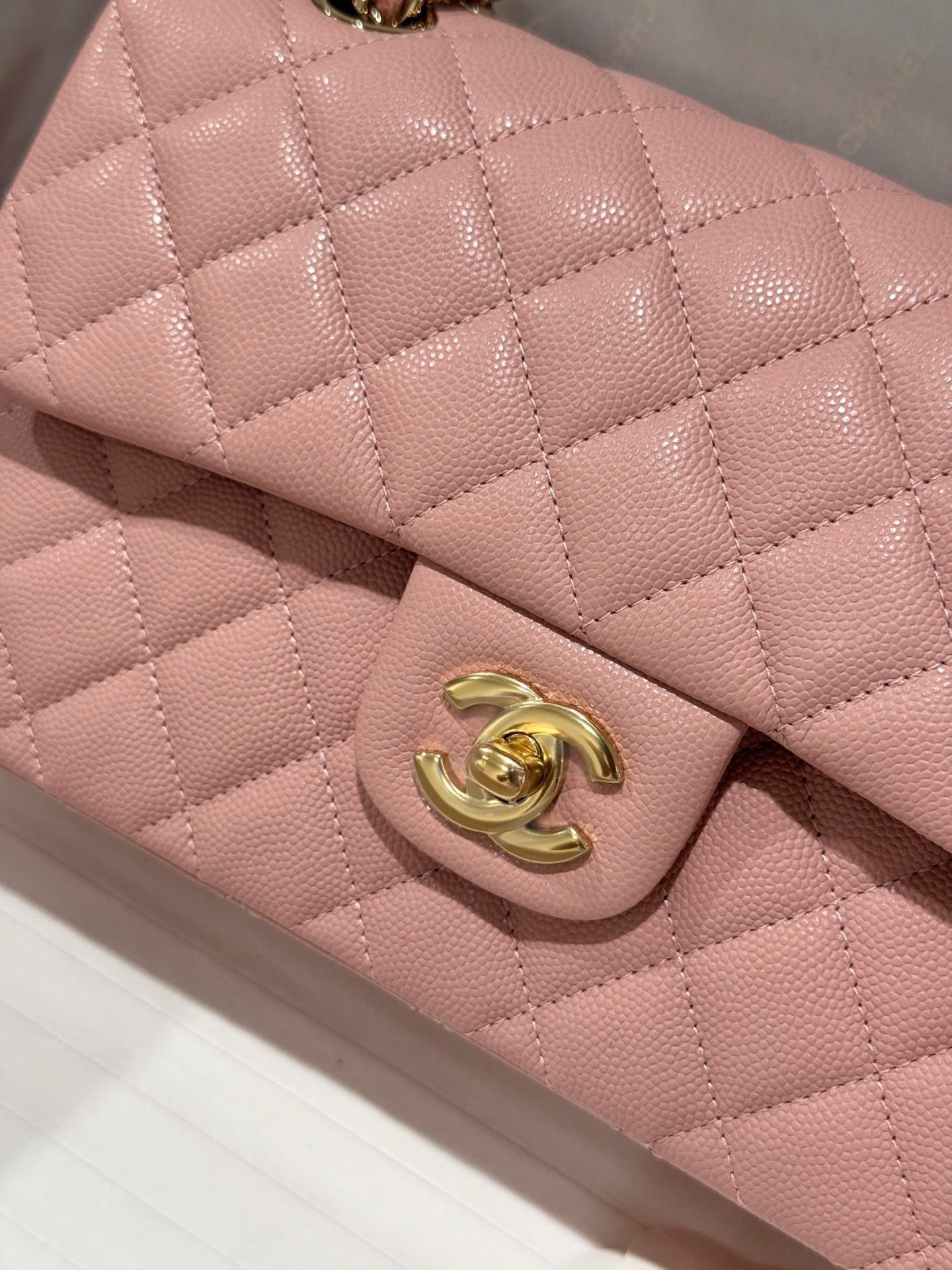 Chanel Classic Rep 11 High Quality Handbag Pink Grained Leather Gold Lock
