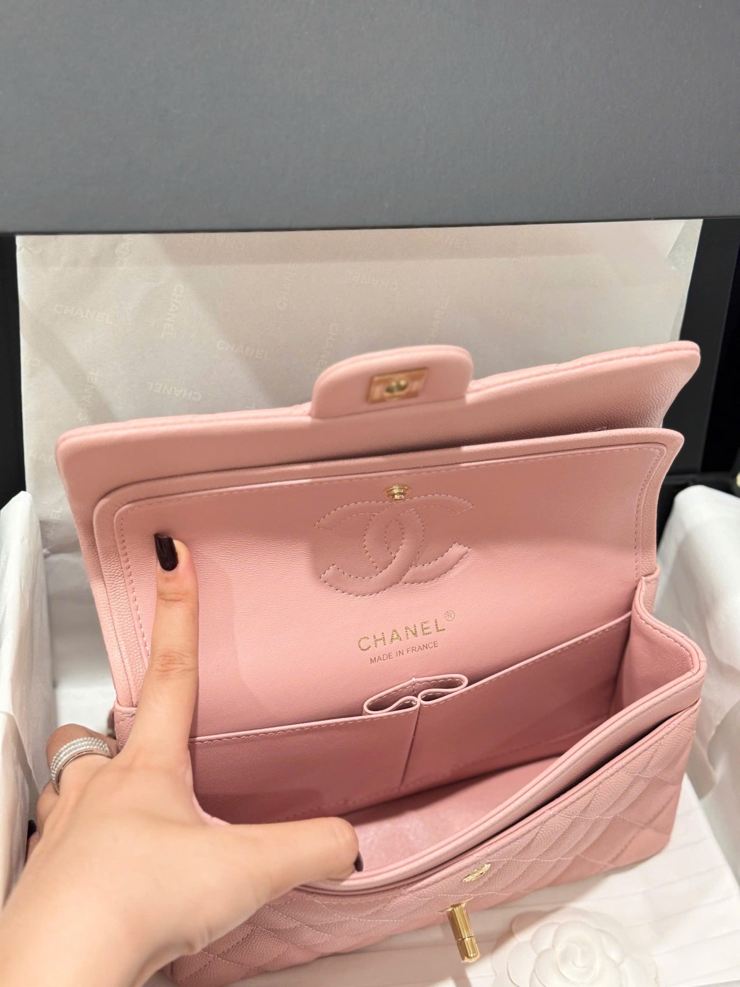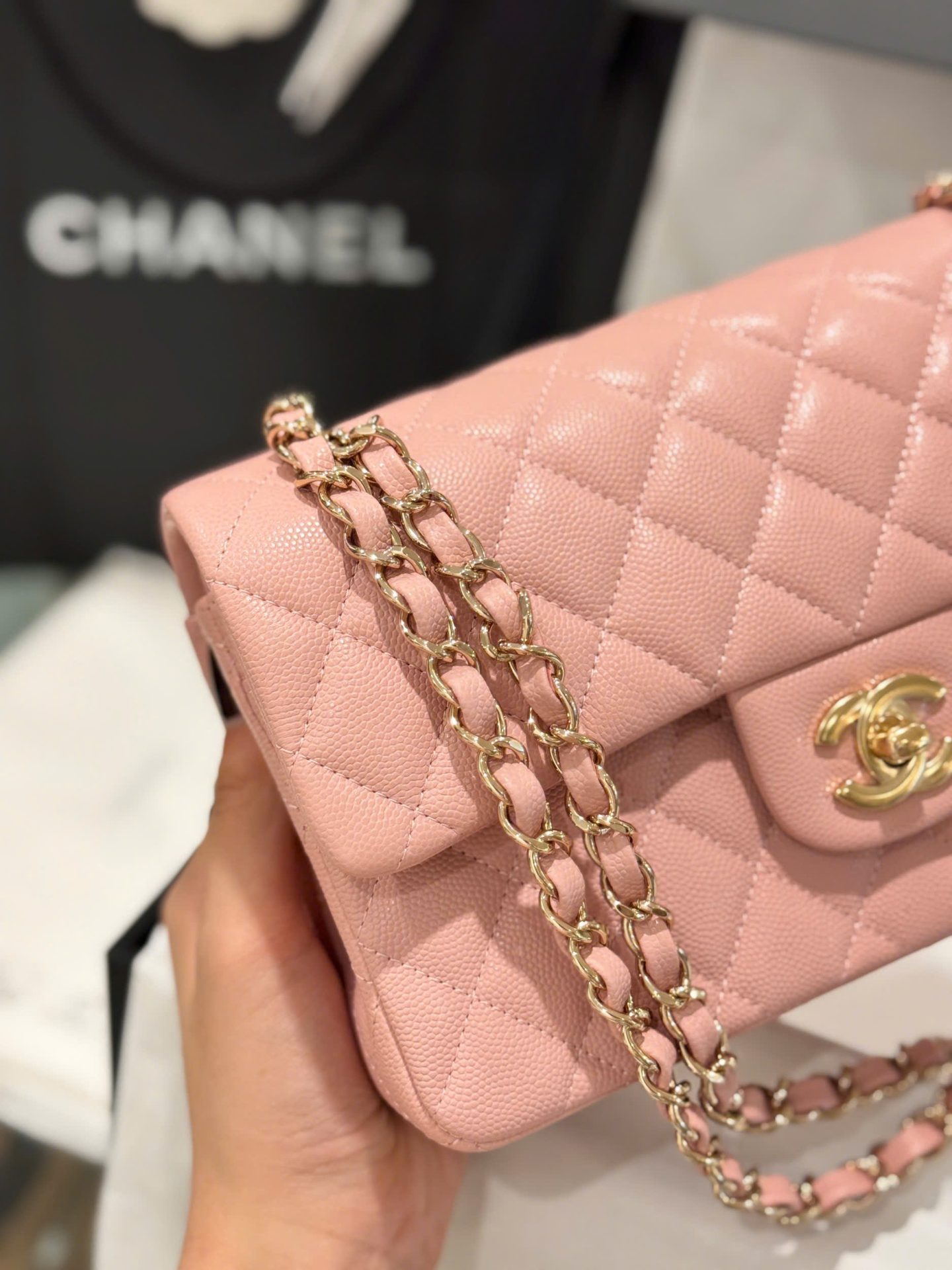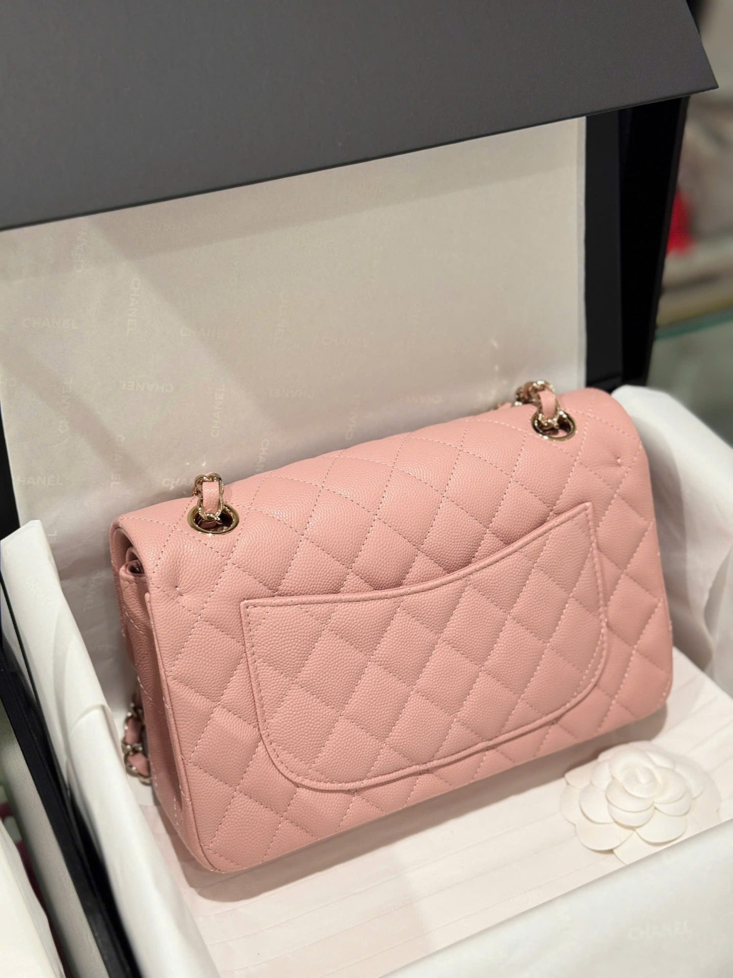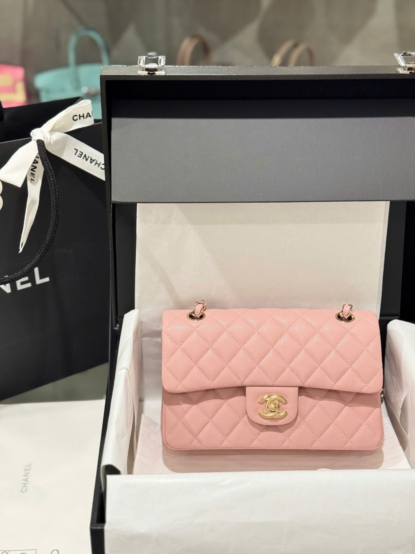 Chanel Classic Rep 11 High Quality Handbag Pink Grained Leather Gold Lock