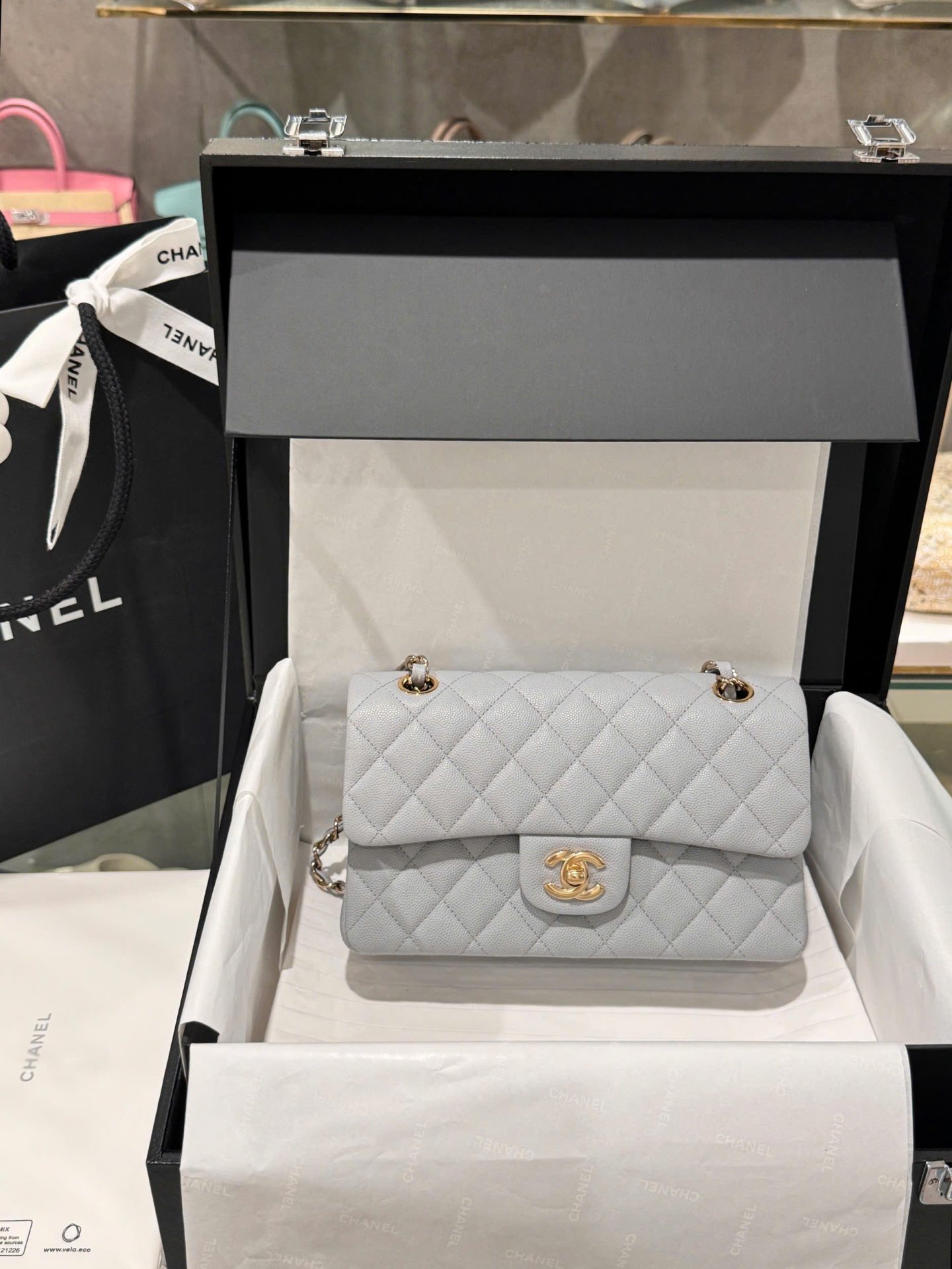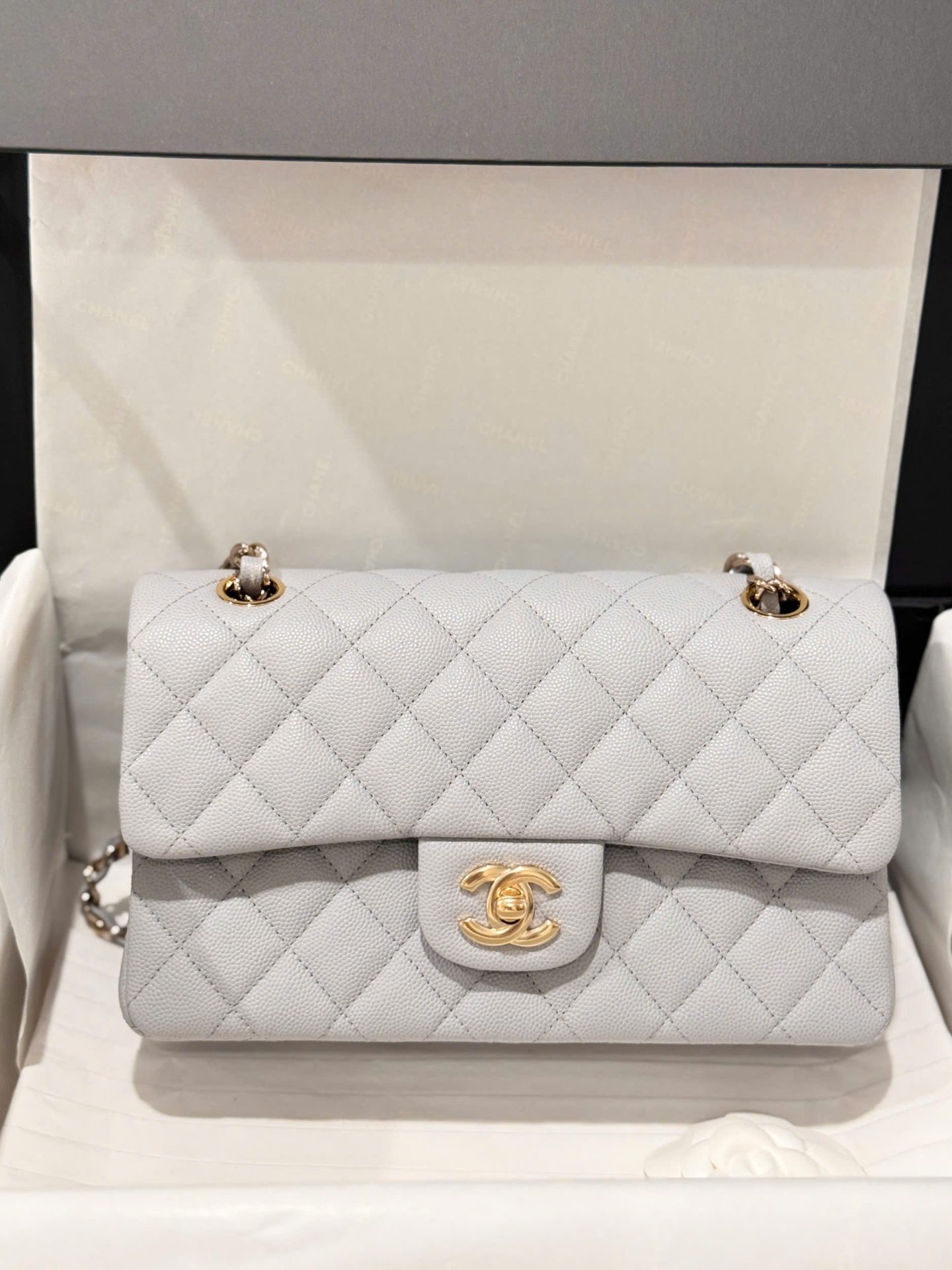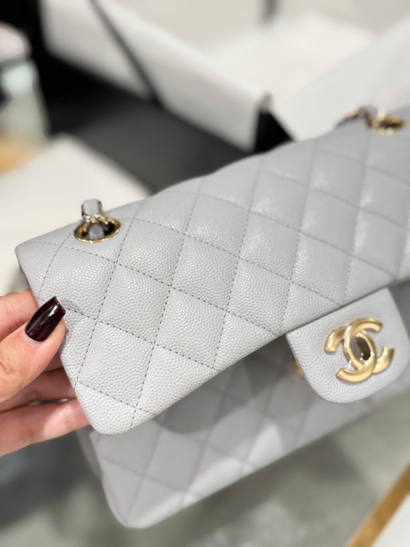 Chanel Classic Replica Women’s Handbag Gray Gold Lock
