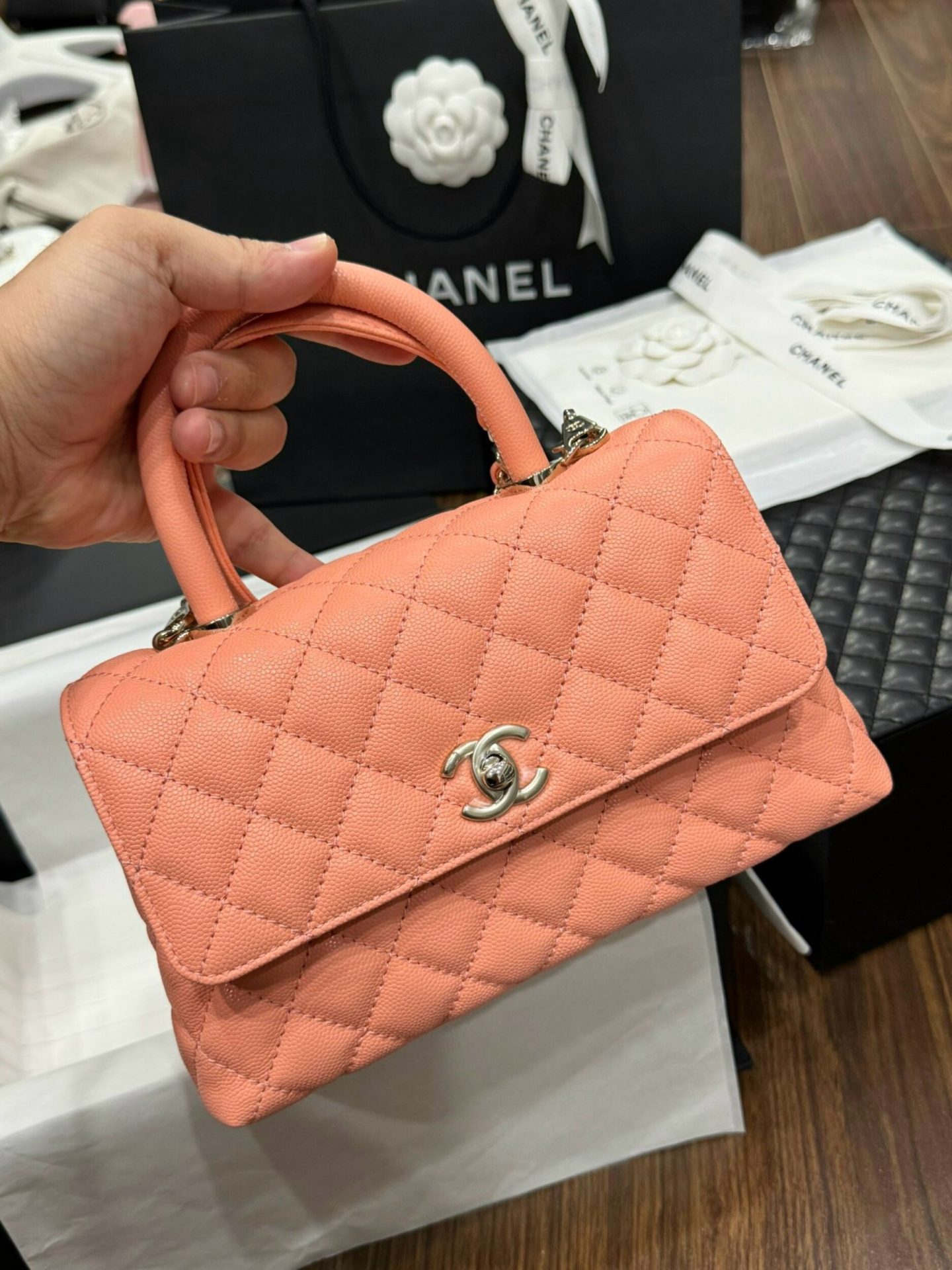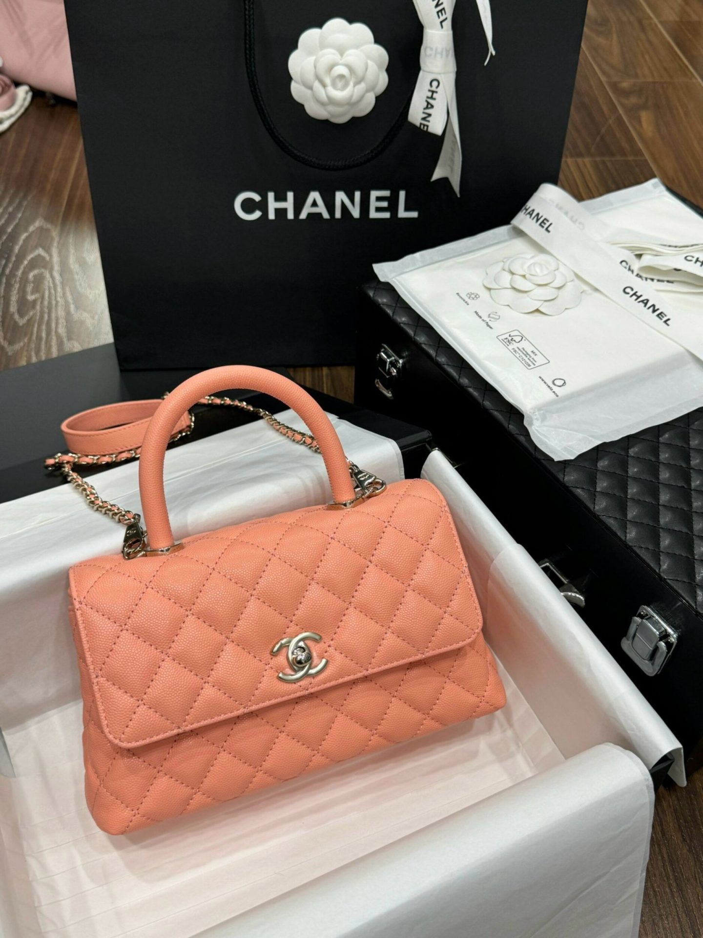 Chanel Coco Rep 1:1 High-end Women’s Handbag Orange Calfskin