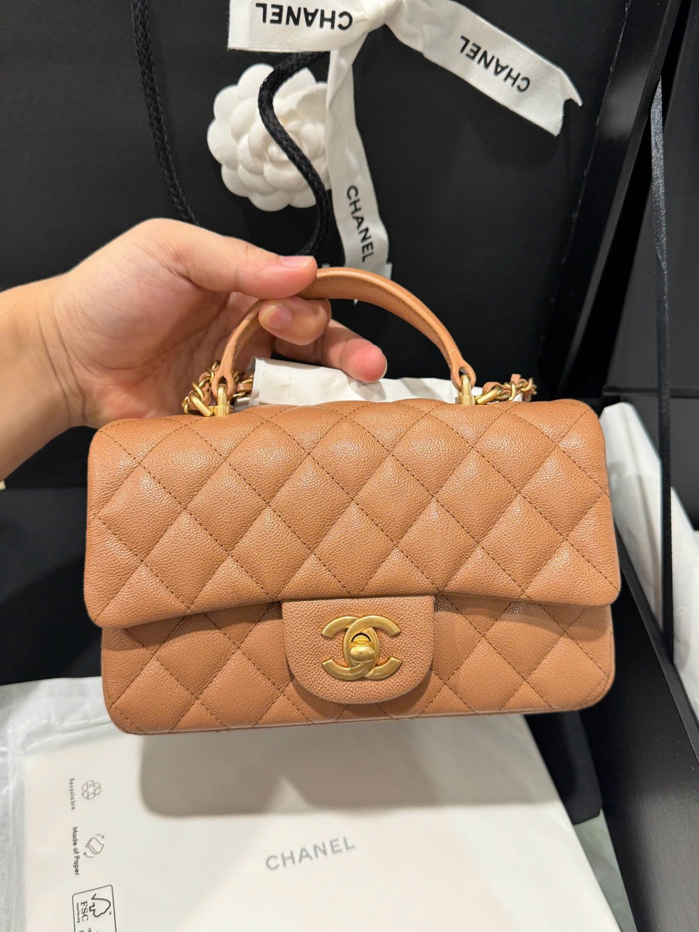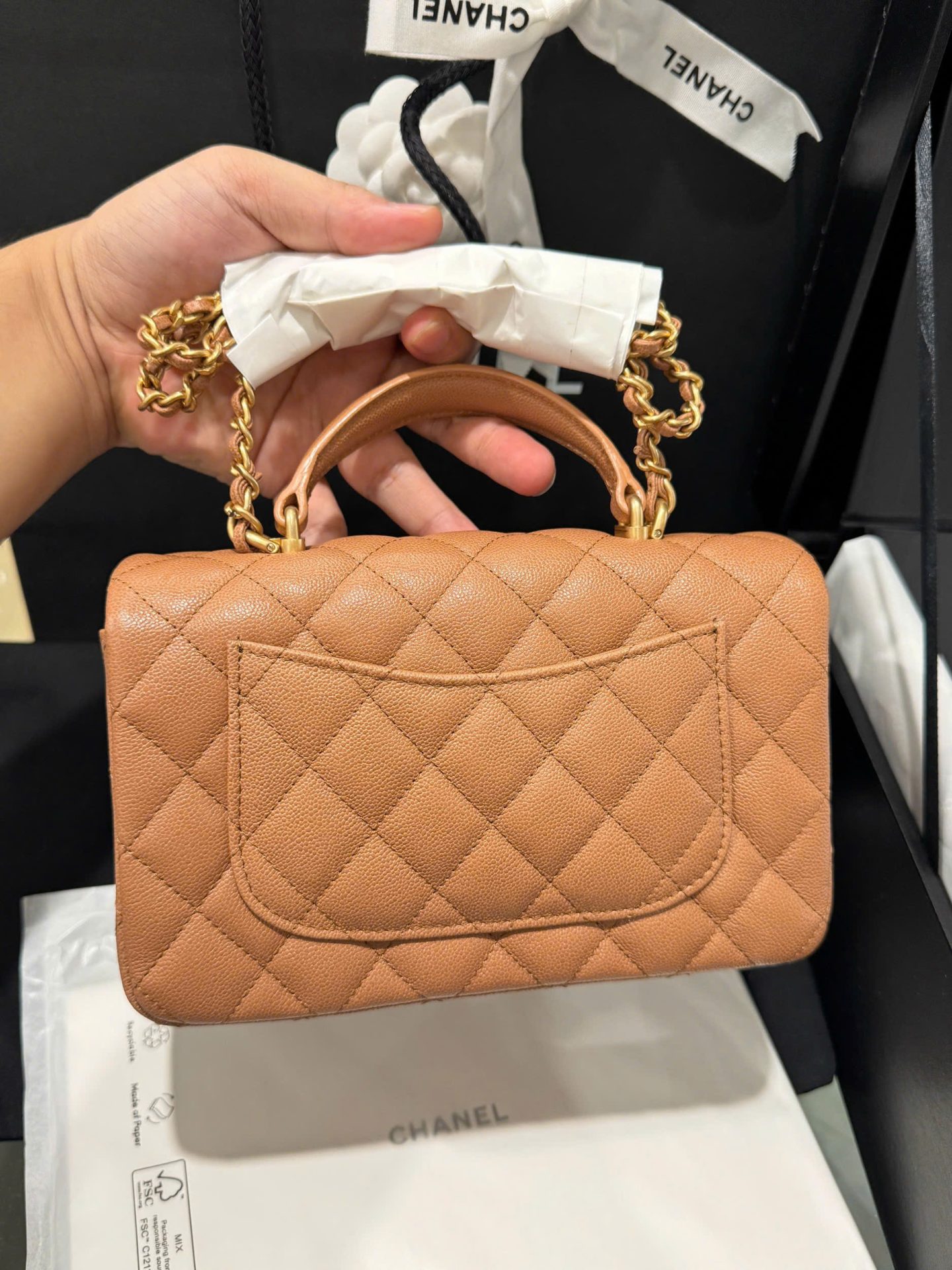 Chanel Handle Mini Replica Handbag 11 Orange Gold Lock 20cm