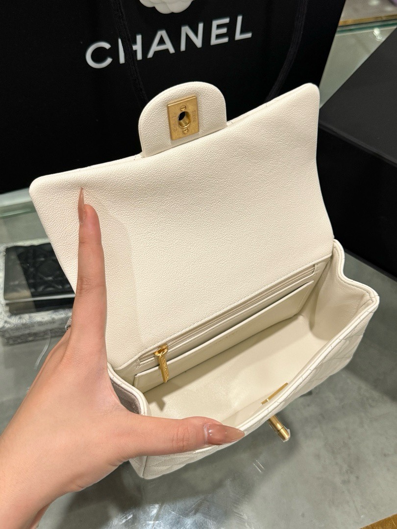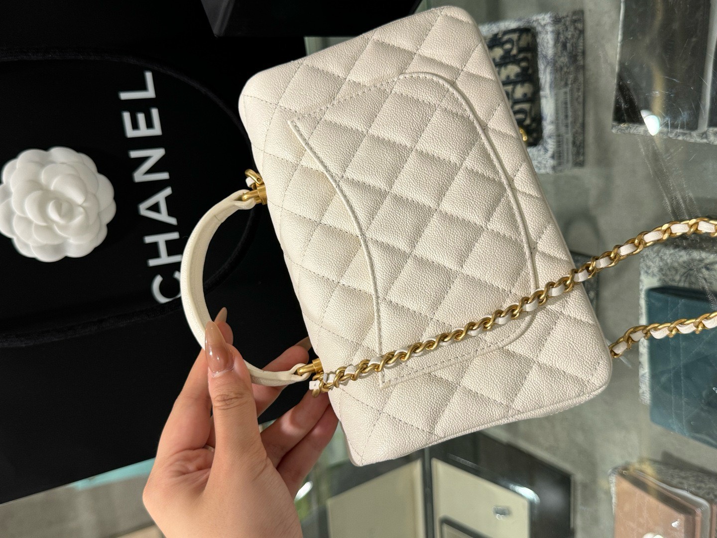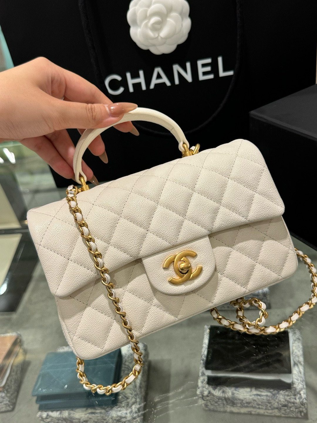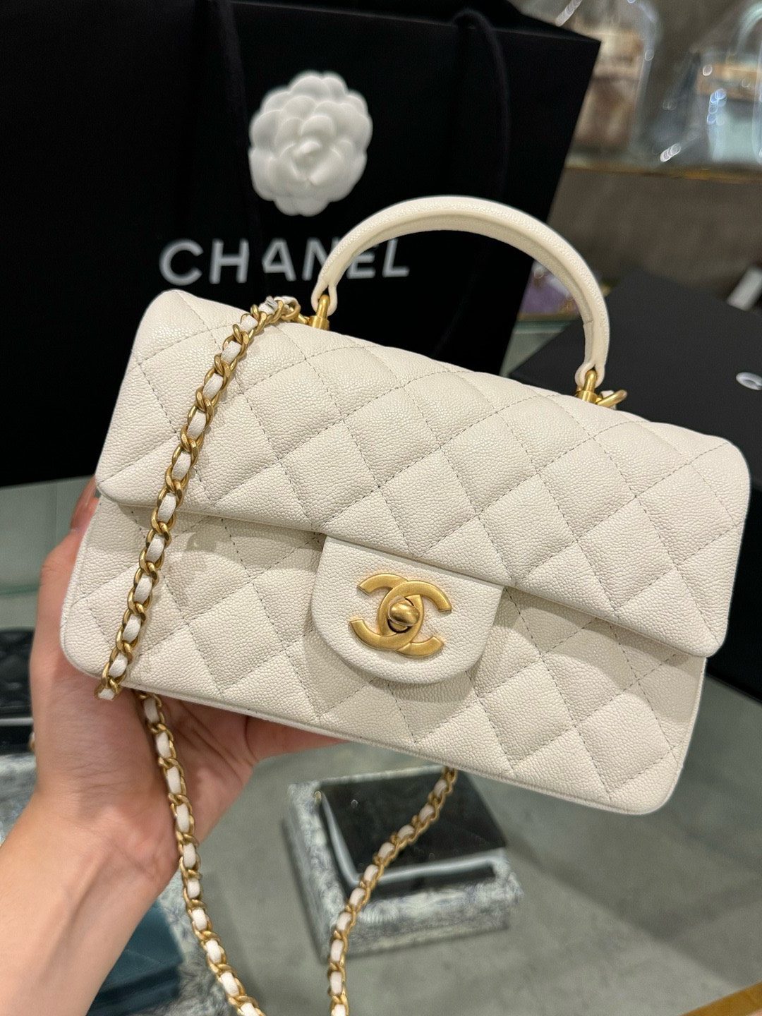 Chanel Handle Mini Replica Handbag 11 White Grain Leather
