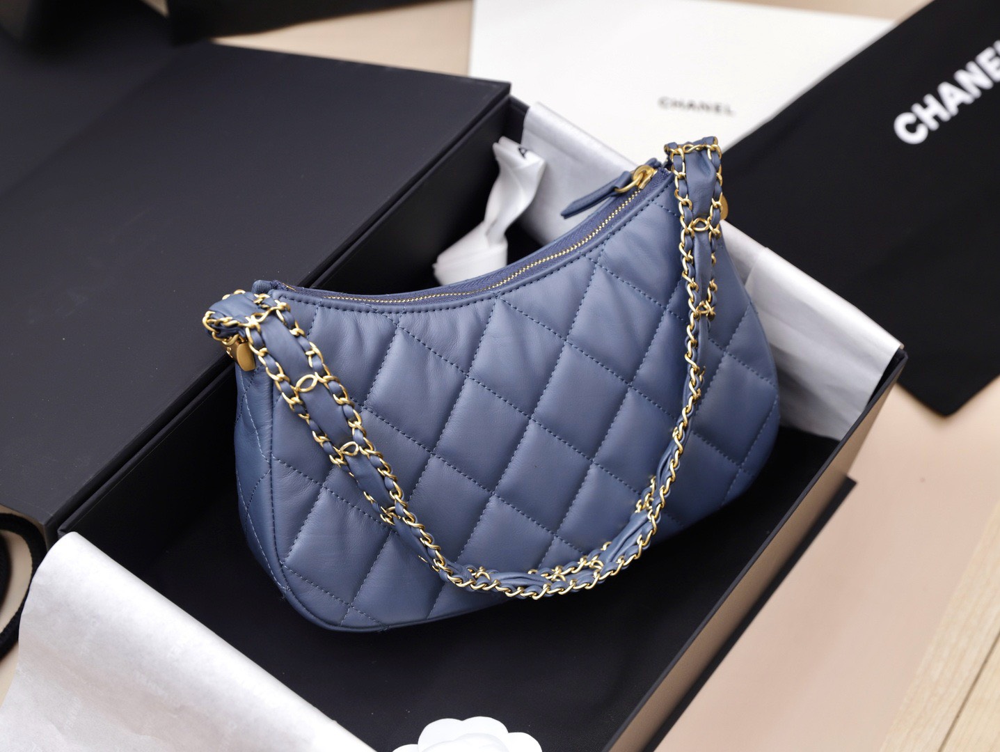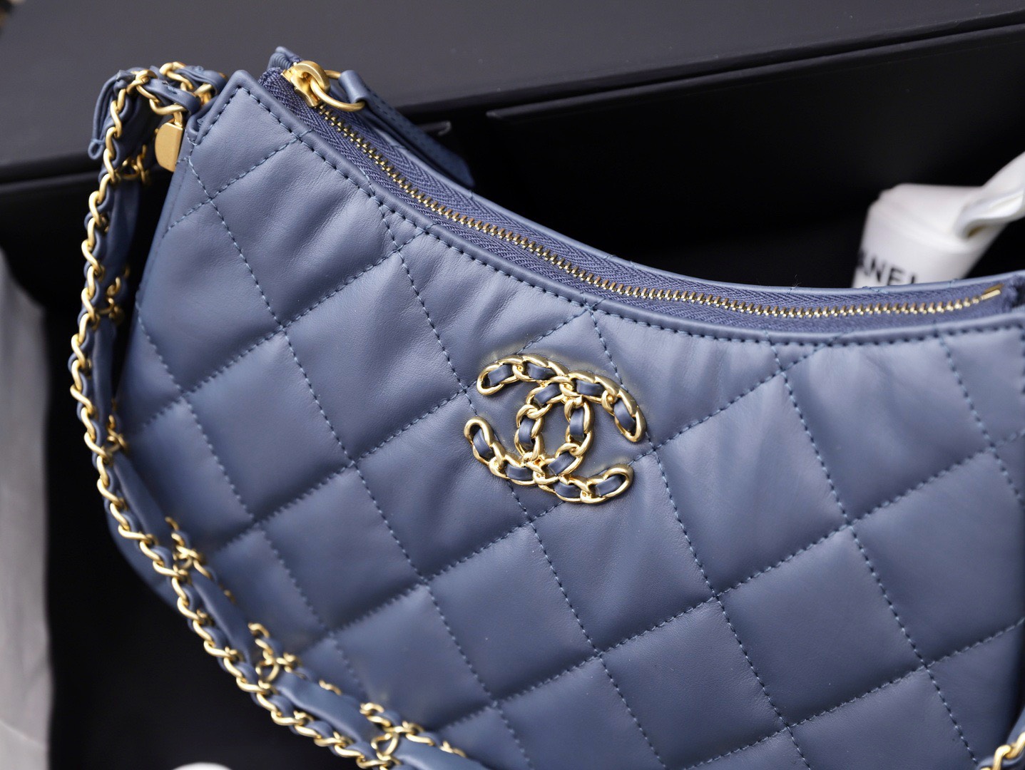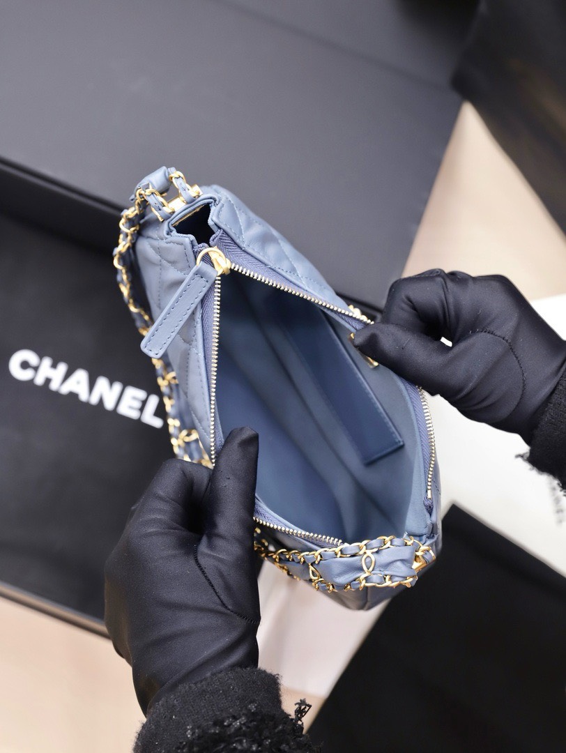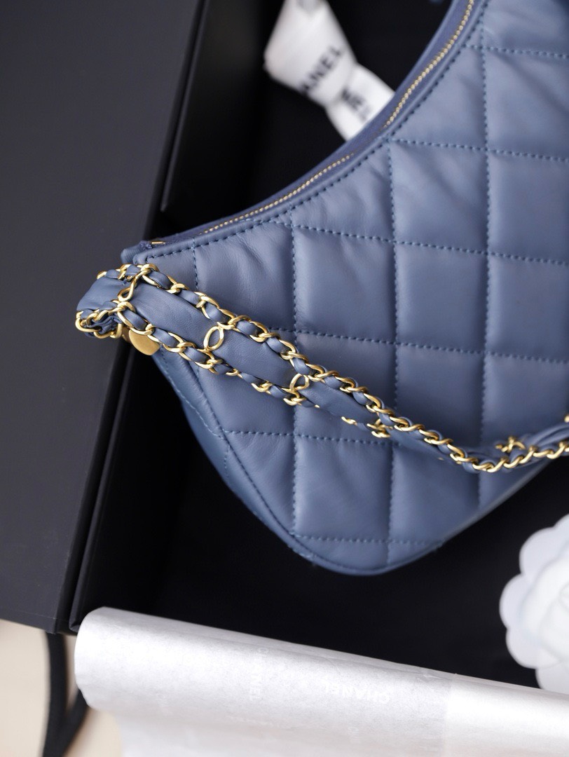 Chanel Hobo Handbag for Women Blue Gold Lock