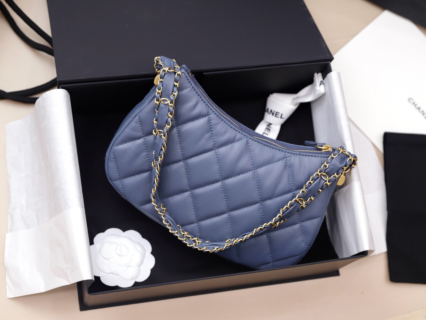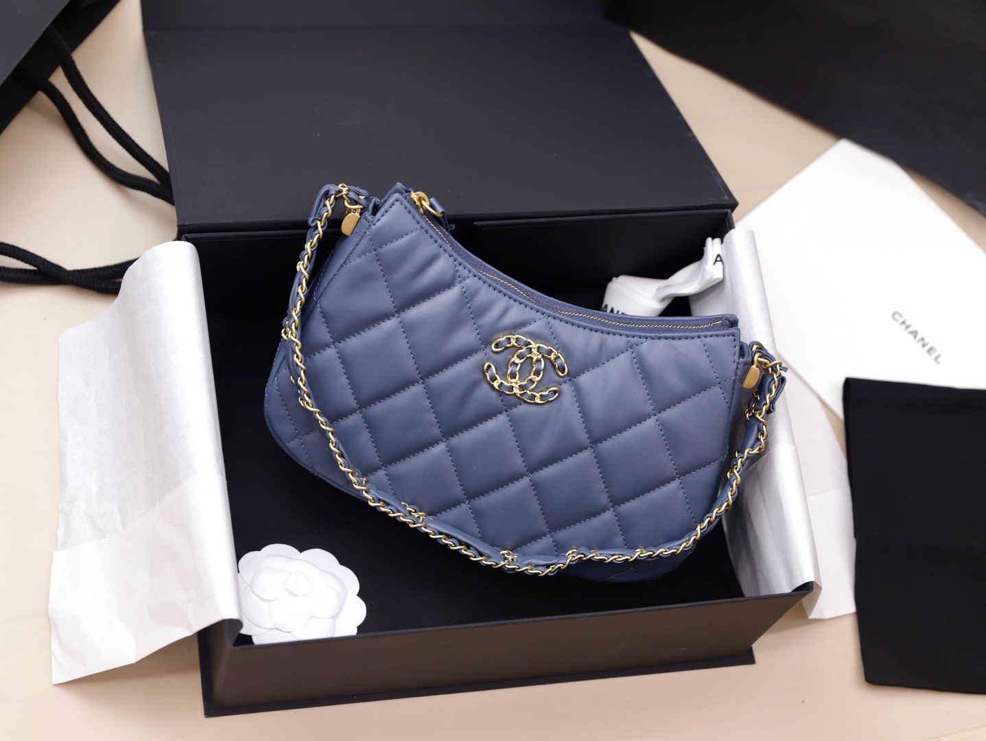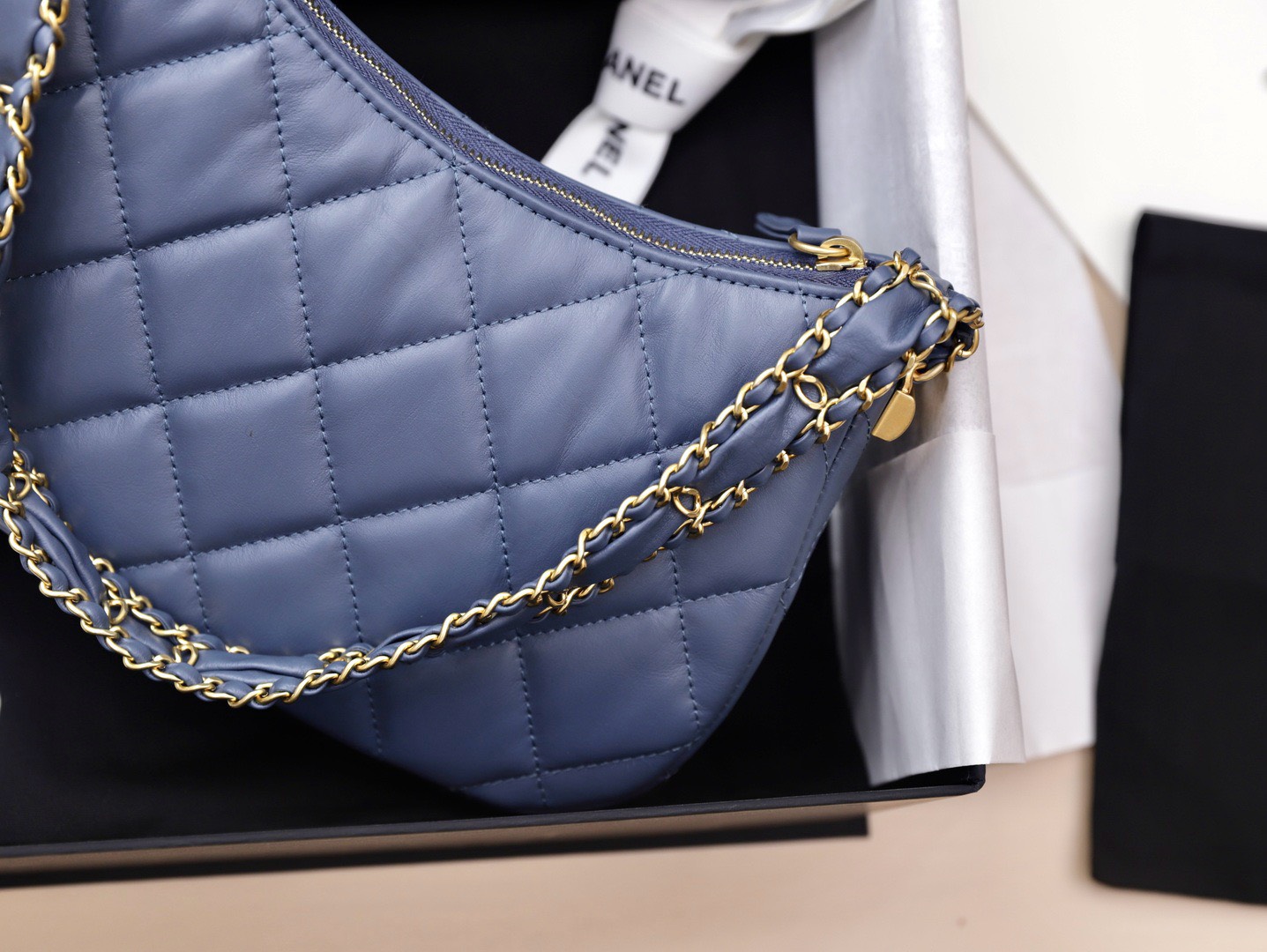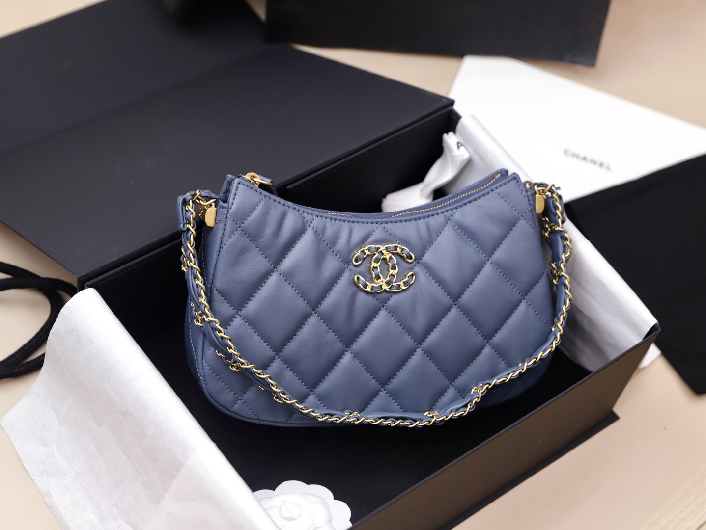 Chanel Hobo Handbag for Women Blue Gold Lock