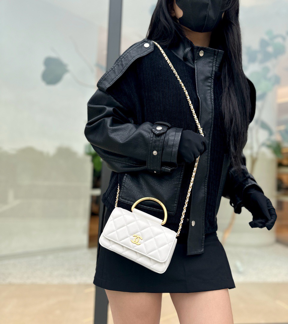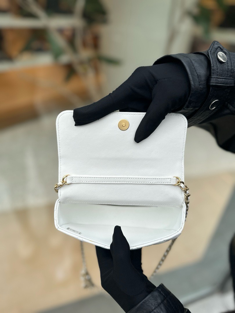 Chanel Super Mini Handbag for Women, White Sheepskin 17x9x3.5cm