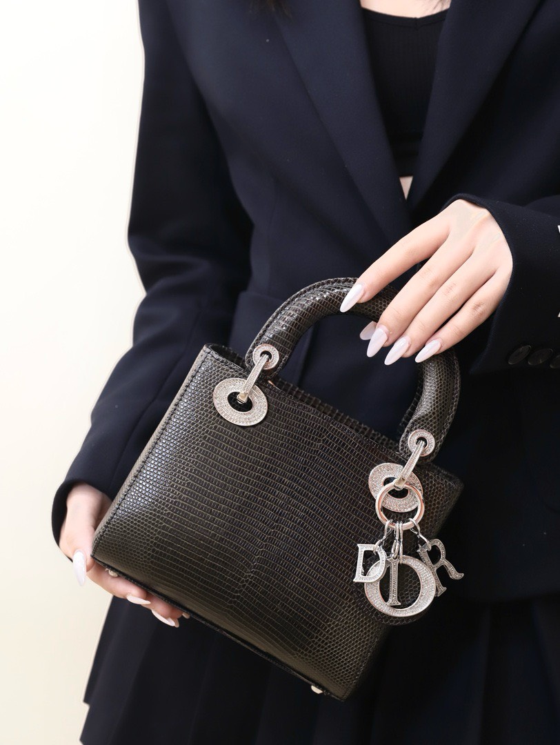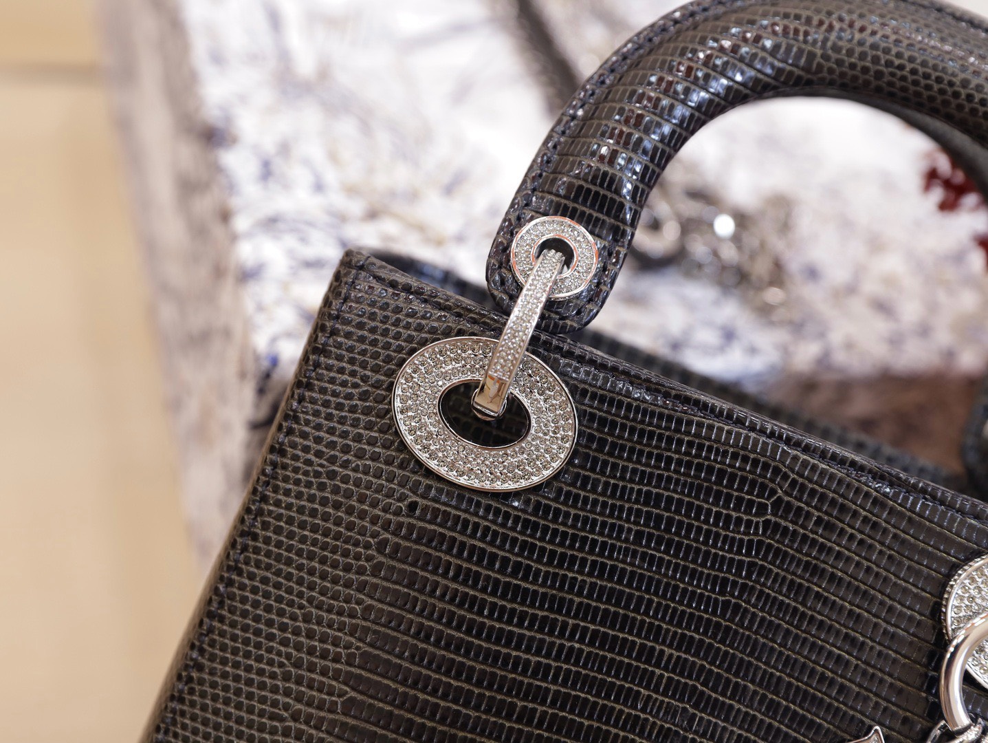 Dior Lady Rep 11 High-Quality Black Lizard Leather Women’s Handbag 17cm
