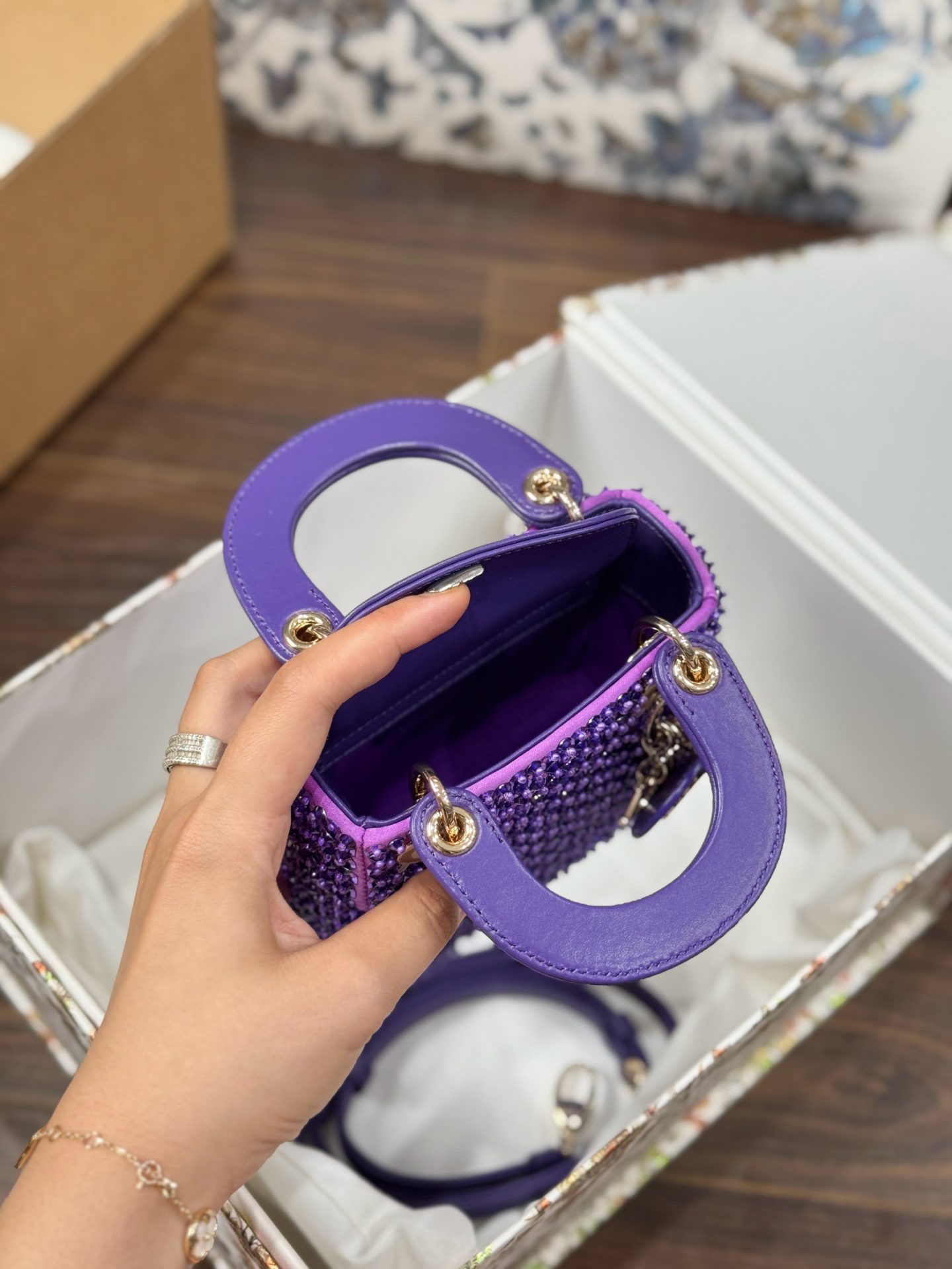 Dior Lady Women’s Purple Beaded Handbag 12×10.5x5cm