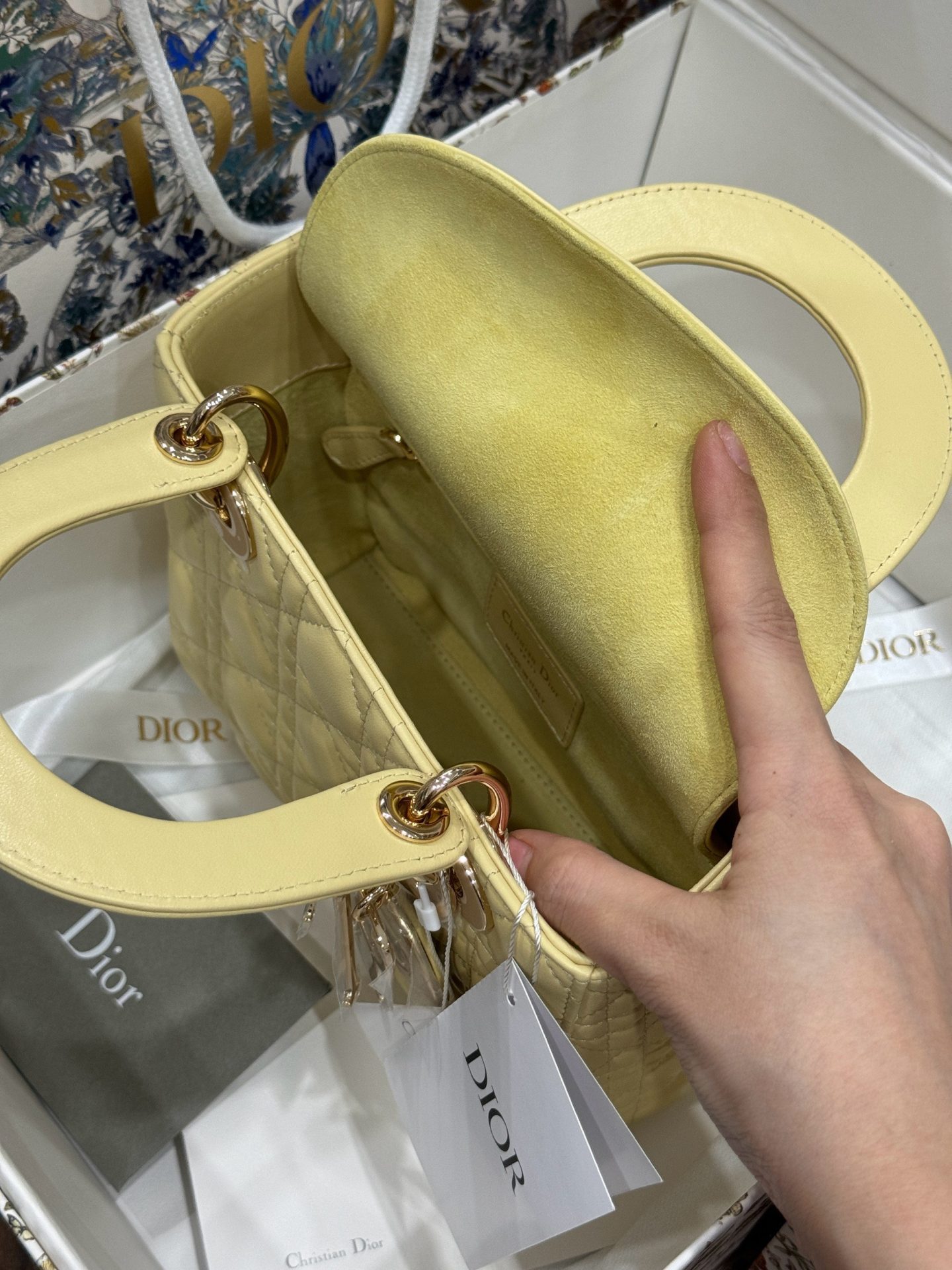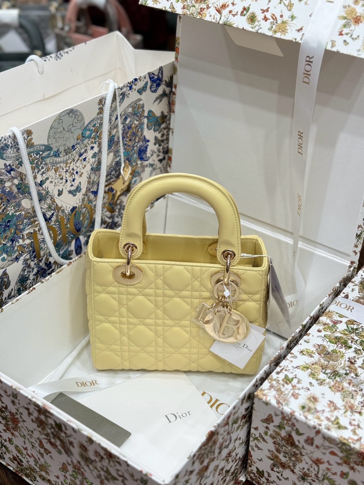 Dior Lady Yellow Sheepskin Women’s Handbag Rep 11 High Quality 20cm