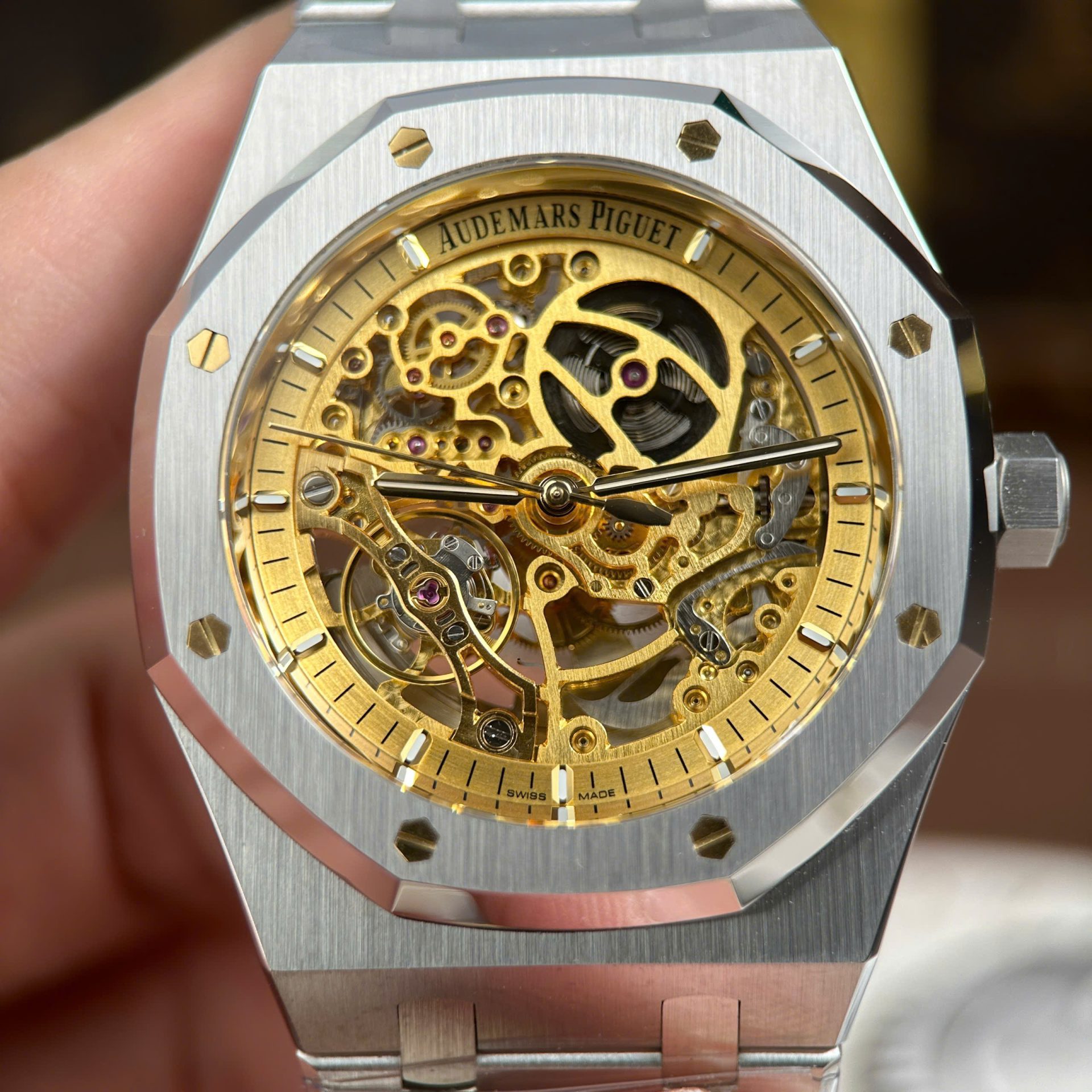 Đồng Hồ Audemars Piguet Royal Oak Openworked 15407 Replica 11 Mặt Lộ Cơ Màu Vàng Xưởng THB 41mm