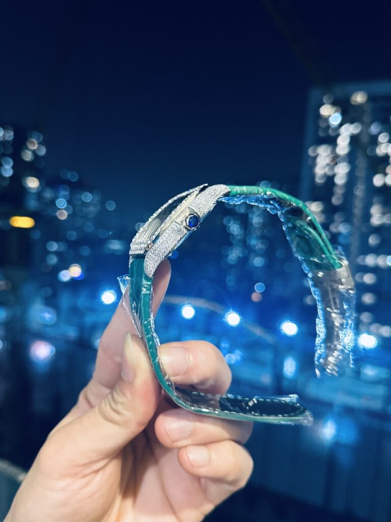 Đồng Hồ Cartier Santos Đính Moissanite Màu Xanh Lá Cây Rep 1:1 39.8mm đang có sẵn tại King Replica.