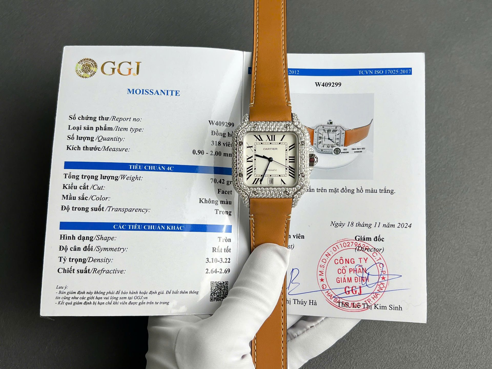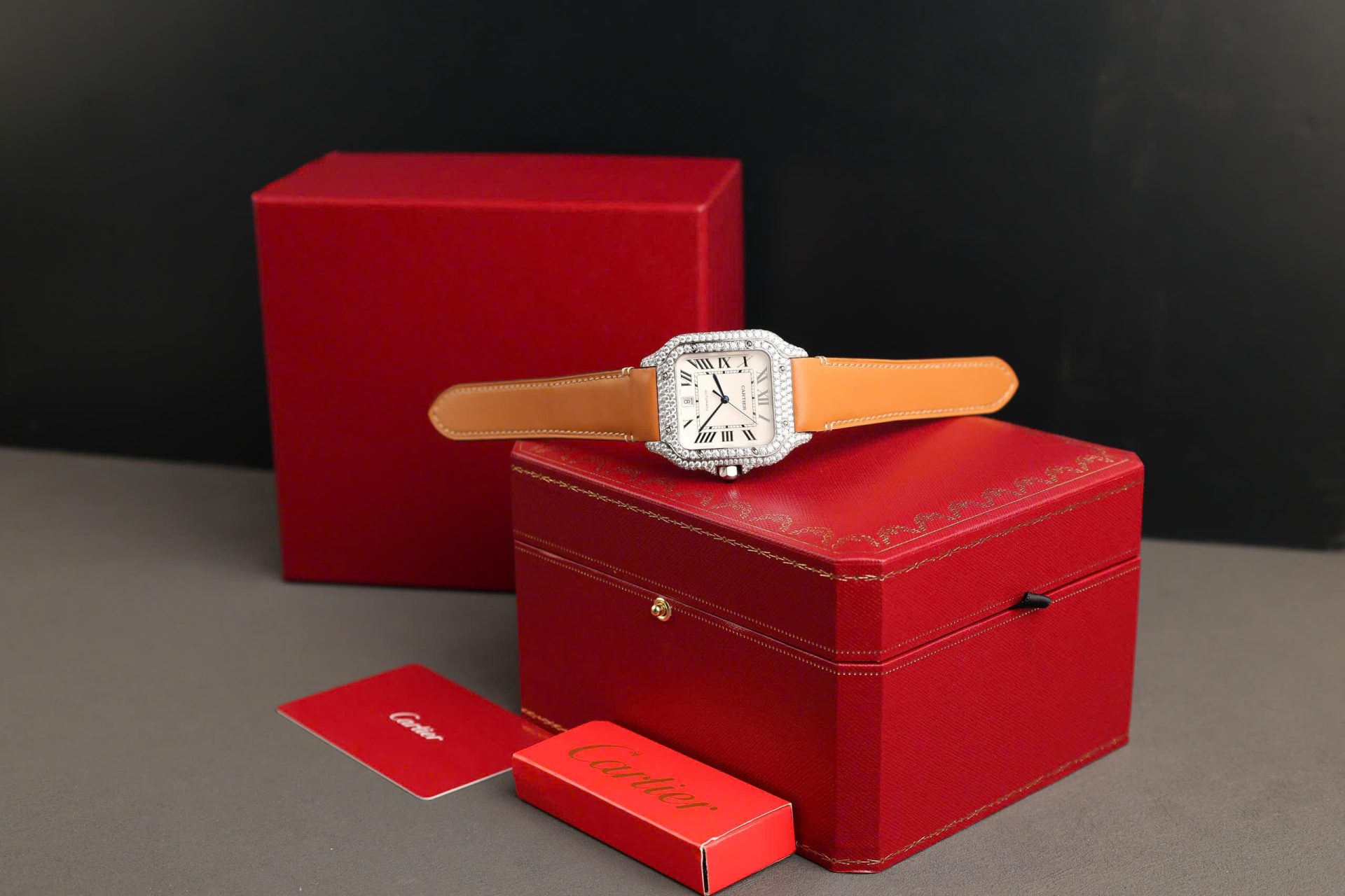 Giới Thiệu Đồng Hồ Cartier Santos Mặt Trắng Chế Tác