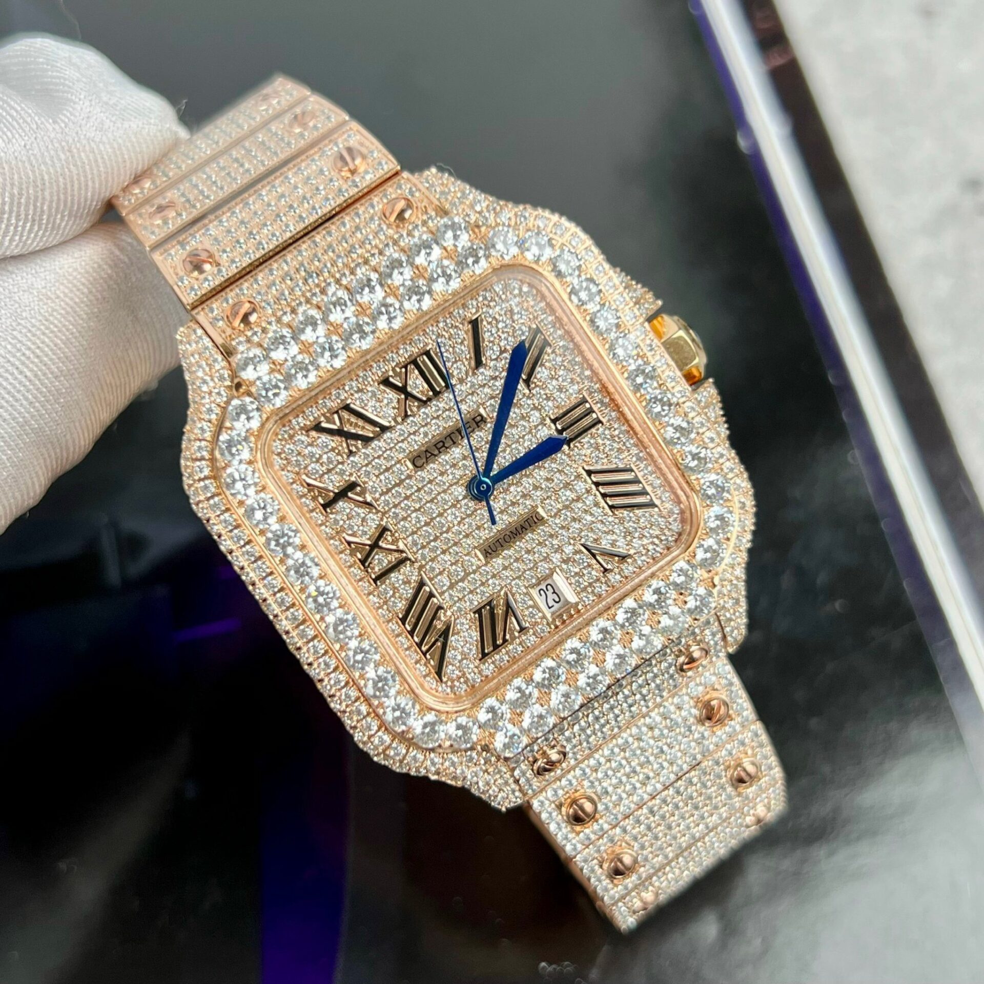 Đồng Hồ Cartier Santos Nam Đính Full Đá Replica 1 1