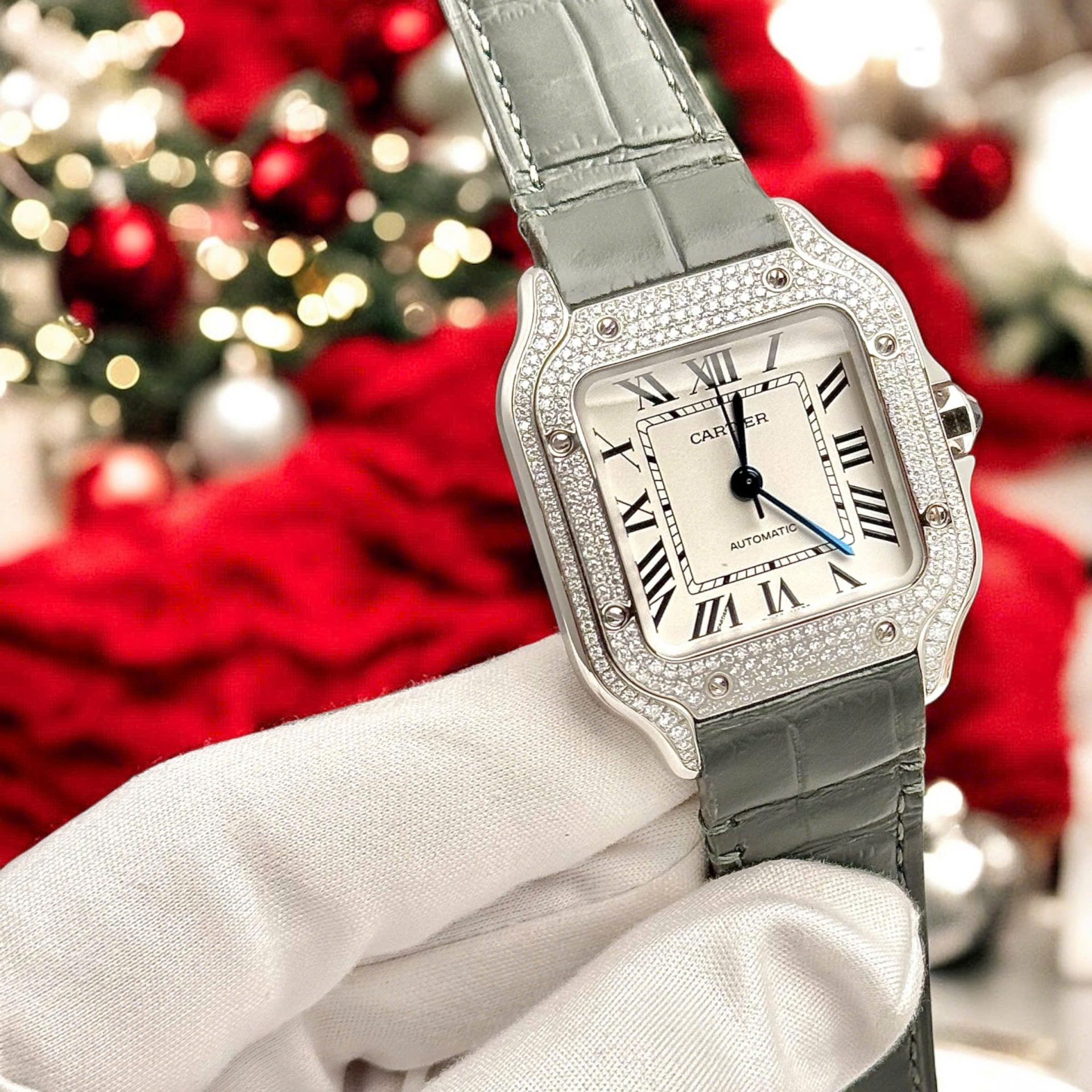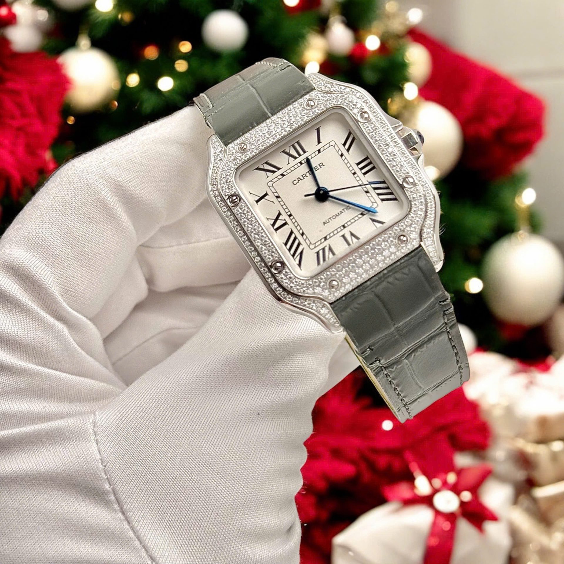 Giới Thiệu Đồng Hồ Cartier Santos Nữ Mặt Trắng Chế Tác