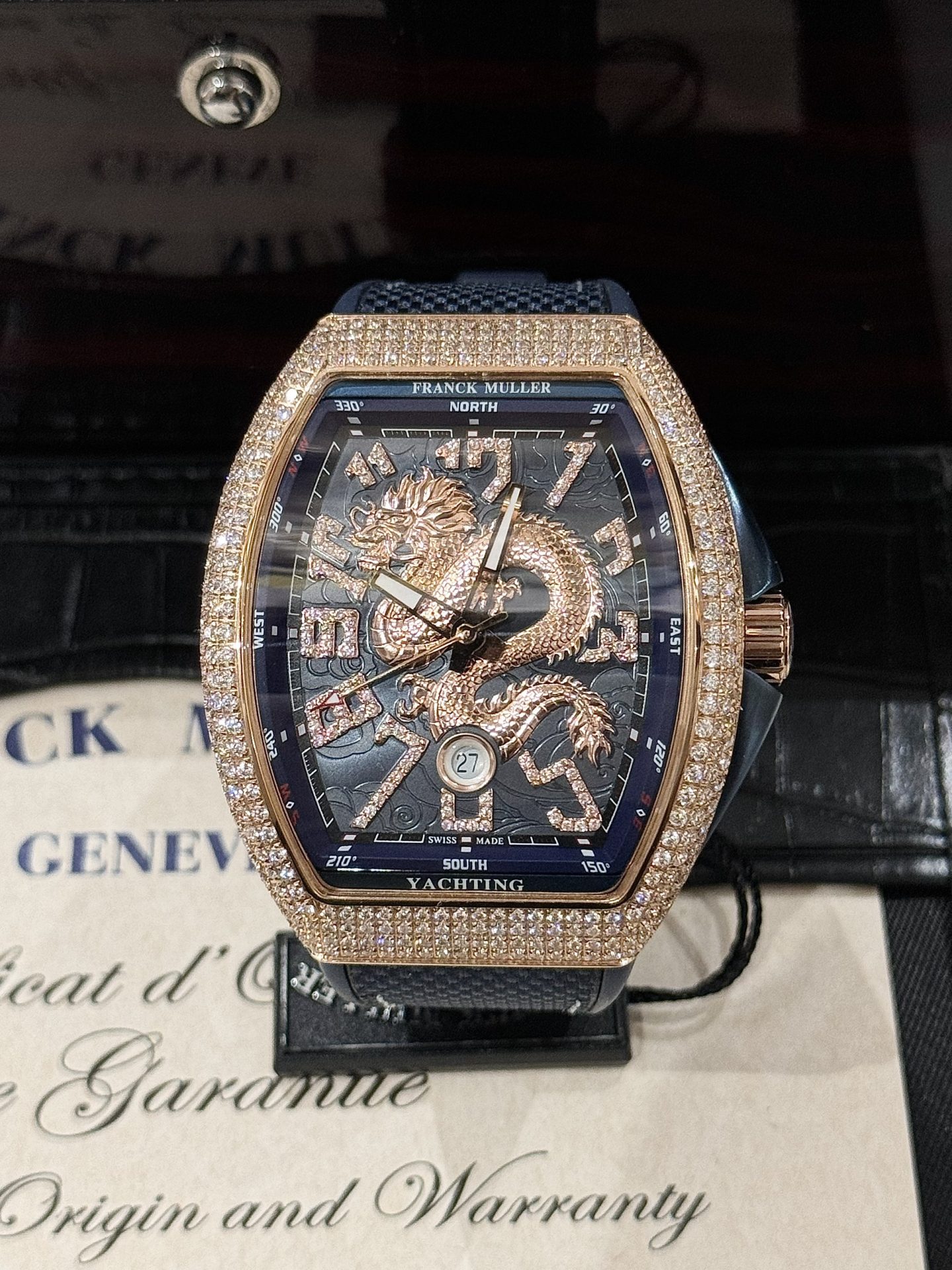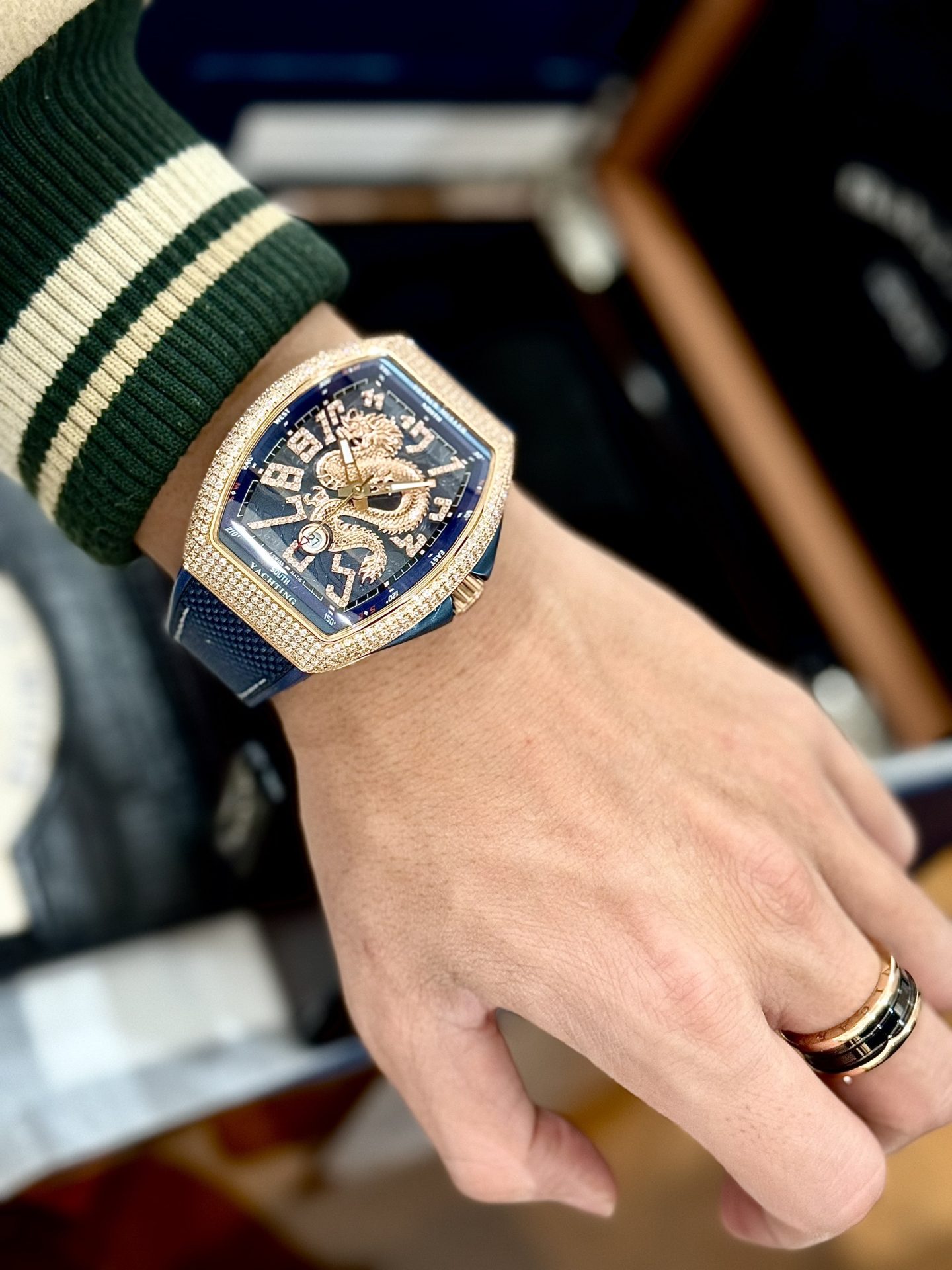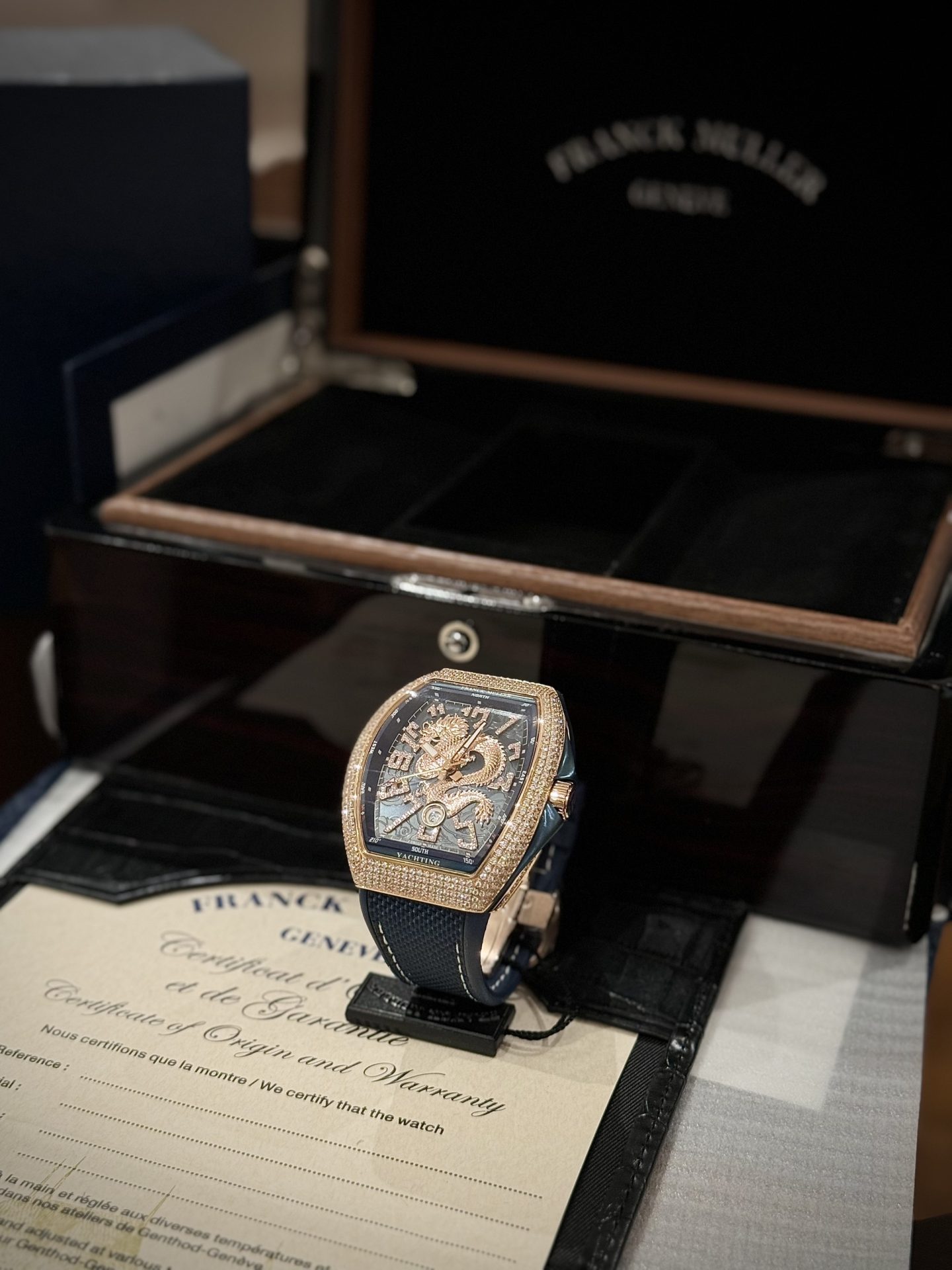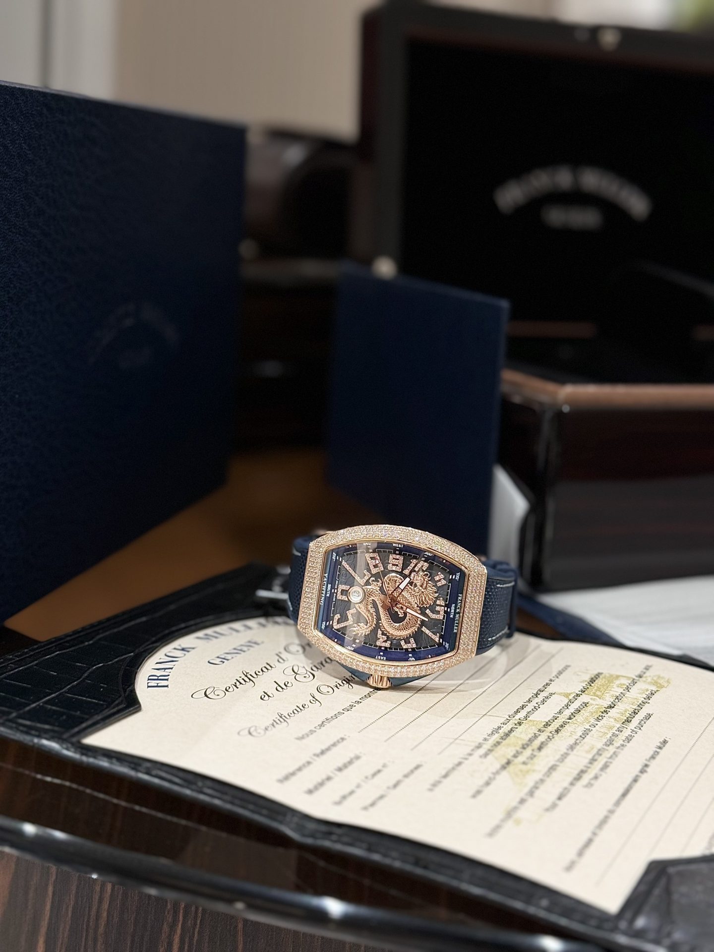 Cùng King Replica khám phá ngay Đồng Hồ Franck Muller Nam Đính Đá Họa Tiết Rồng Màu Xanh Dương V45 ABF – Chất lượng tốt nhất thị trường!