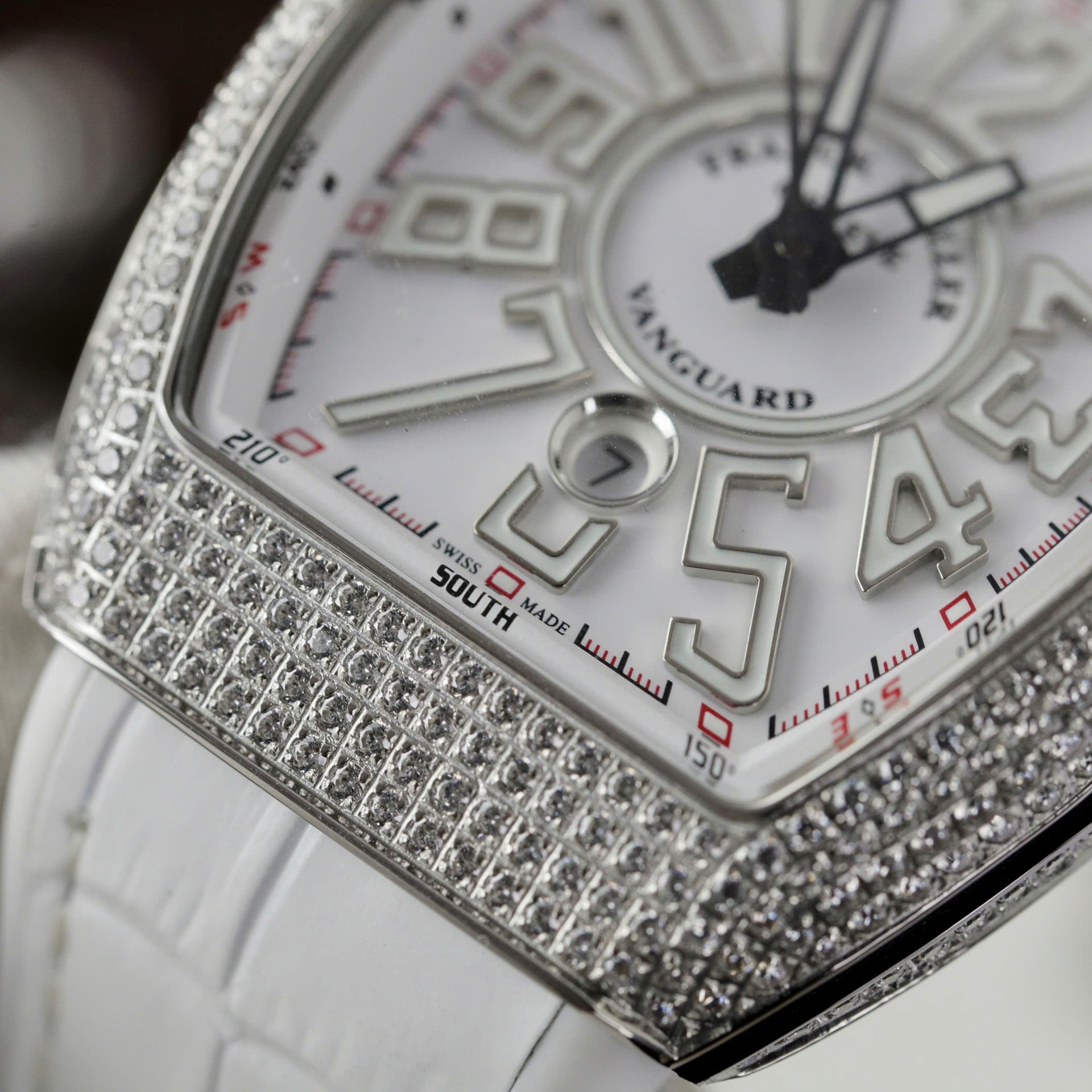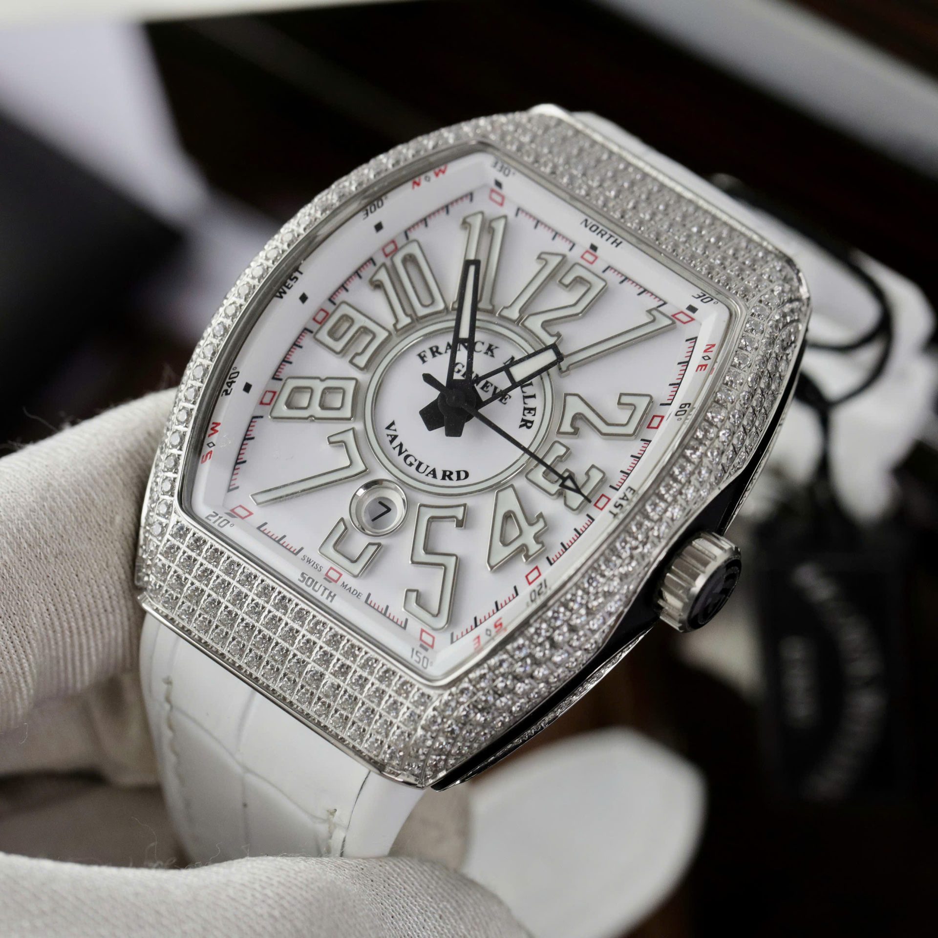 Đồng Hồ Franck Muller V45 Replica 11 Màu Trắng Đính Full Đá Xưởng ABF 45mm