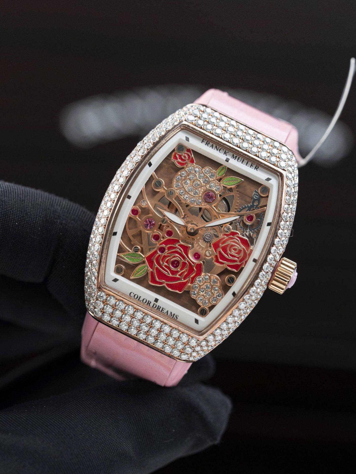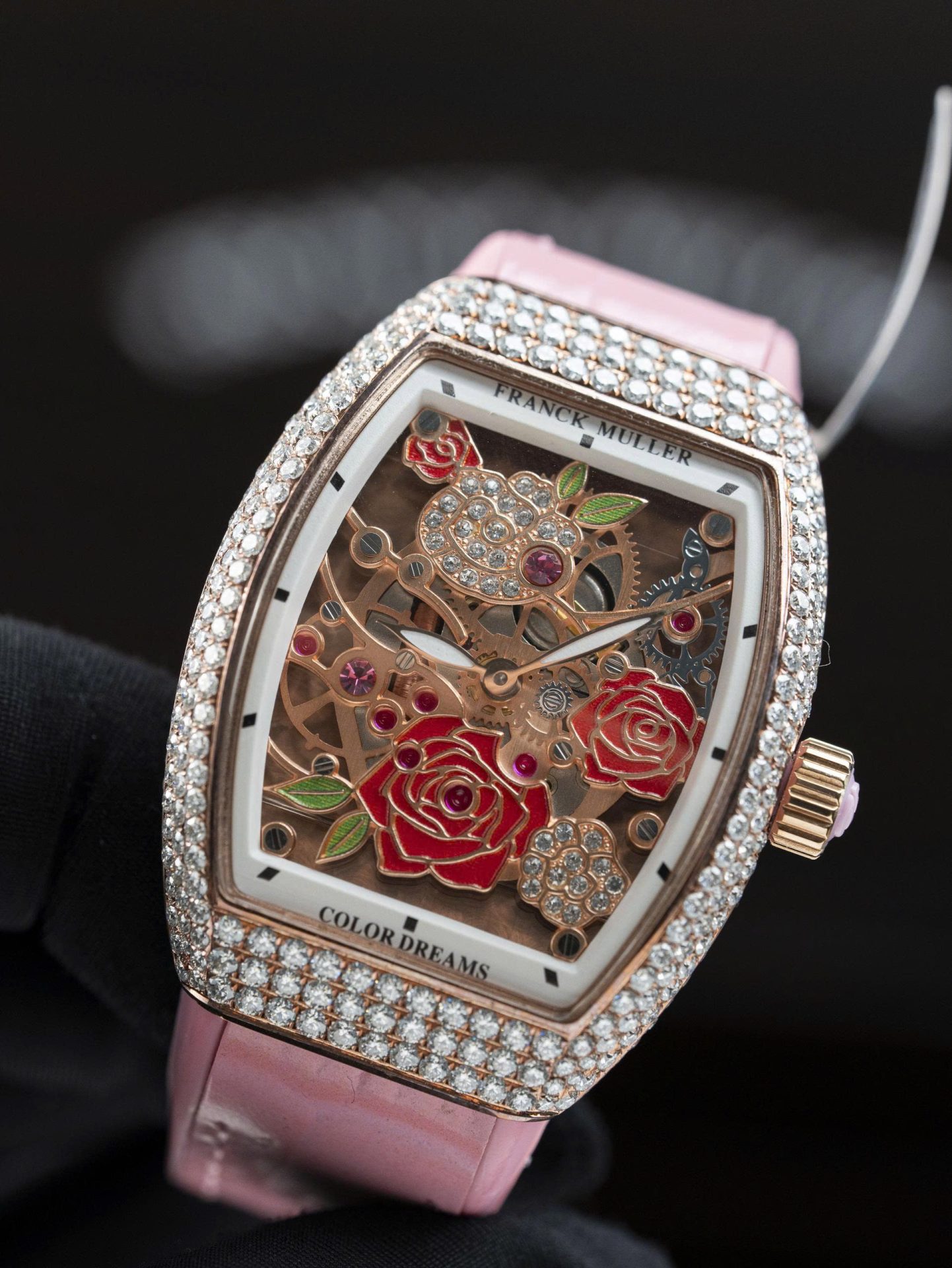 Đồng Hồ Franck Muller Vanguard V32 Mặt Skeleton Chế Tác Đính Full Kim Cương Moissanite 36mm
