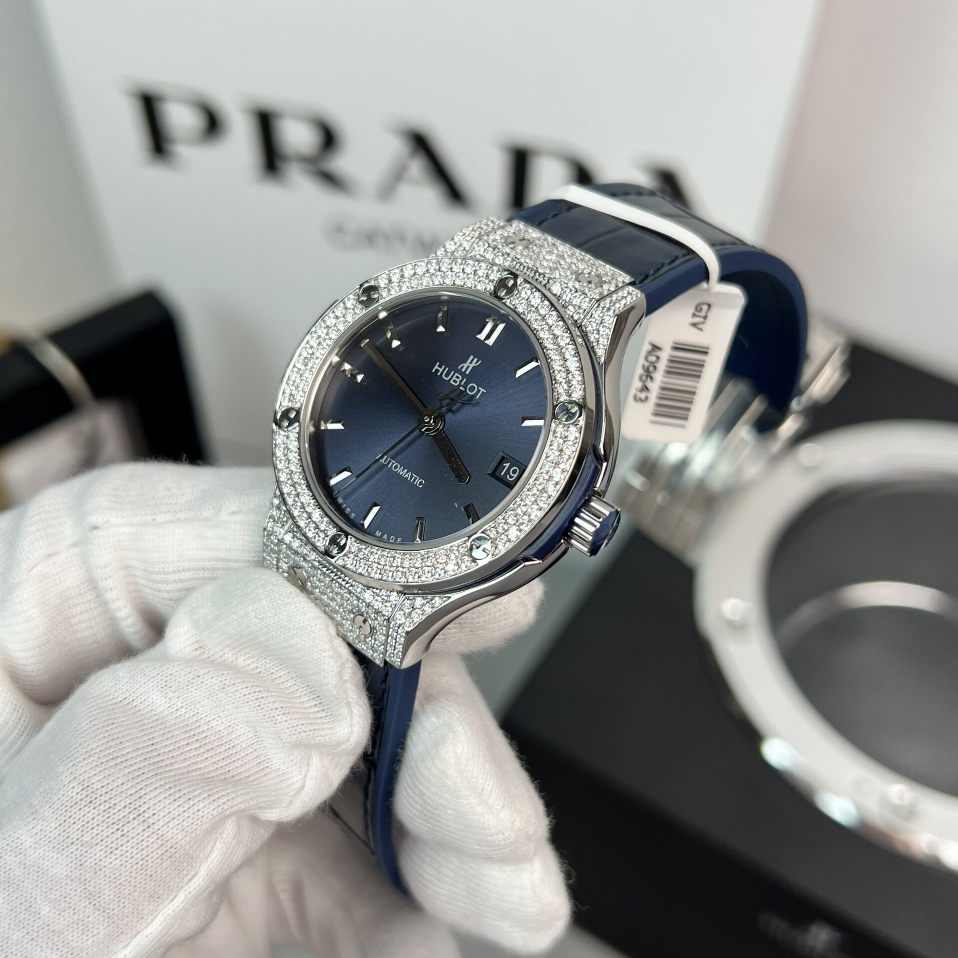 Đồng Hồ Hublot Classic Fusion Kim Cương Moissanite Màu Xanh Dương 38mm