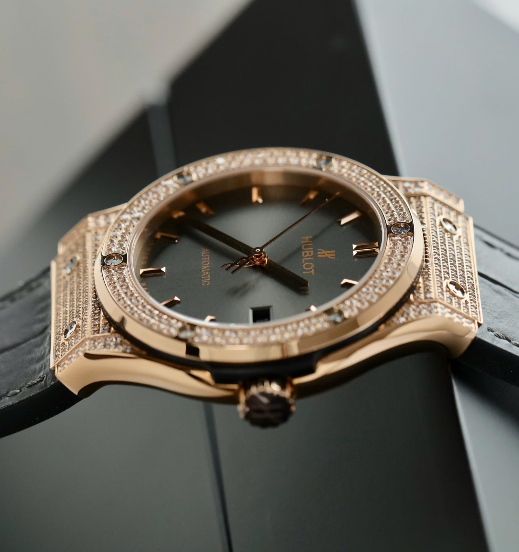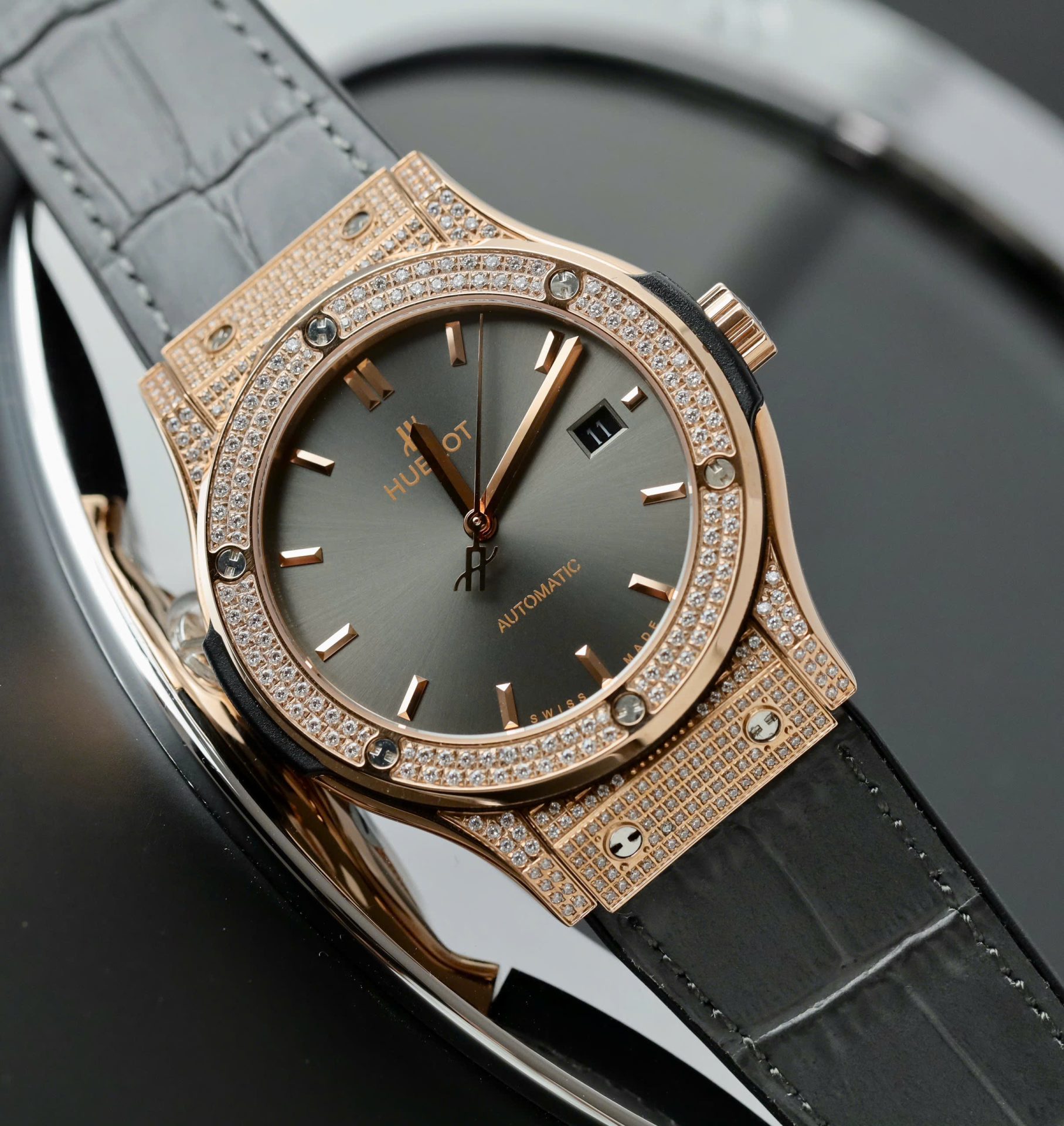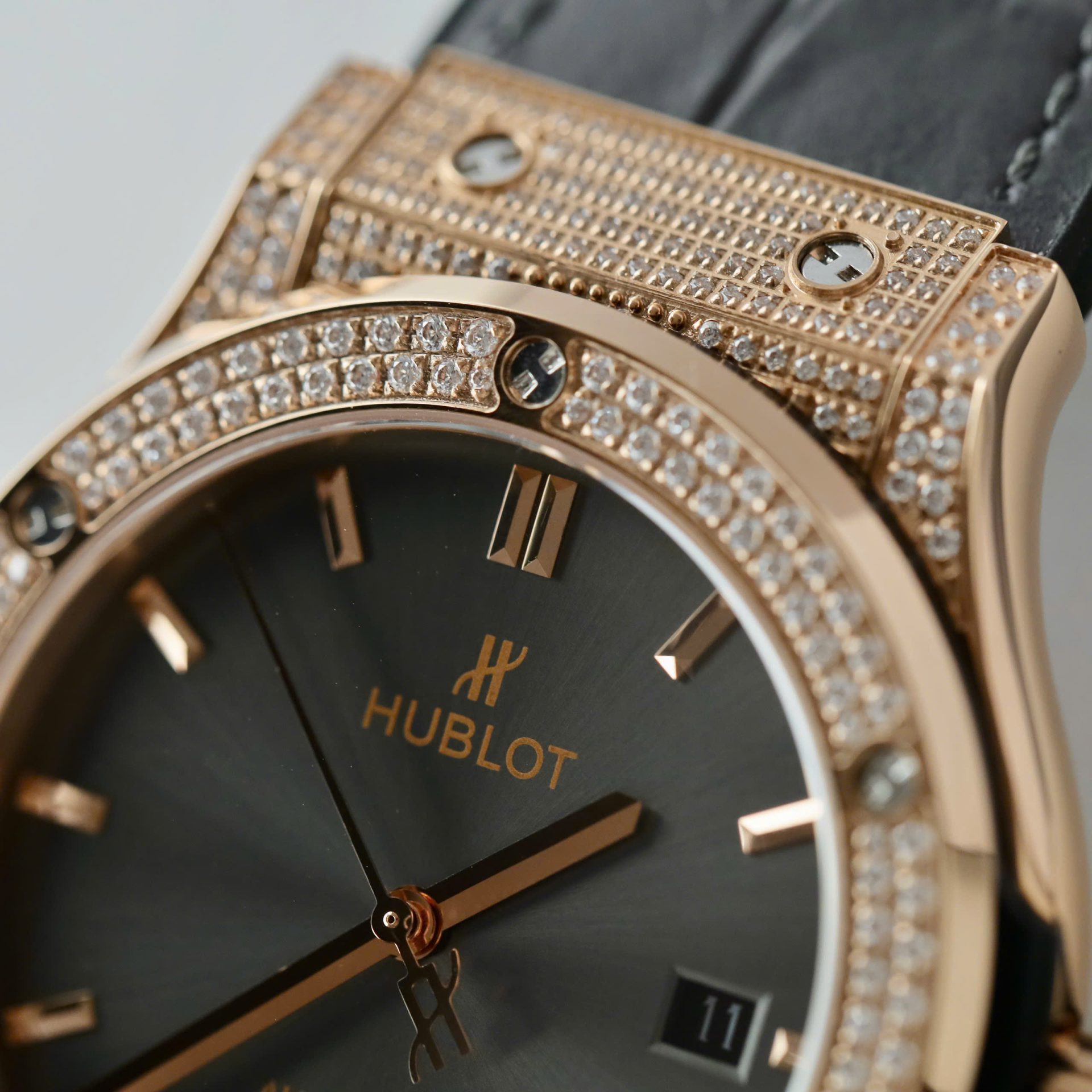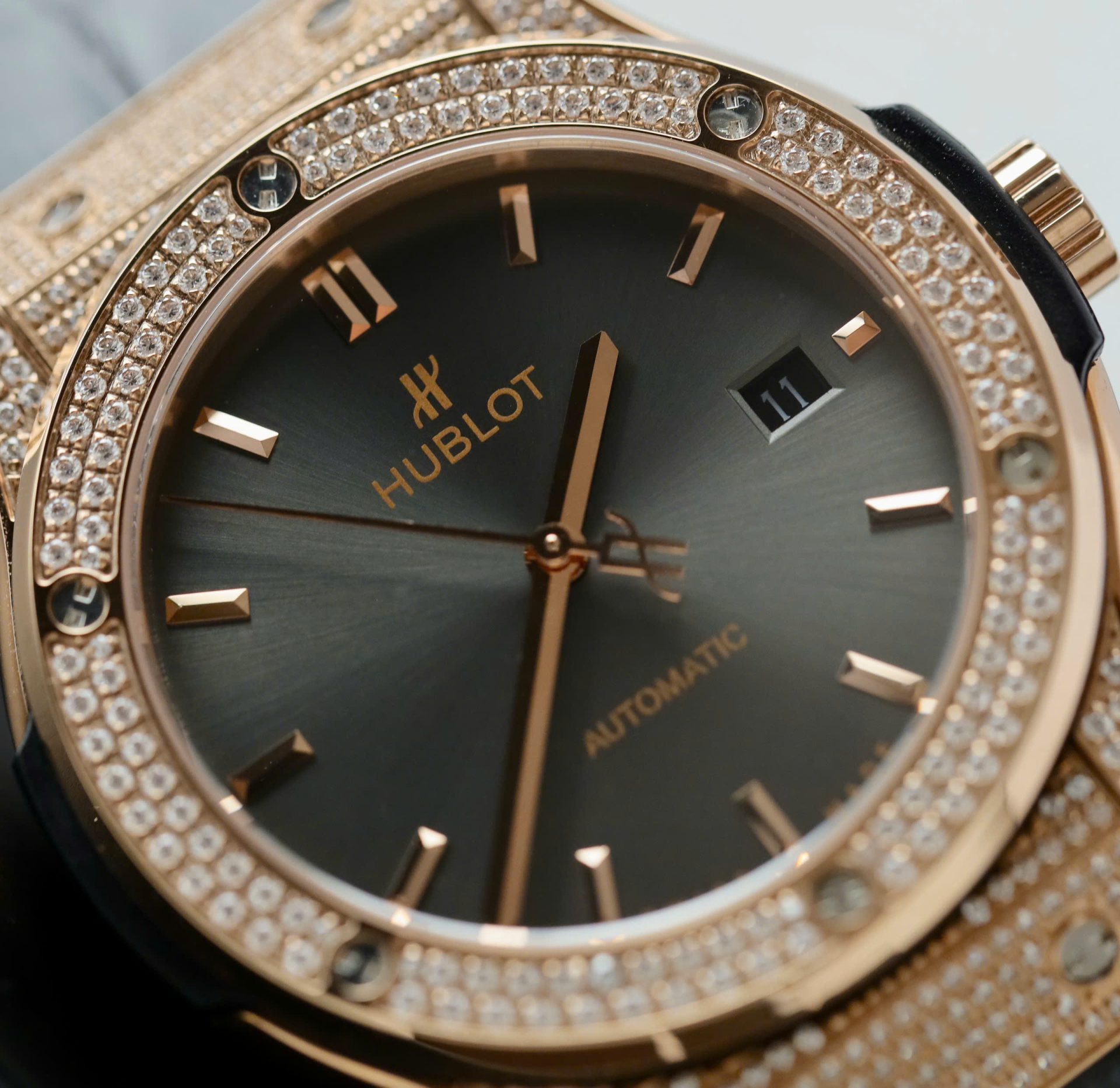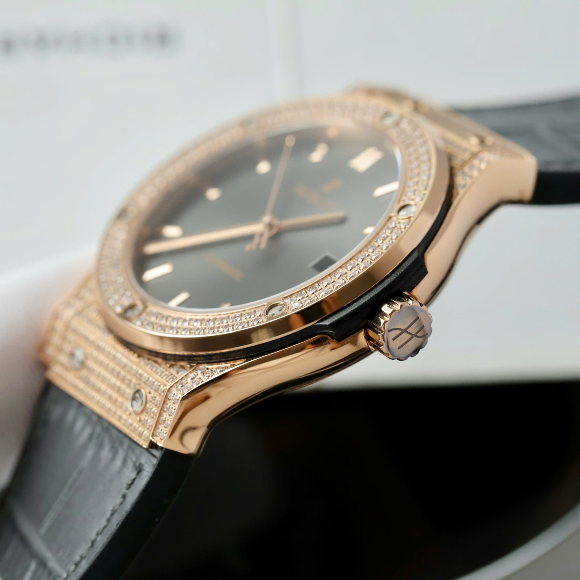Đồng Hồ Hublot Classic Fusion King Gold Replica 11 Mặt Xám Đính Đá Xưởng HB 42mm