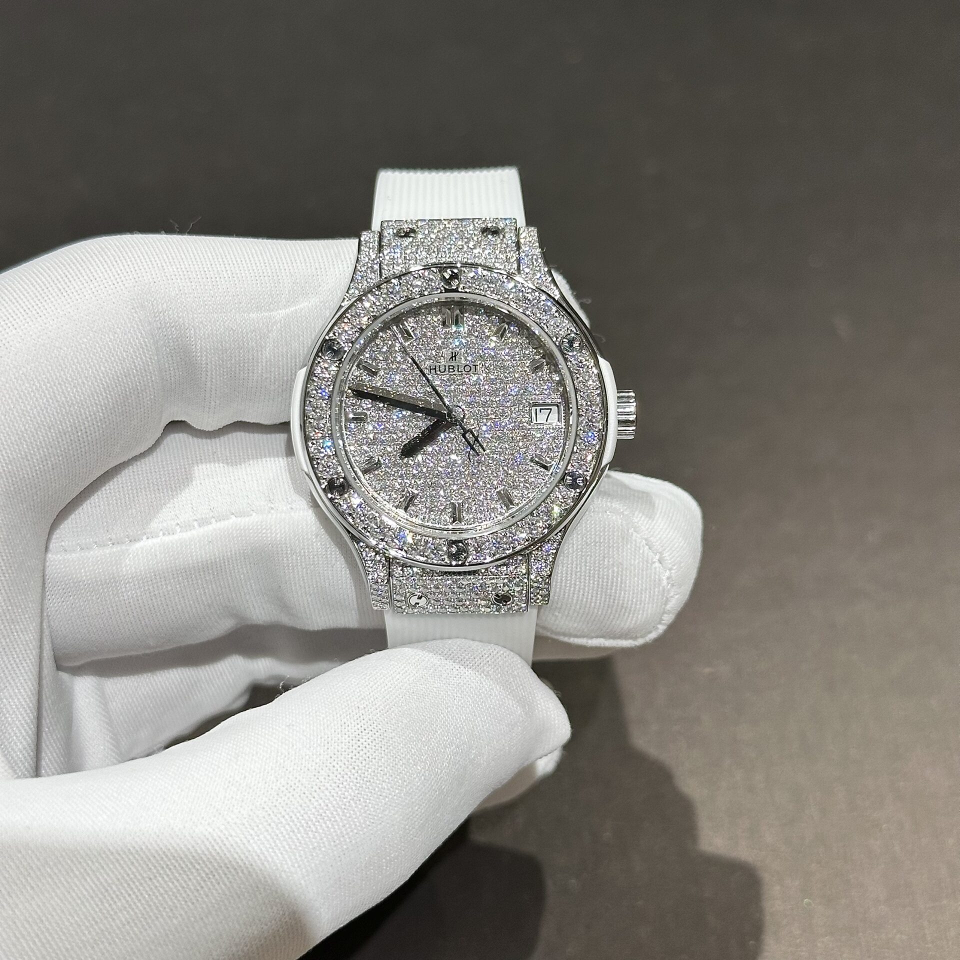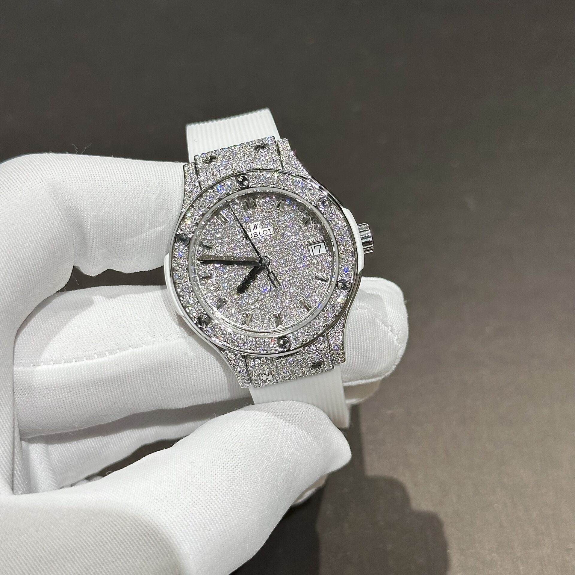 Đồng Hồ Hublot Nữ Màu Trắng Độ Full Kim Cương